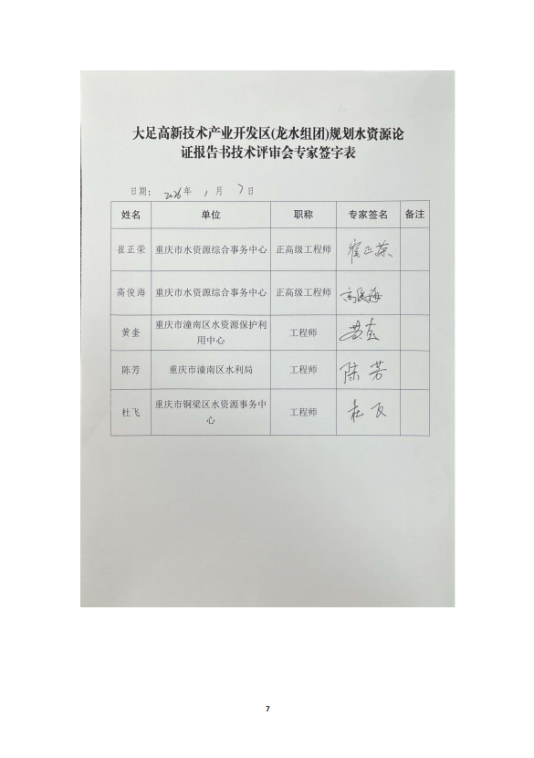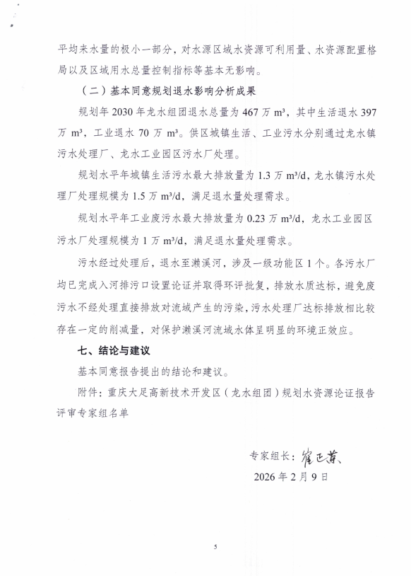 附件:《重庆大足高新技术产业开发区(龙水组团)规划水资源论证报告》专家评审意见