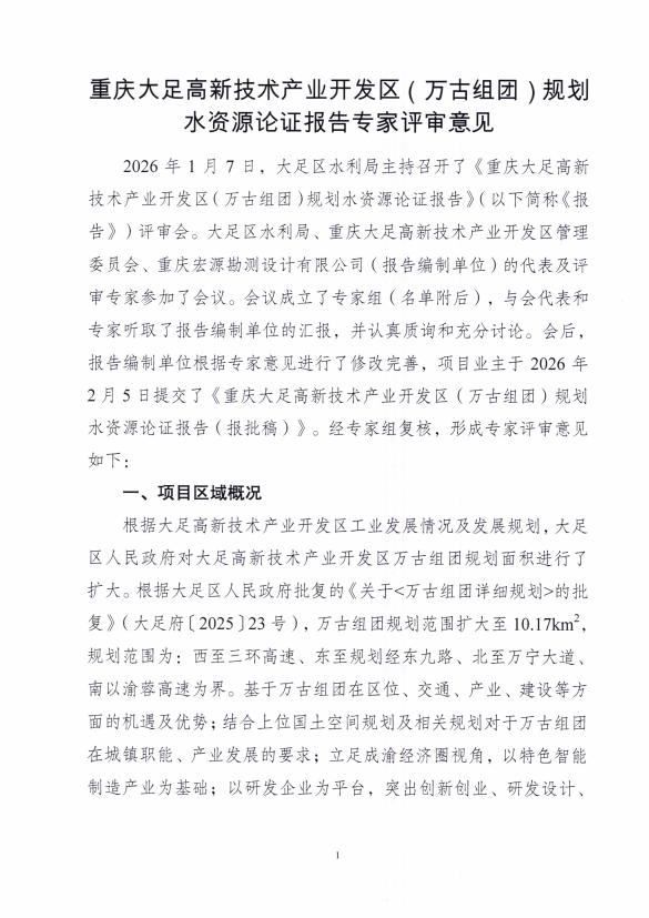 附件:《重庆大足高新技术产业开发区(万古组团)规划水资源论证报告》
