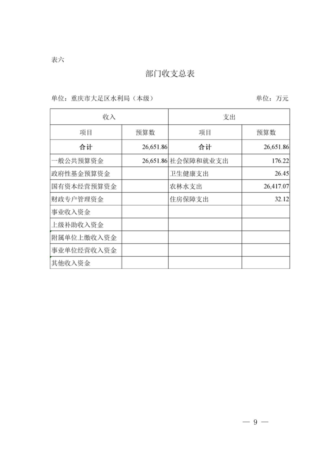 | [ 主题分类 ] | 水利、水务 | [ 体裁分类 ] | 财政预算、决算 |