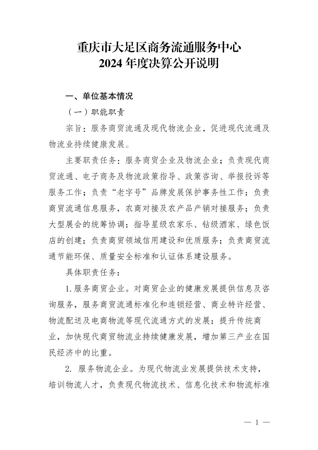 重庆市大足区商务流通服务中心2024年度决算公开说明
