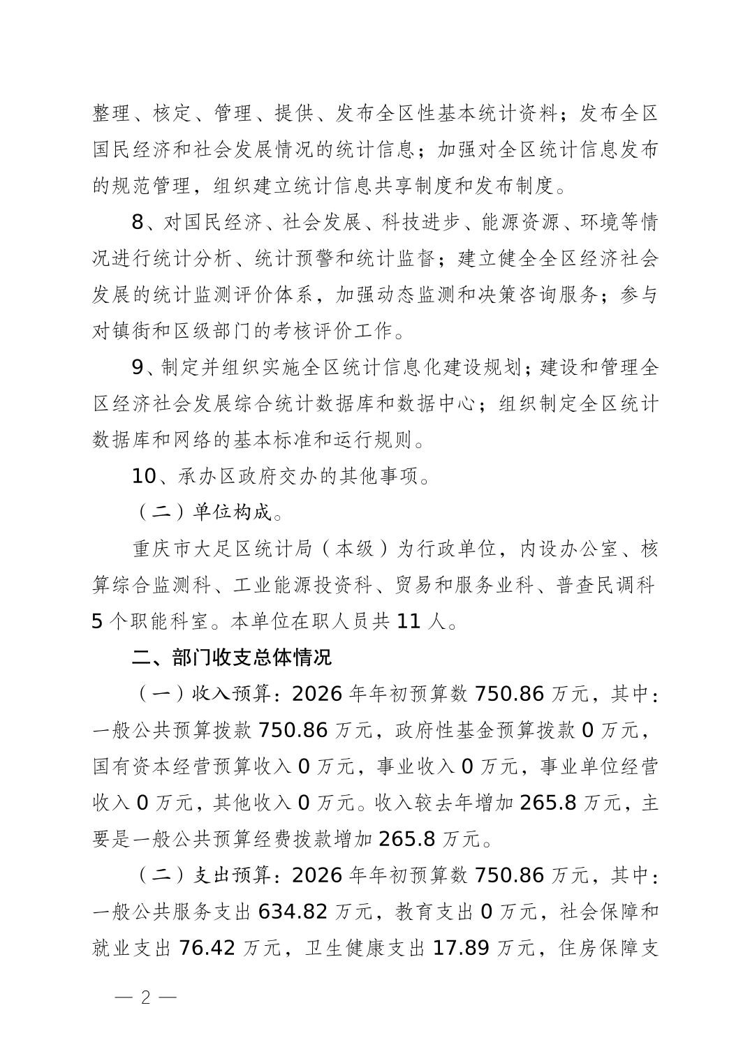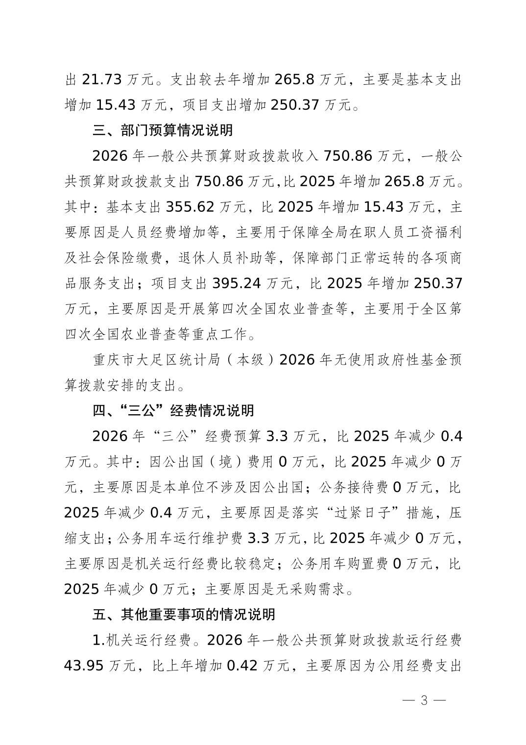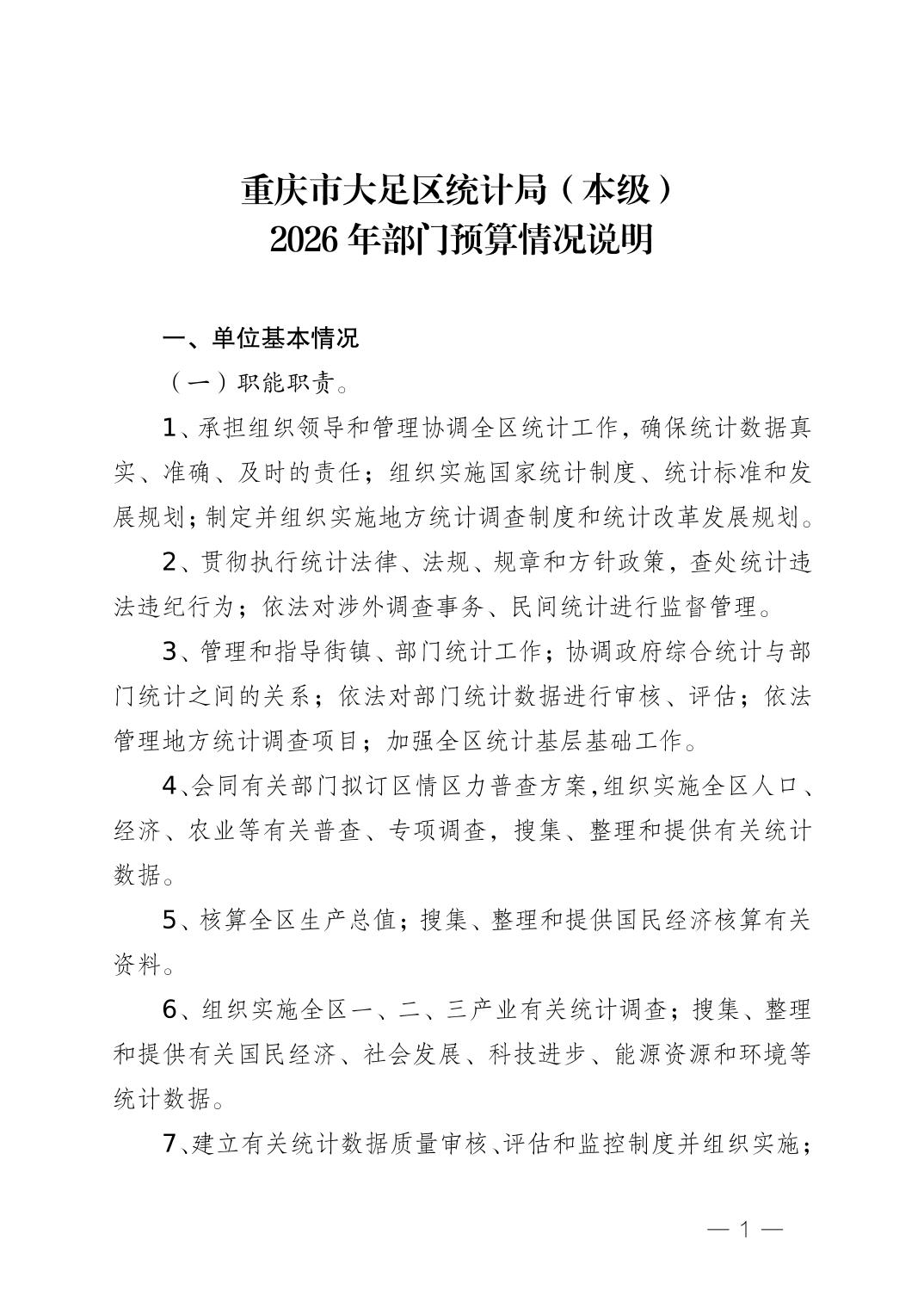 重庆市大足区统计局(本级)2026年部门预算情况说明