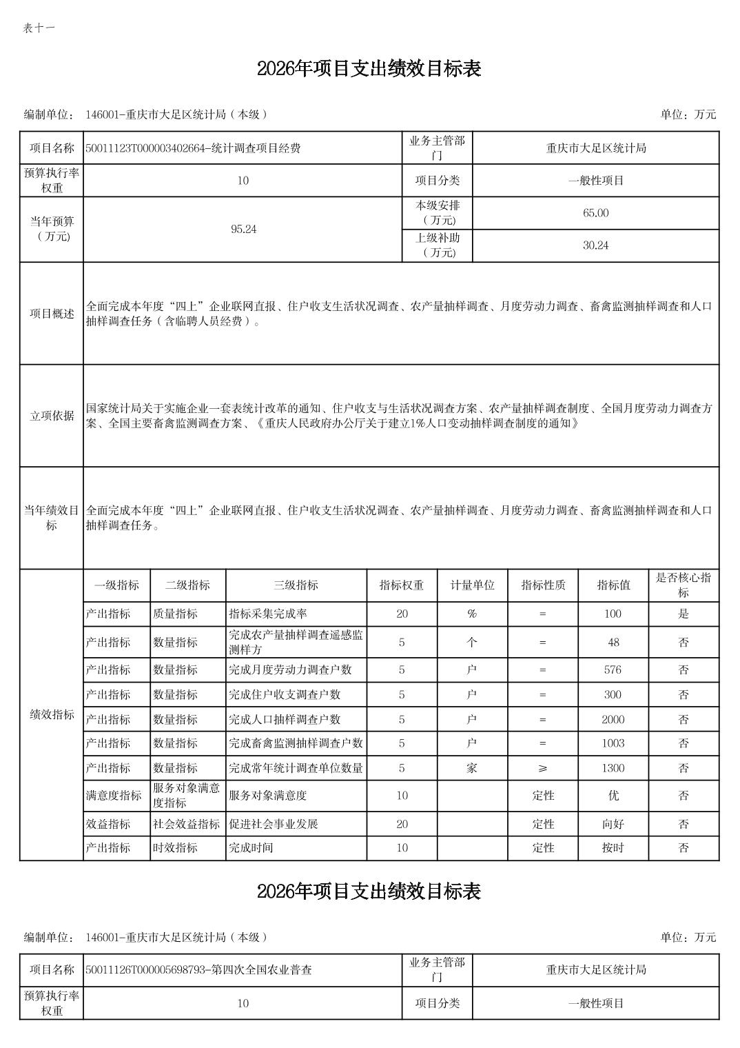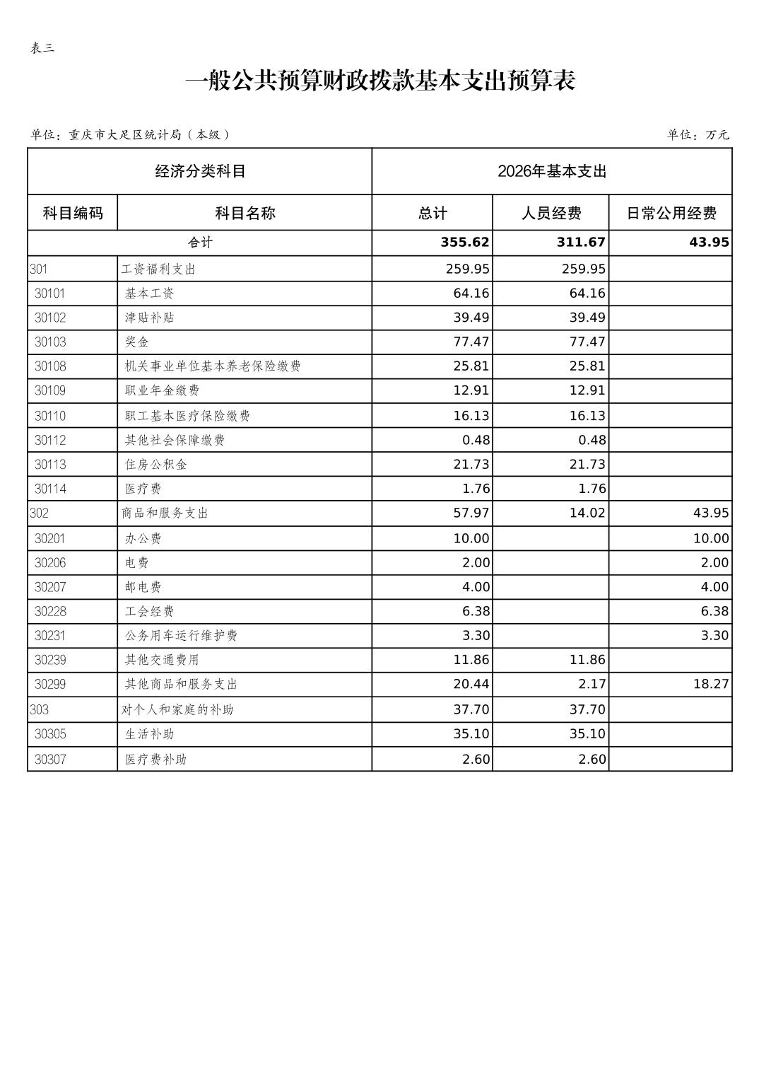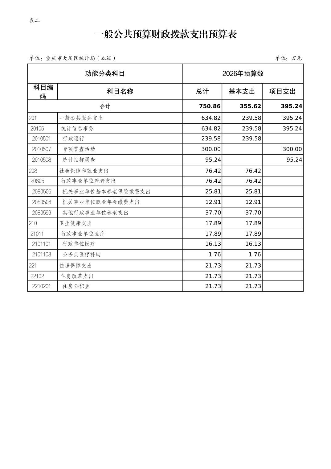 重庆市大足区统计局(本级)2026年部门预算情况说明