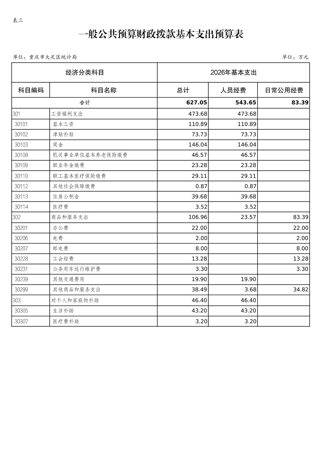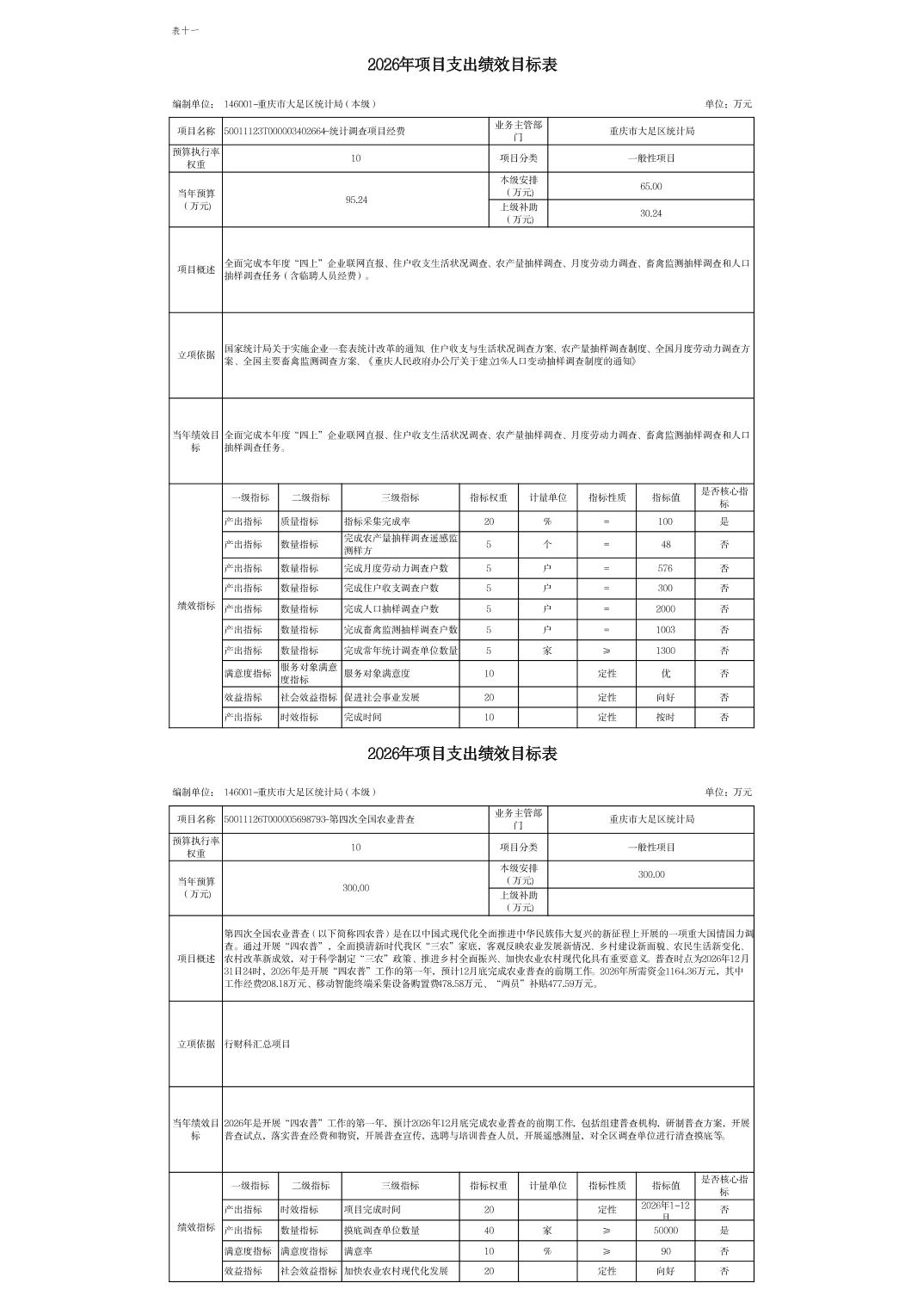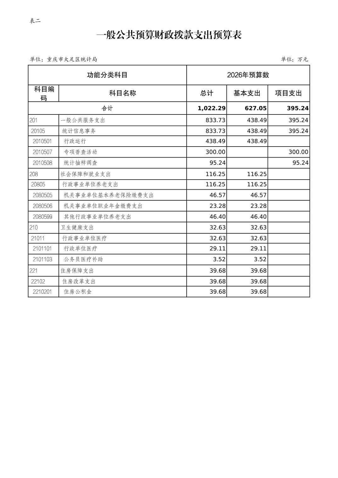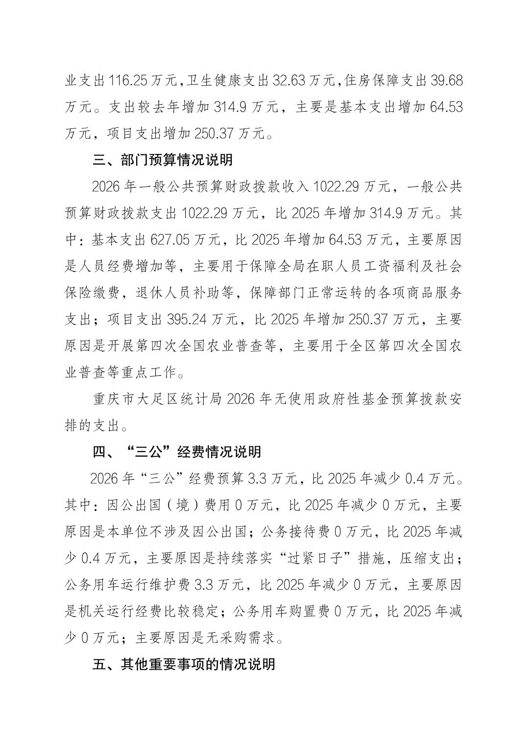 重庆市大足区统计局2026年部门预算情况说明