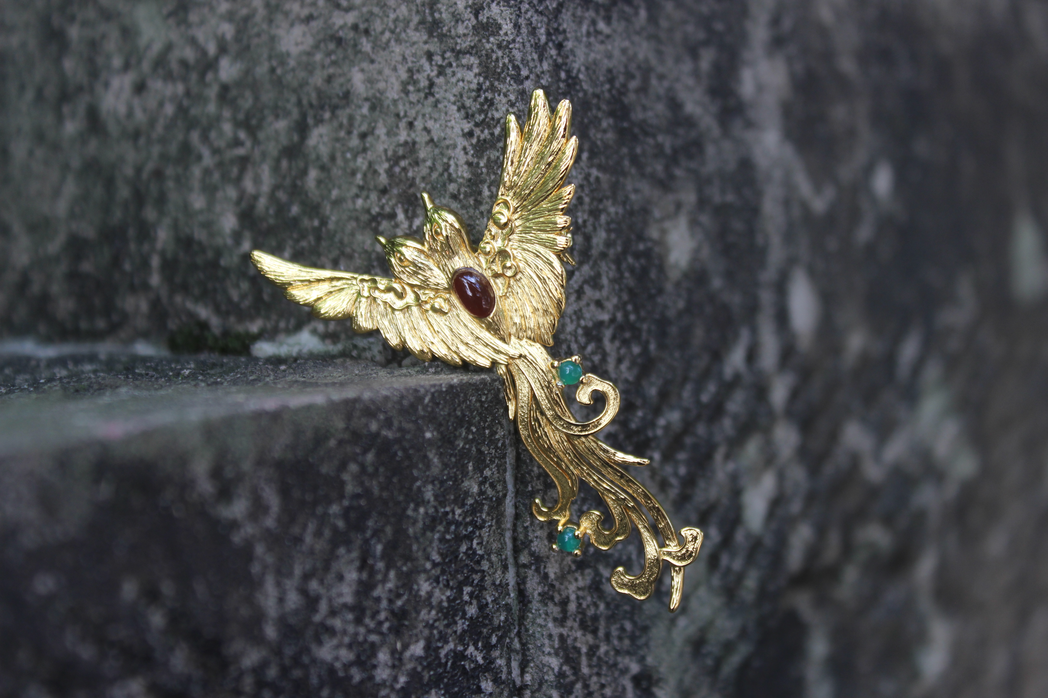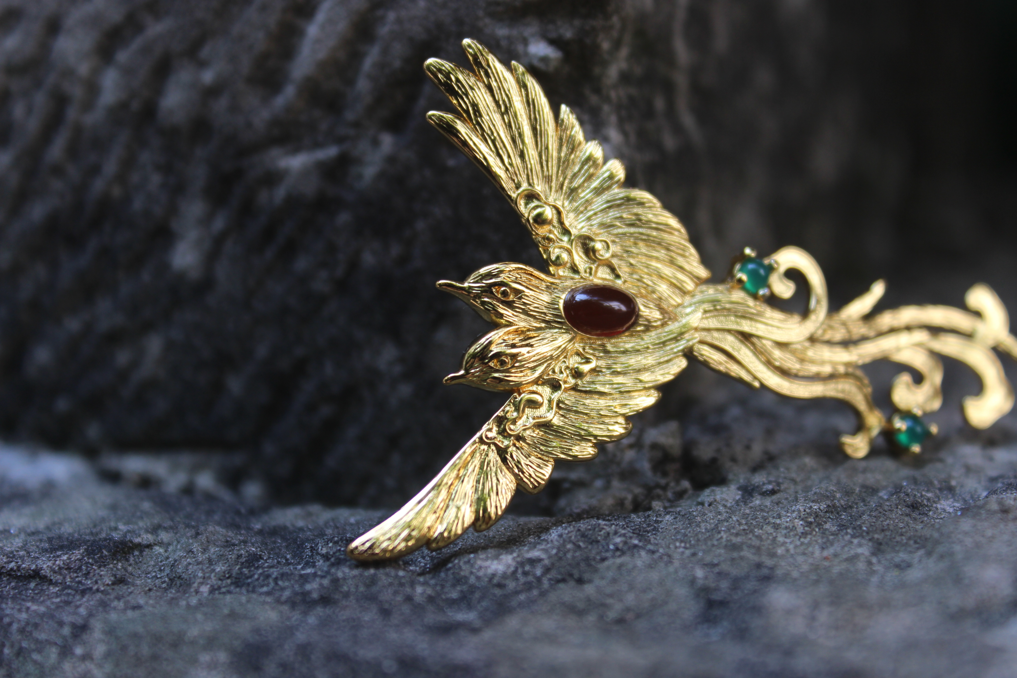 设计源于大足北山石刻245号龛,观无量寿佛经变相龛龛顶的共命鸟。共命之鸟概念出自佛经,两头一体,一荣俱荣,一死皆死,生命共同。