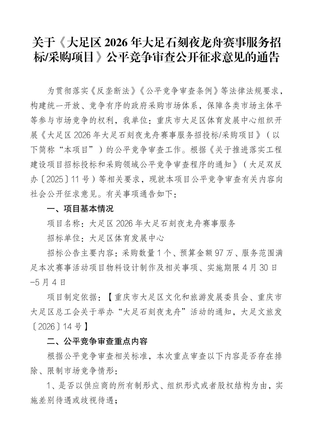 | [ 发布机构 ] | 大足区文化旅游委 | [ 发布日期 ] | 2026-04-02 |