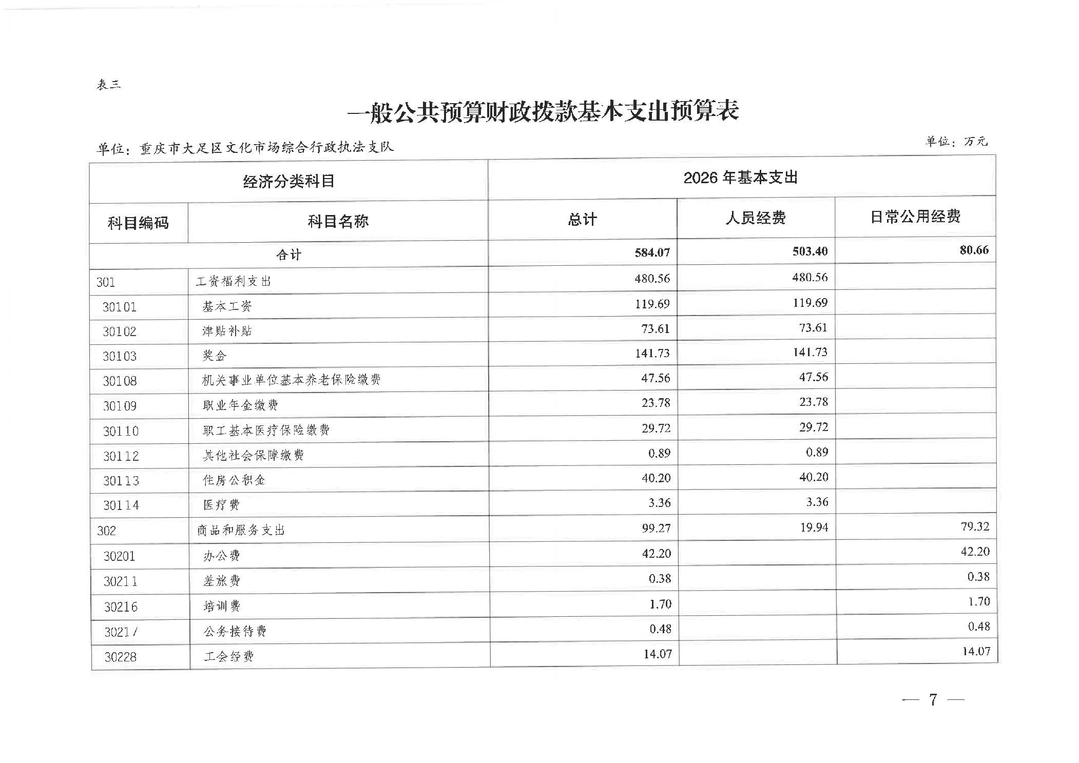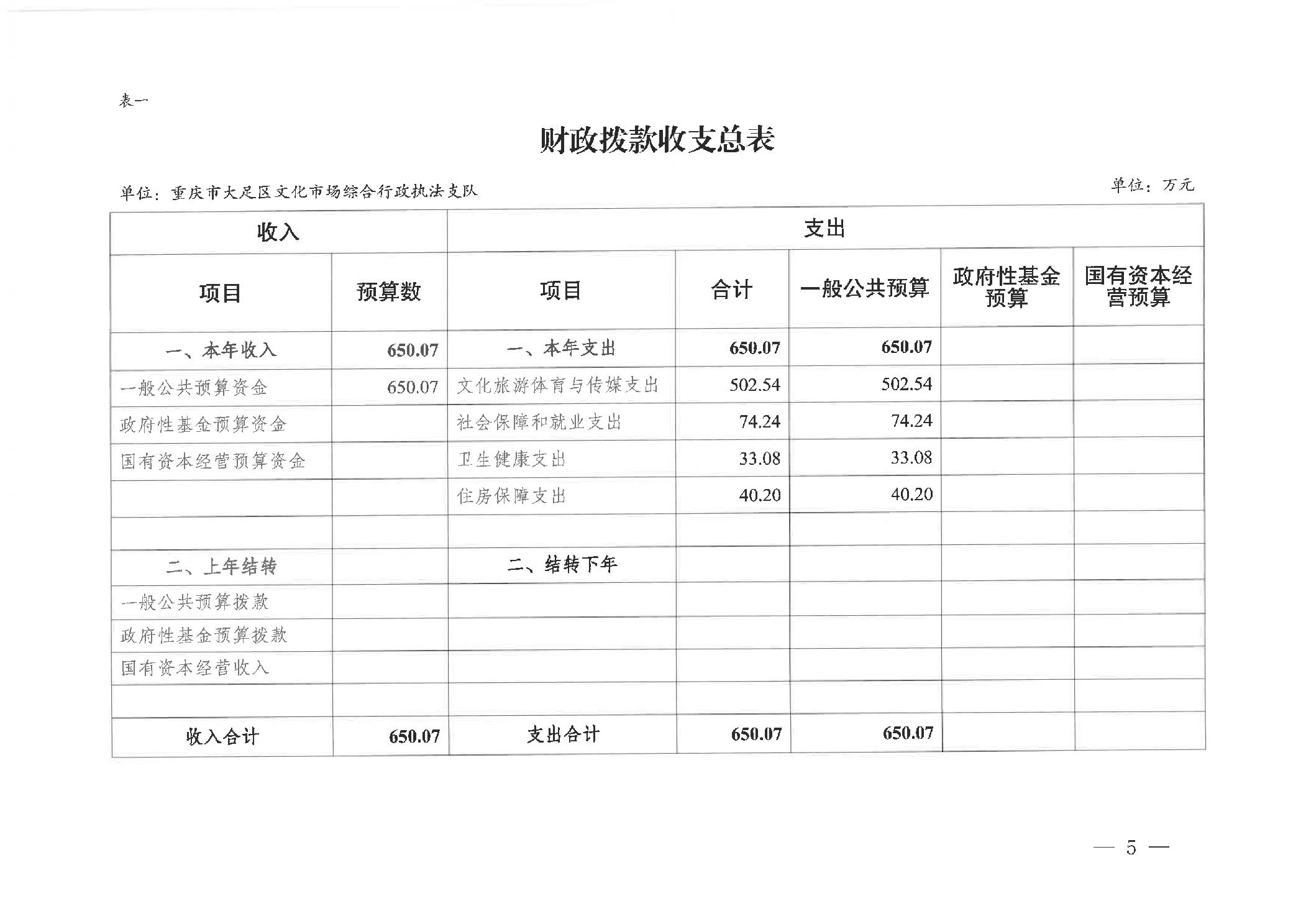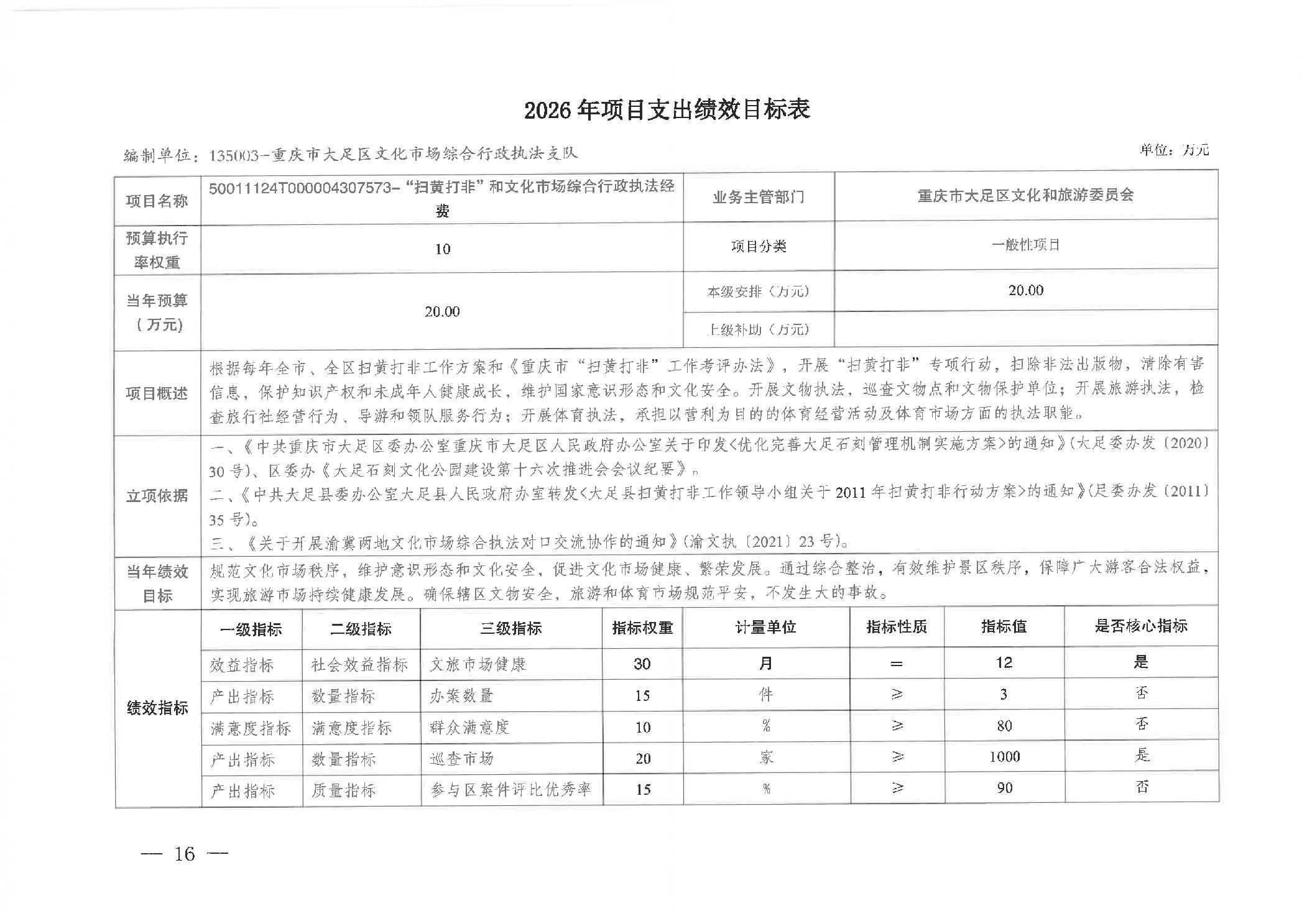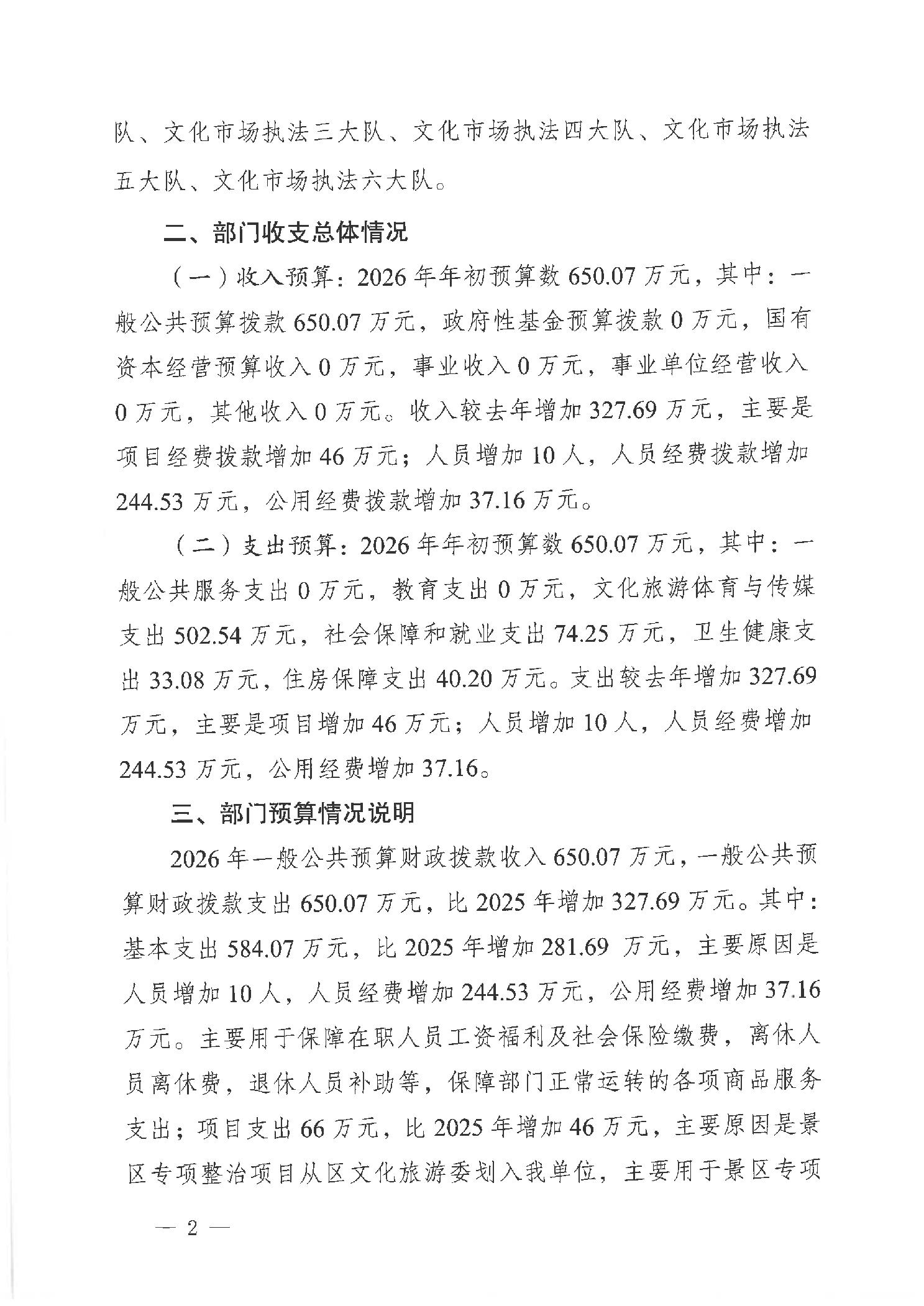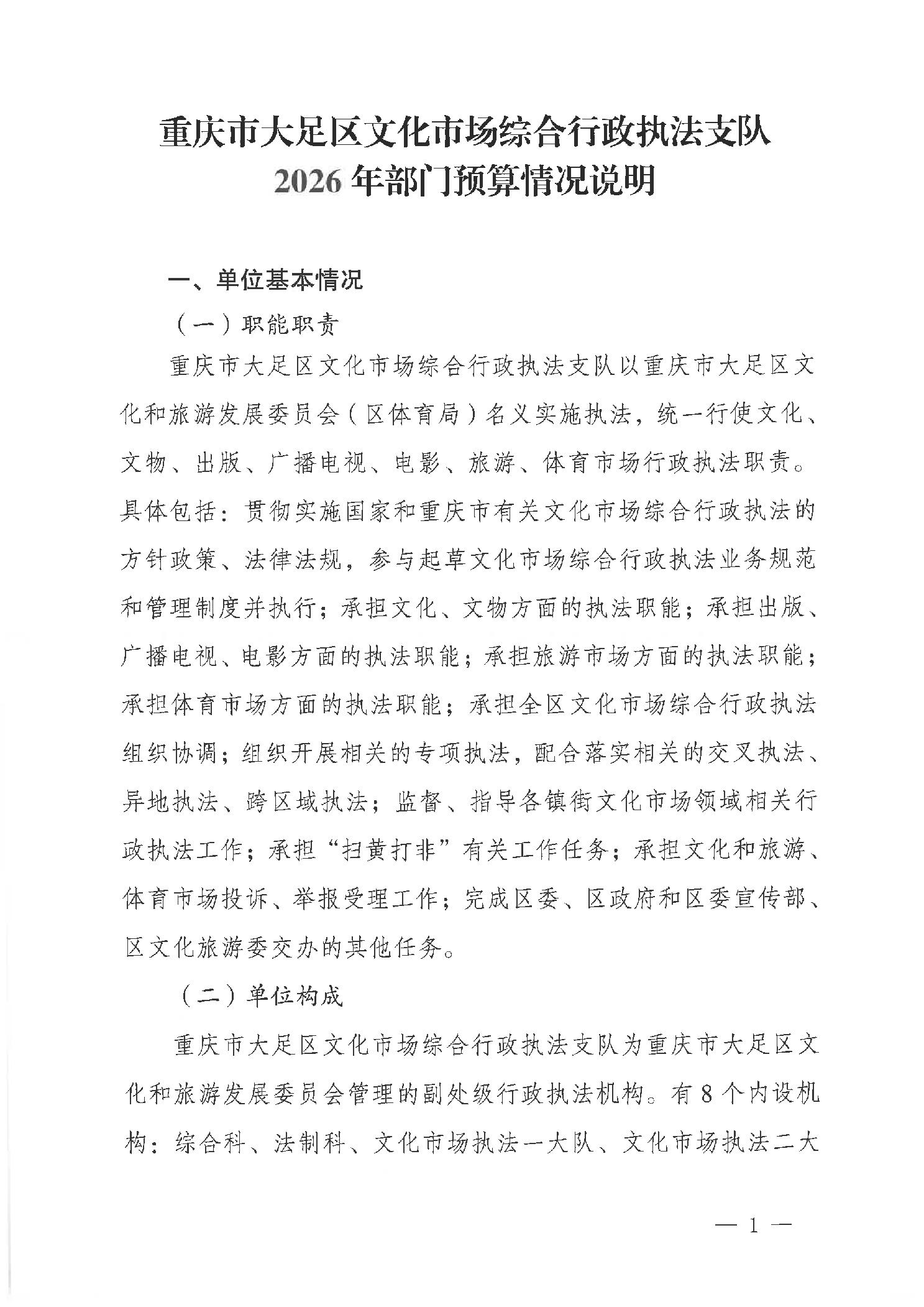 重庆市大足区文化市场综合行政执法支队 2026年部门预算情况说明