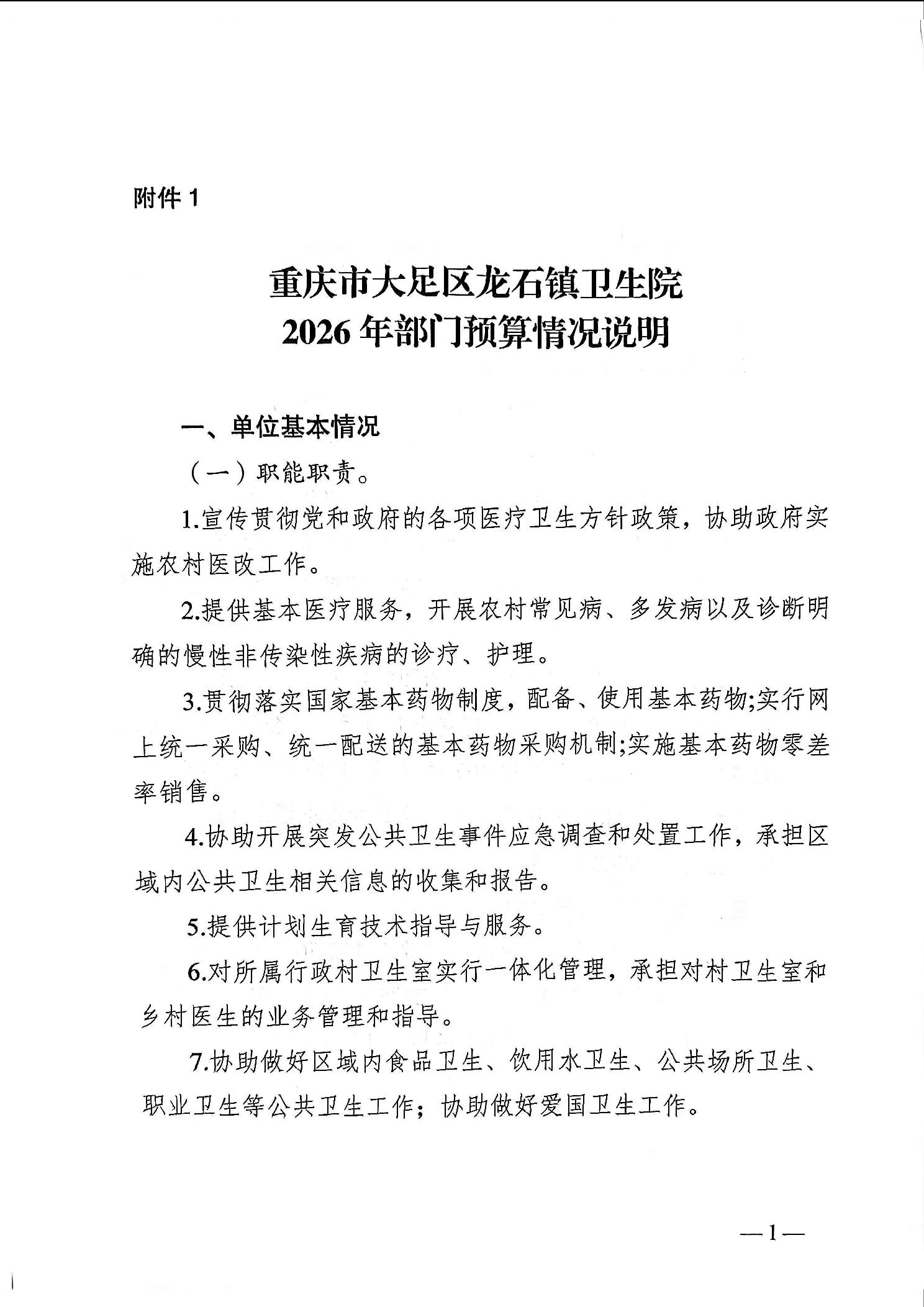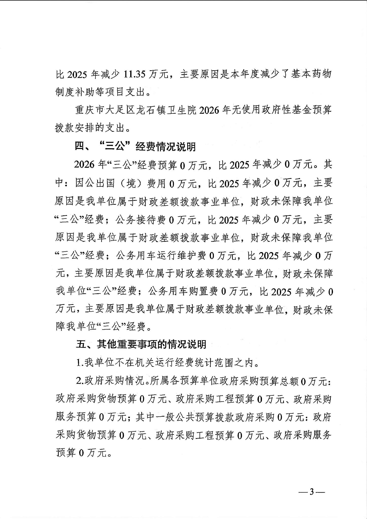 142031重庆市大足区龙石镇卫生院2026年部门预算情况说明