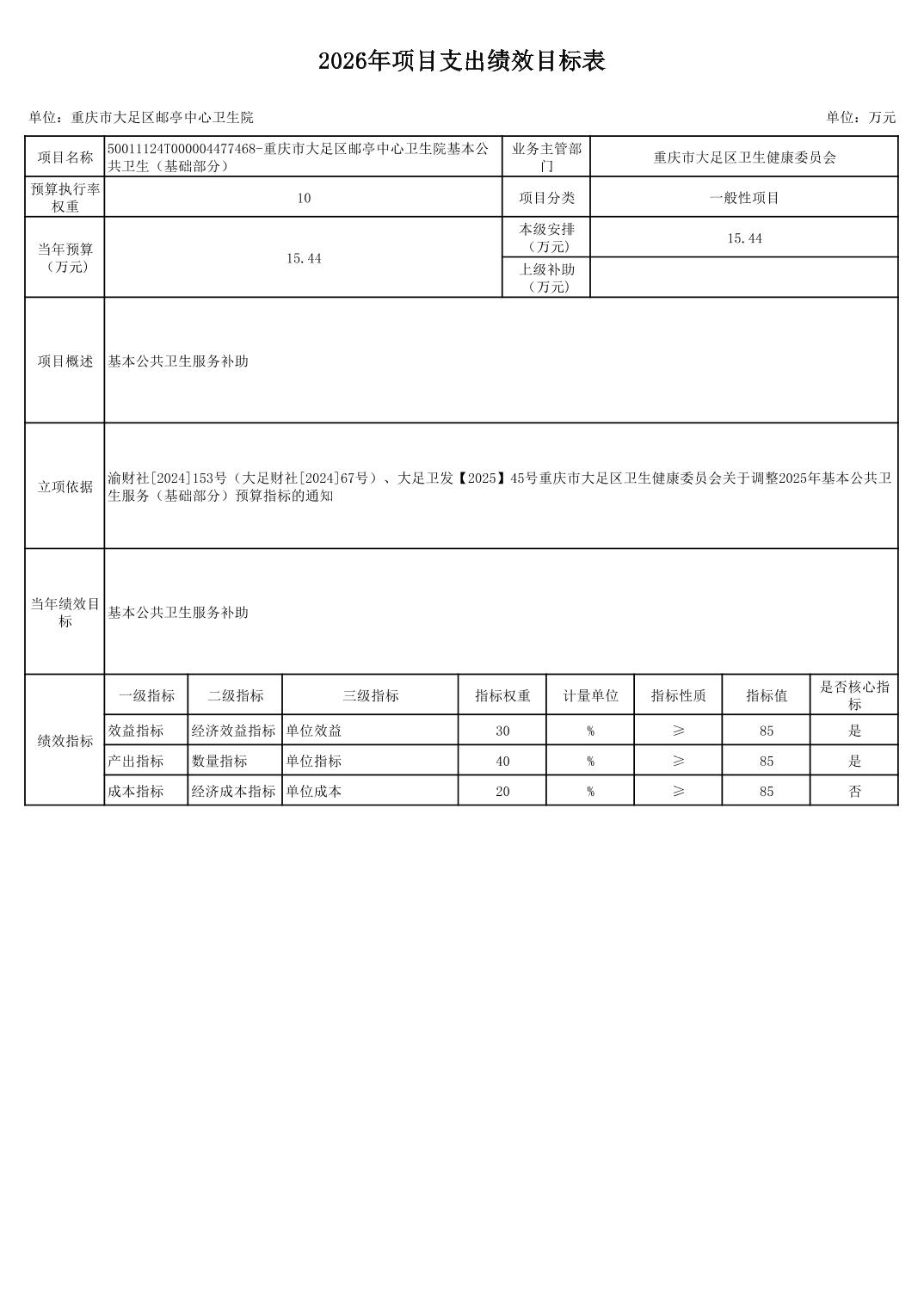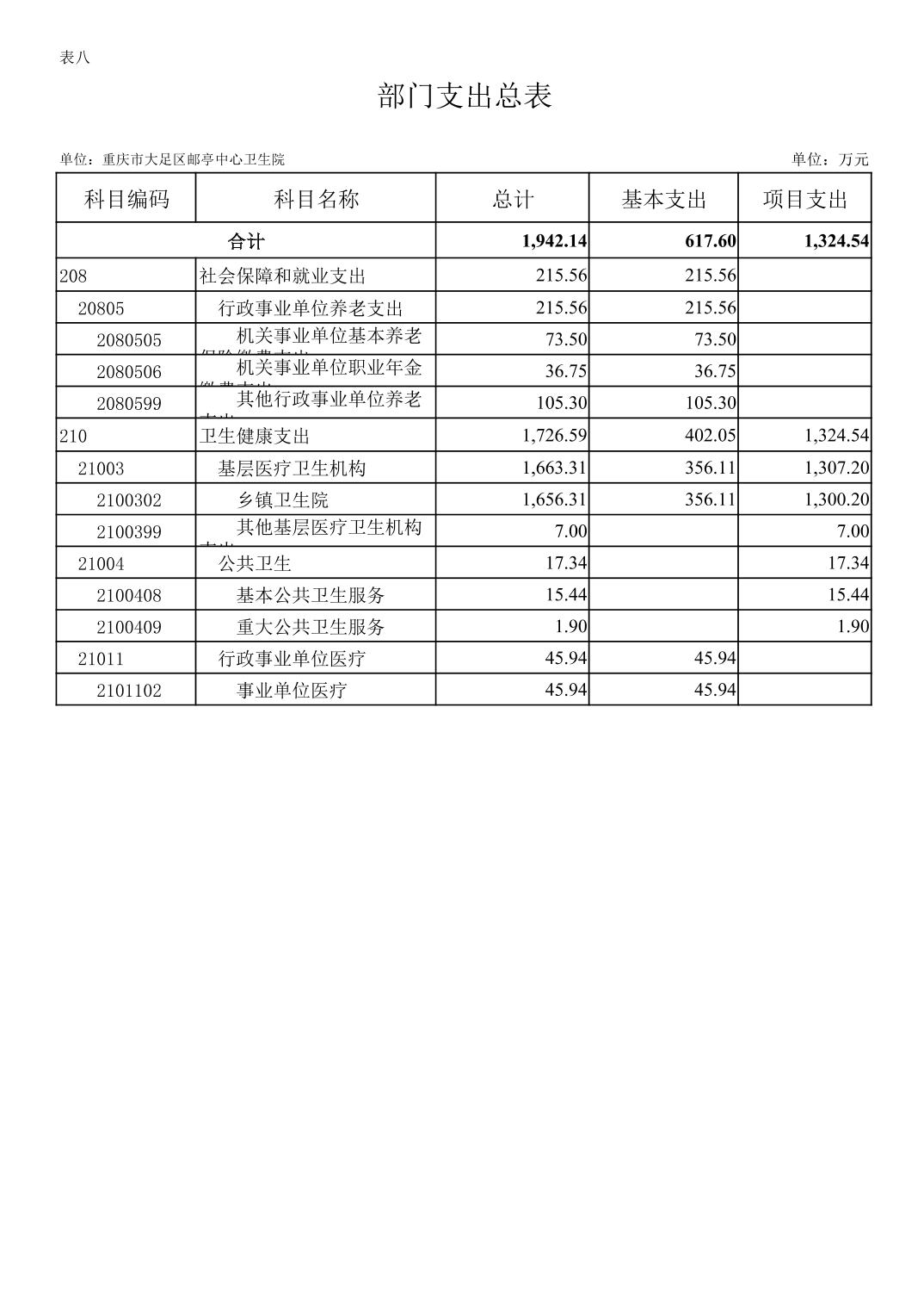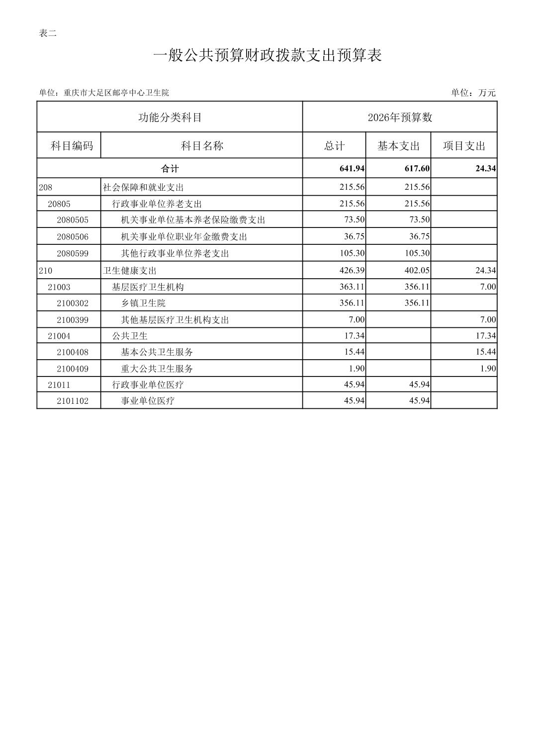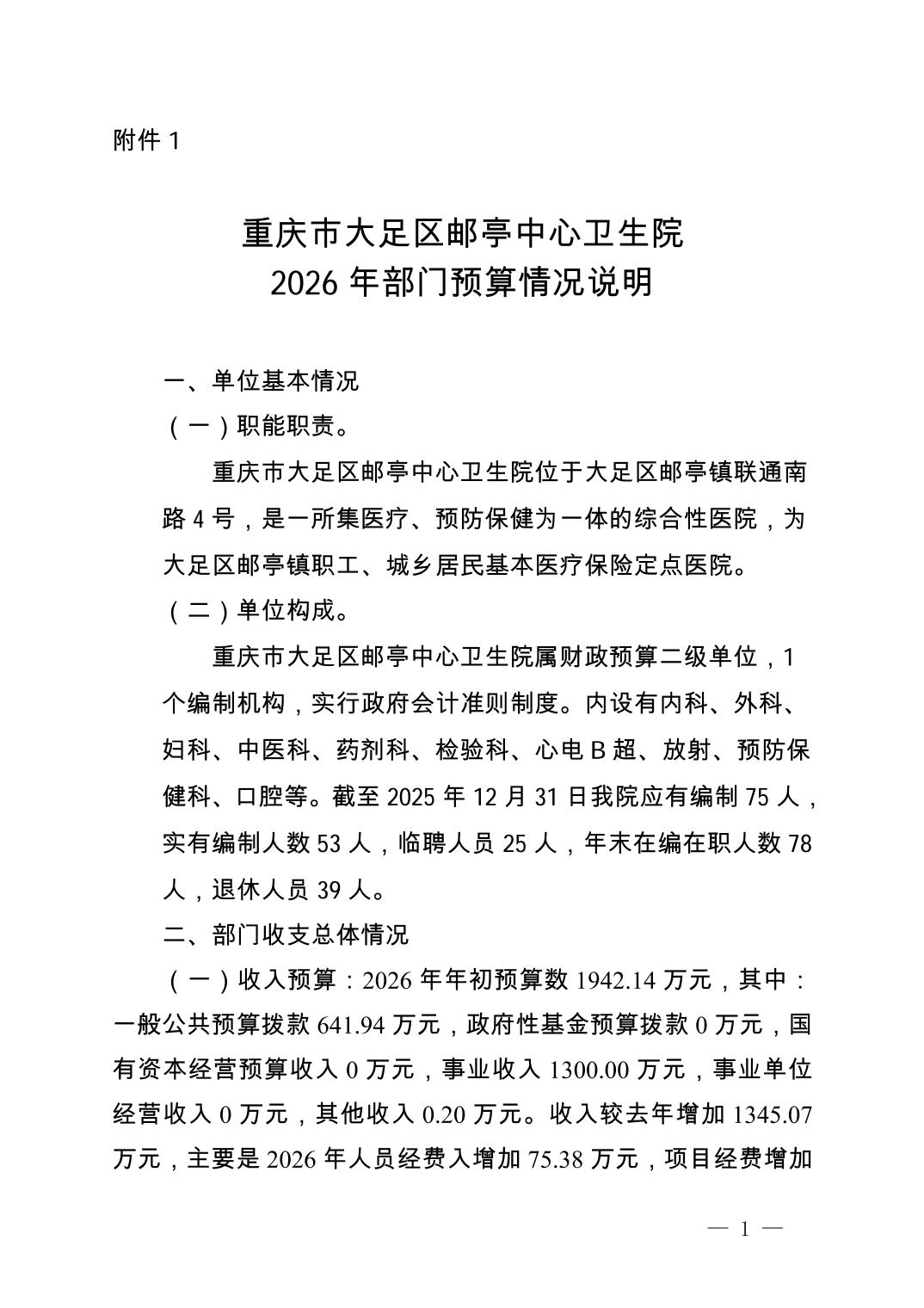 142017重庆市大足区邮亭中心卫生院2026年部门预算情况说明