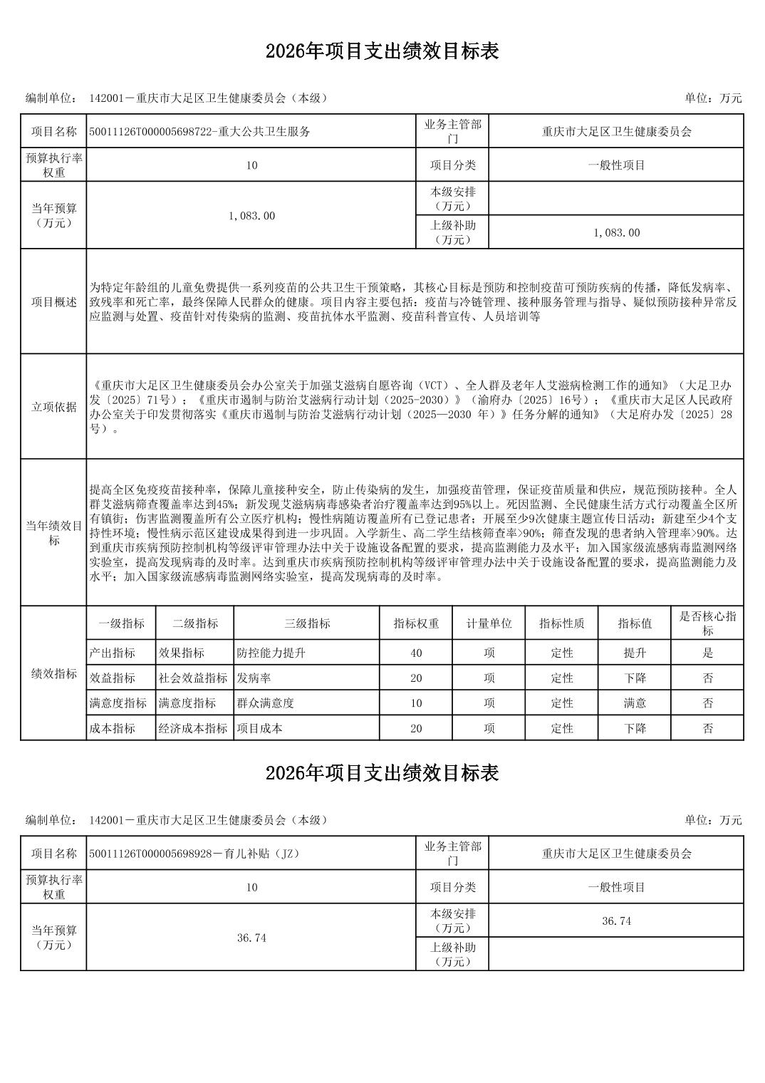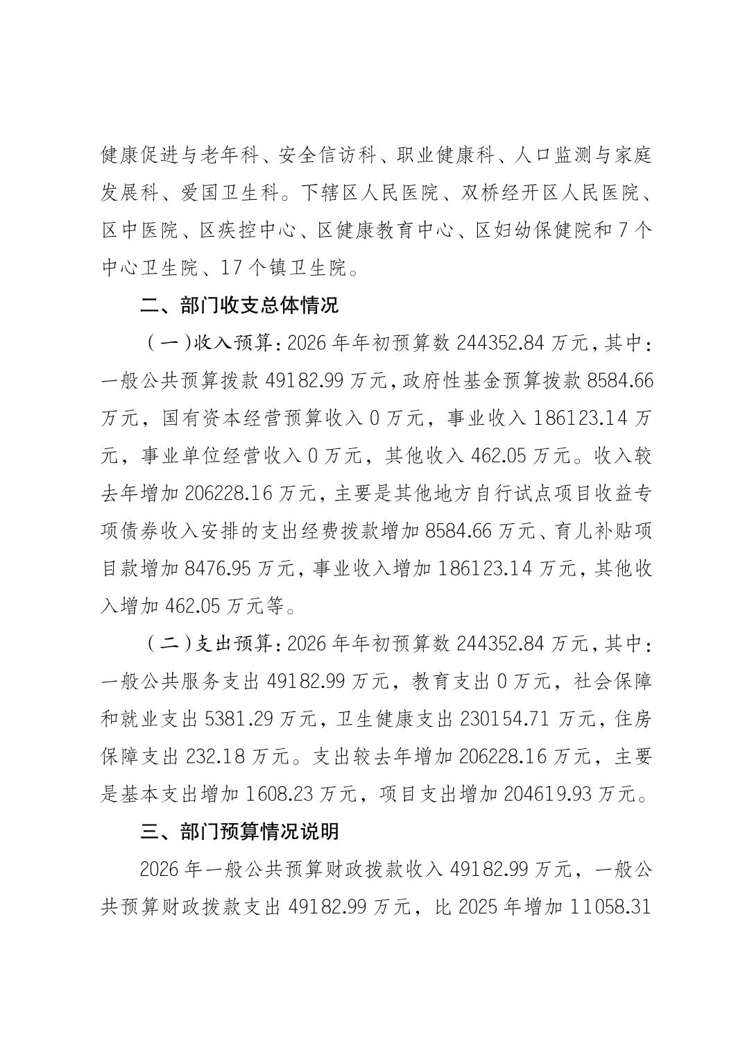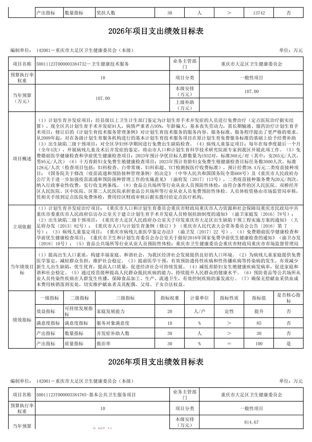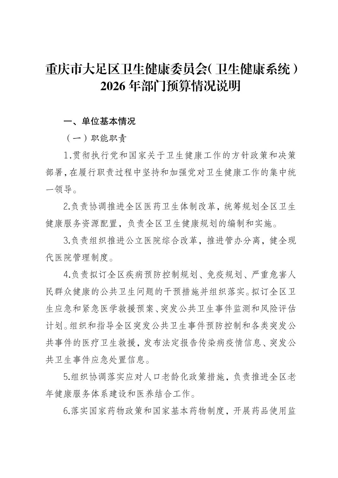 142重庆市大足区卫生健康委员会2026预算公开(汇总)