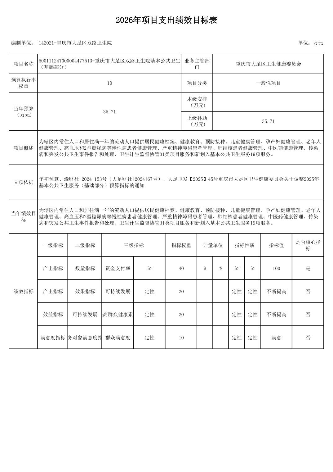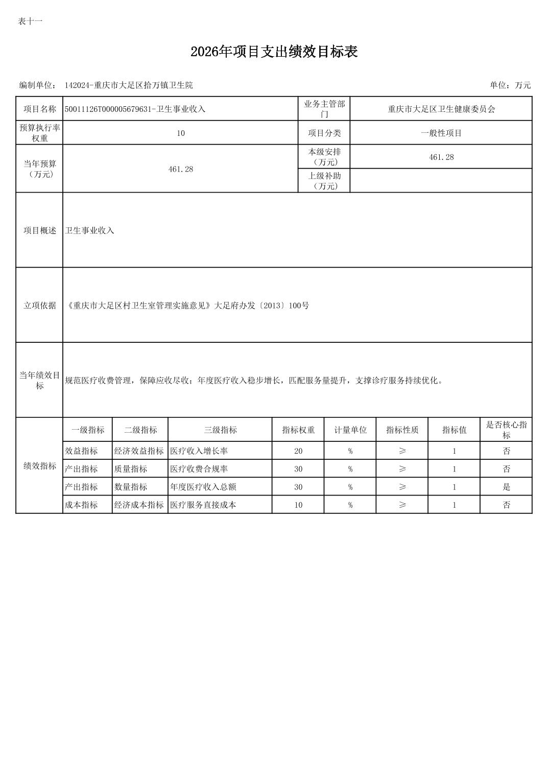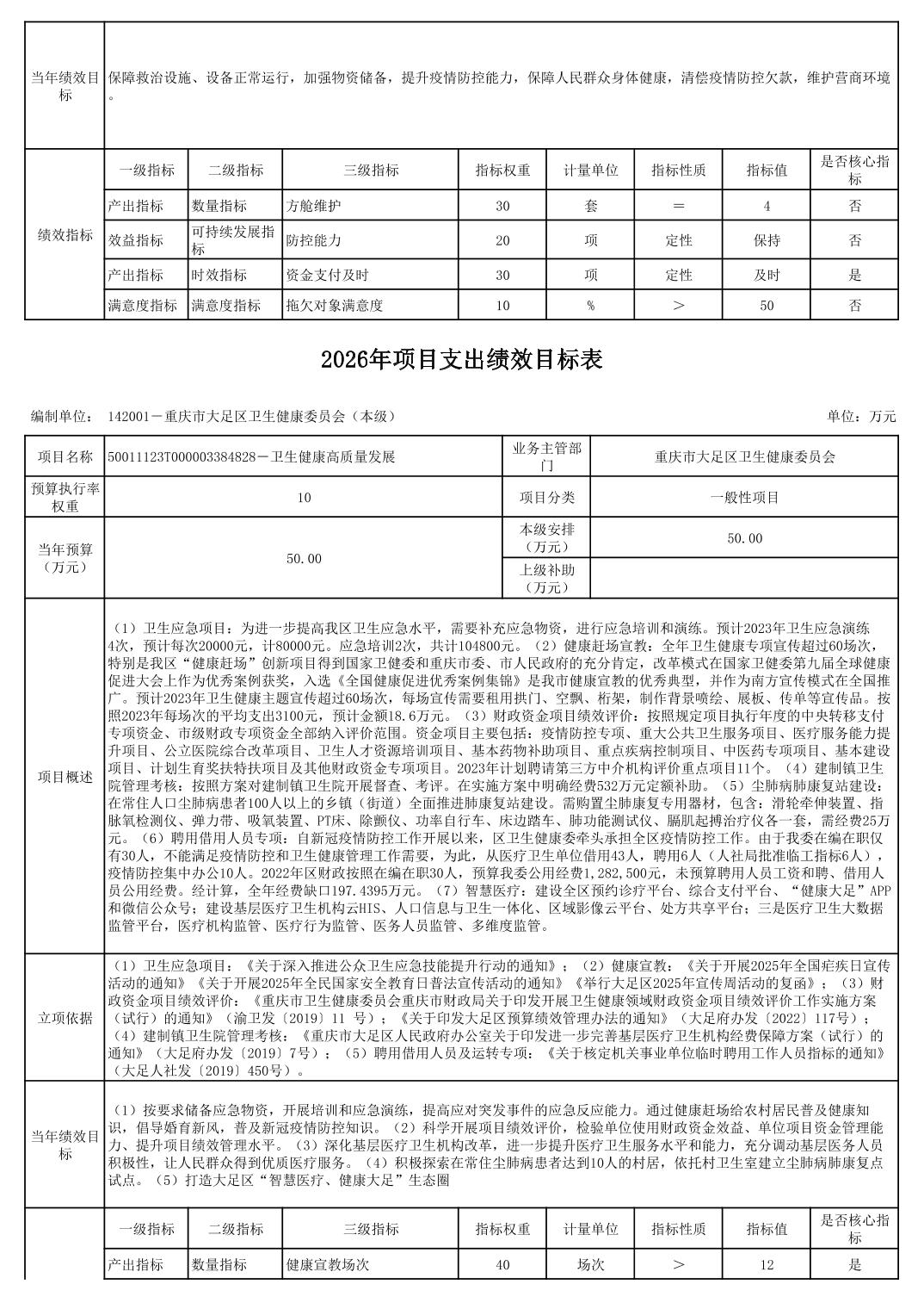 142重庆市大足区卫生健康委员会2026预算公开(汇总)