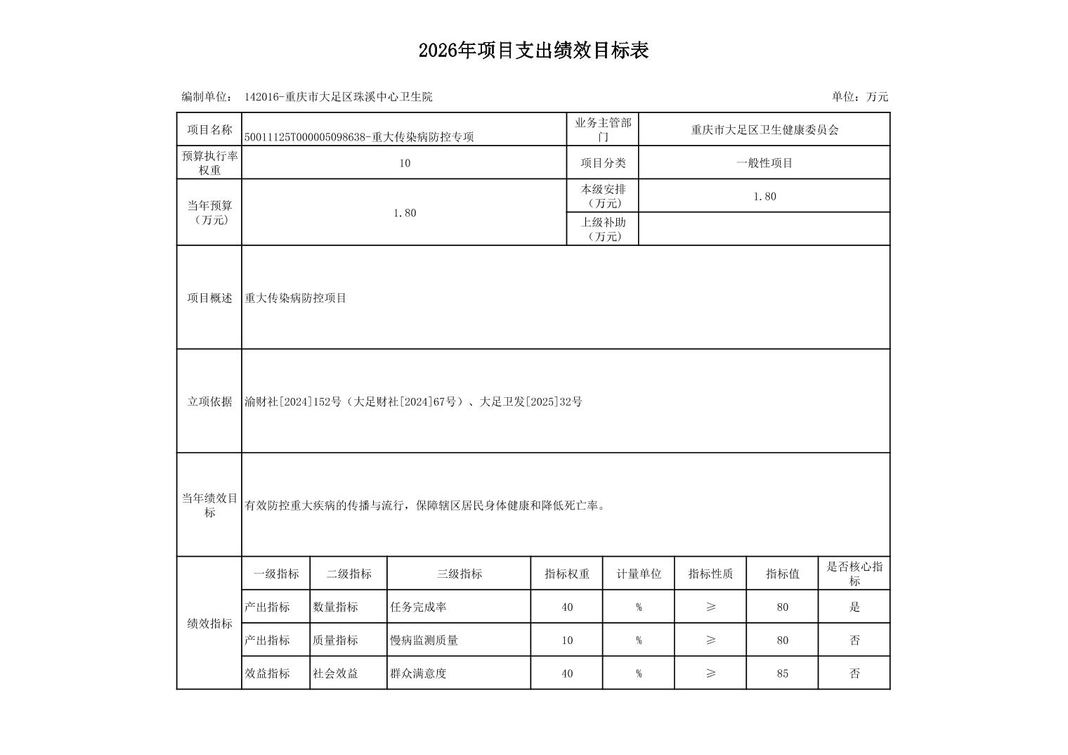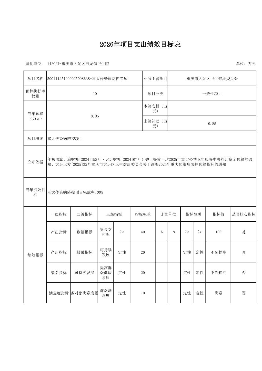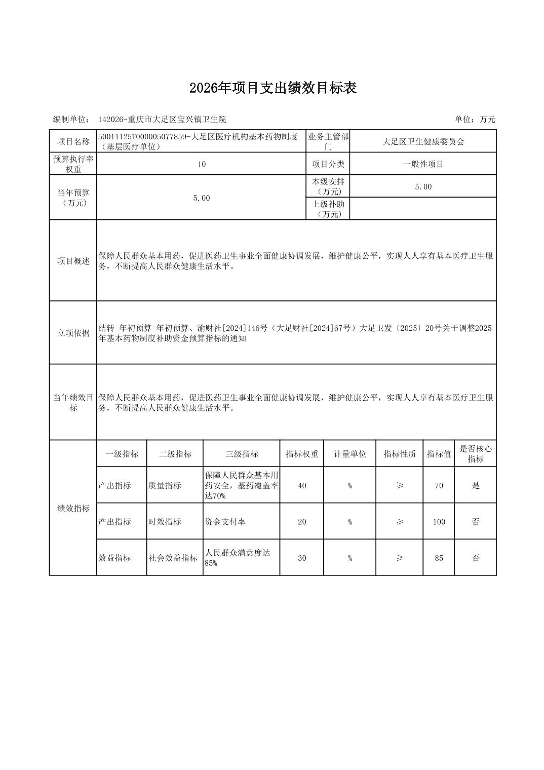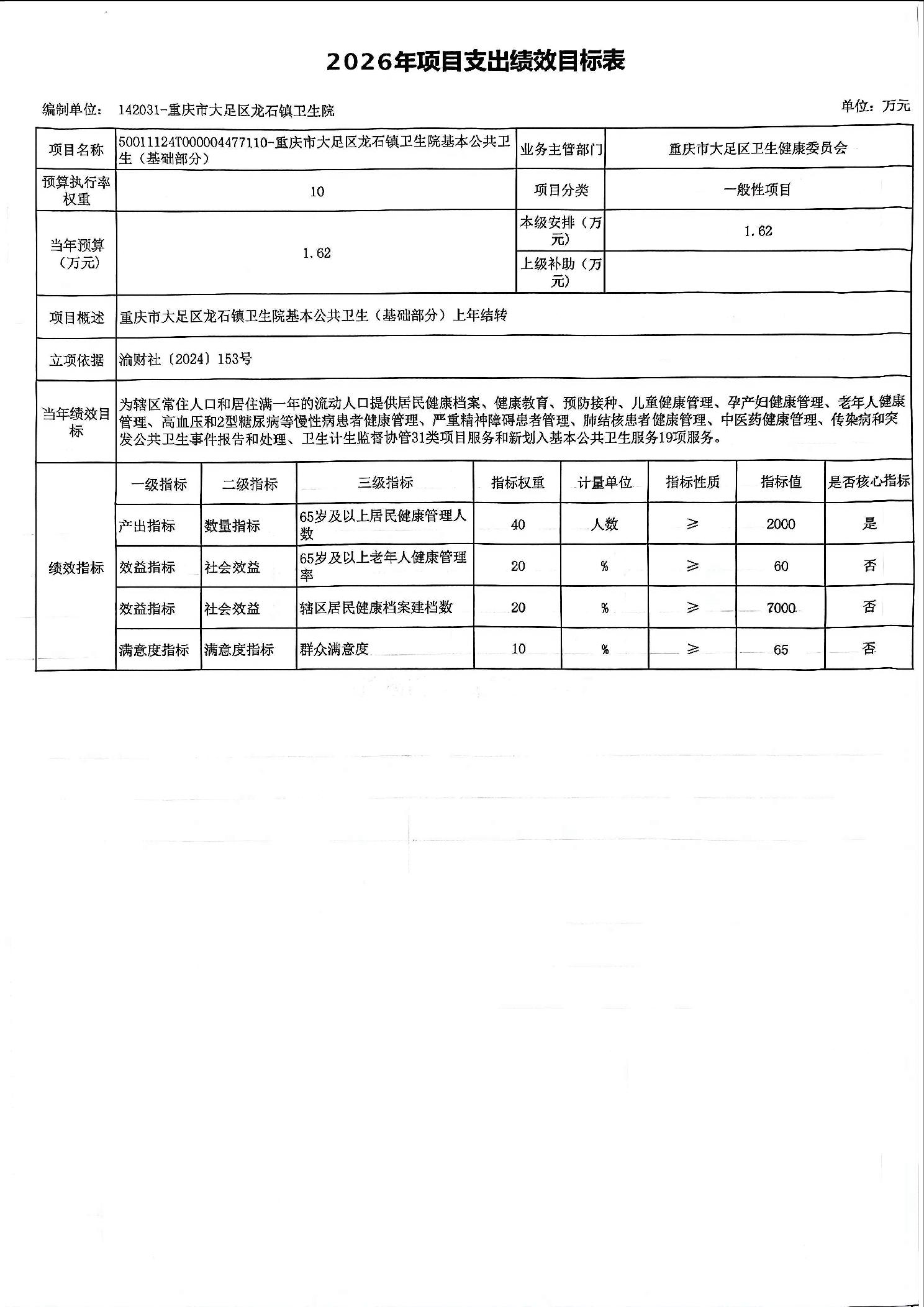 142重庆市大足区卫生健康委员会2026预算公开(汇总)