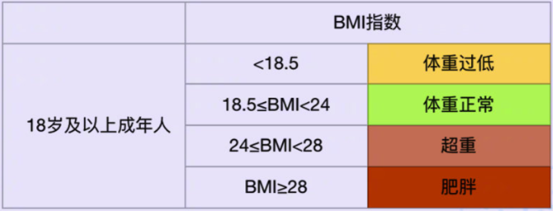 体质指数(BMI)= 体重(kg)/身高(m)的平方