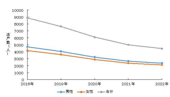 2022年人口信息系统上全区常住人口为840215人,其中男性427735人,女性412480人。少儿抚养比为30.21%(159084/526542),老年抚养比为29.36%(154589/526542)。全区常住人口出生婴儿4432人,出生率为5.27‰,死亡7312人,粗死亡率870.25/10万,全区人口自然增长-2880人,自然增长率为-3.43‰。2022年全区人均期望寿命为79.35岁,其中男性期望寿命为76.50岁,女性期望寿命为82.53岁,女性高于男性。与2021年的期望寿命(78.38岁)比较,2022年人均期望寿命略有上升。