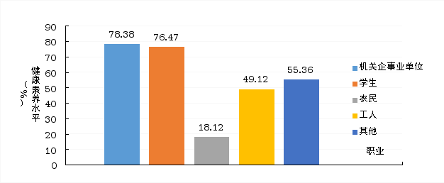 分析基于国家的健康素养维度划分标准进行,将相关题目折算为分数进行评分(单选题1分,多选题2分,每题全部答对者才能得分),达到总分值80%及以上的判定为具备健康素养水平。采用SPSS软件进行分析。统计方法主要有一般描述性分析,不同性别、年龄、教育水平等之间的健康素养水平和健康素养三方面问题采用卡方检验(以p<0.05表示差别具有统计意义)等。