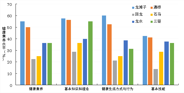 2022年大足区居民健康素养监测在龙滩子街道、通桥街道、三驱镇、回龙镇、龙水镇、石马镇共计6个监测点开展调查。