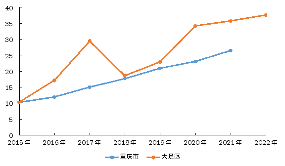 3.9 健康素养:重庆市居民健康素养监测结果显示:2018年~2022年大足区居民健康素养水平依次分别为18.52%、22.81%、34.08%、35.63%和37.50%。