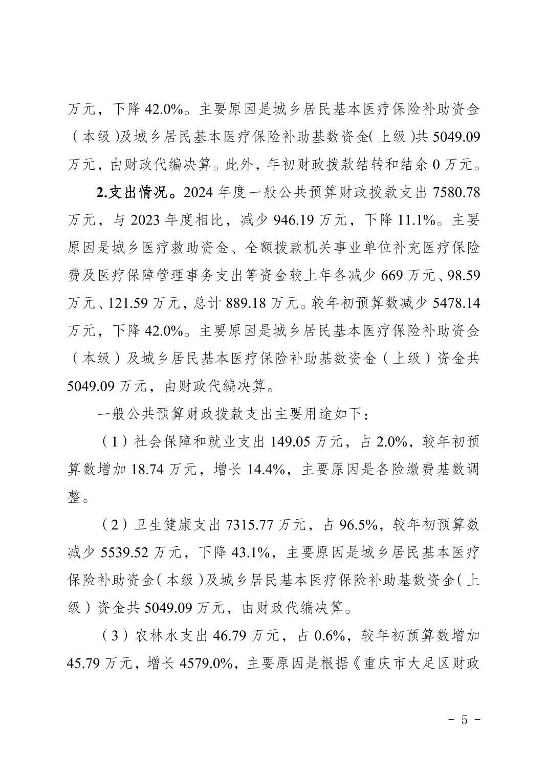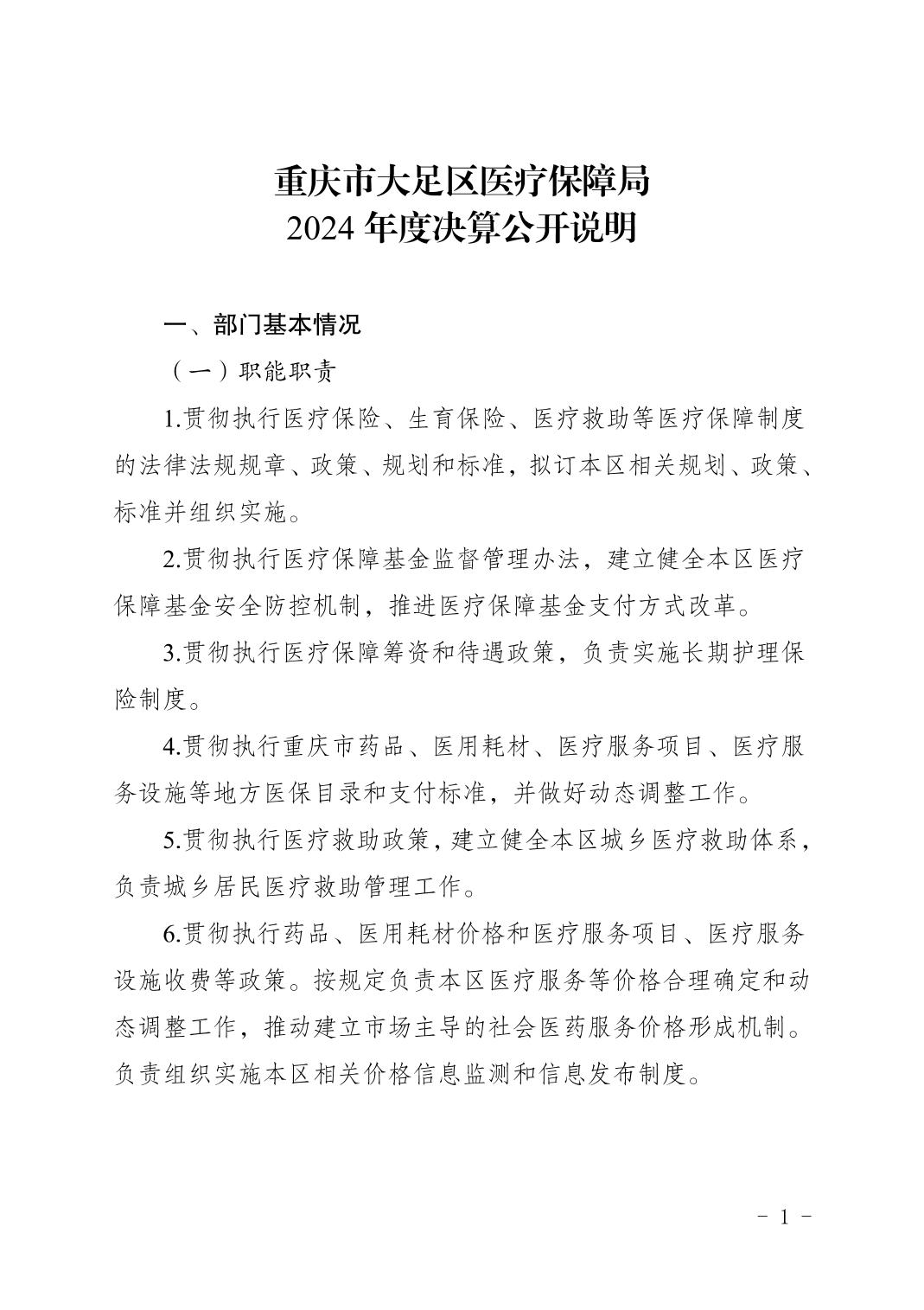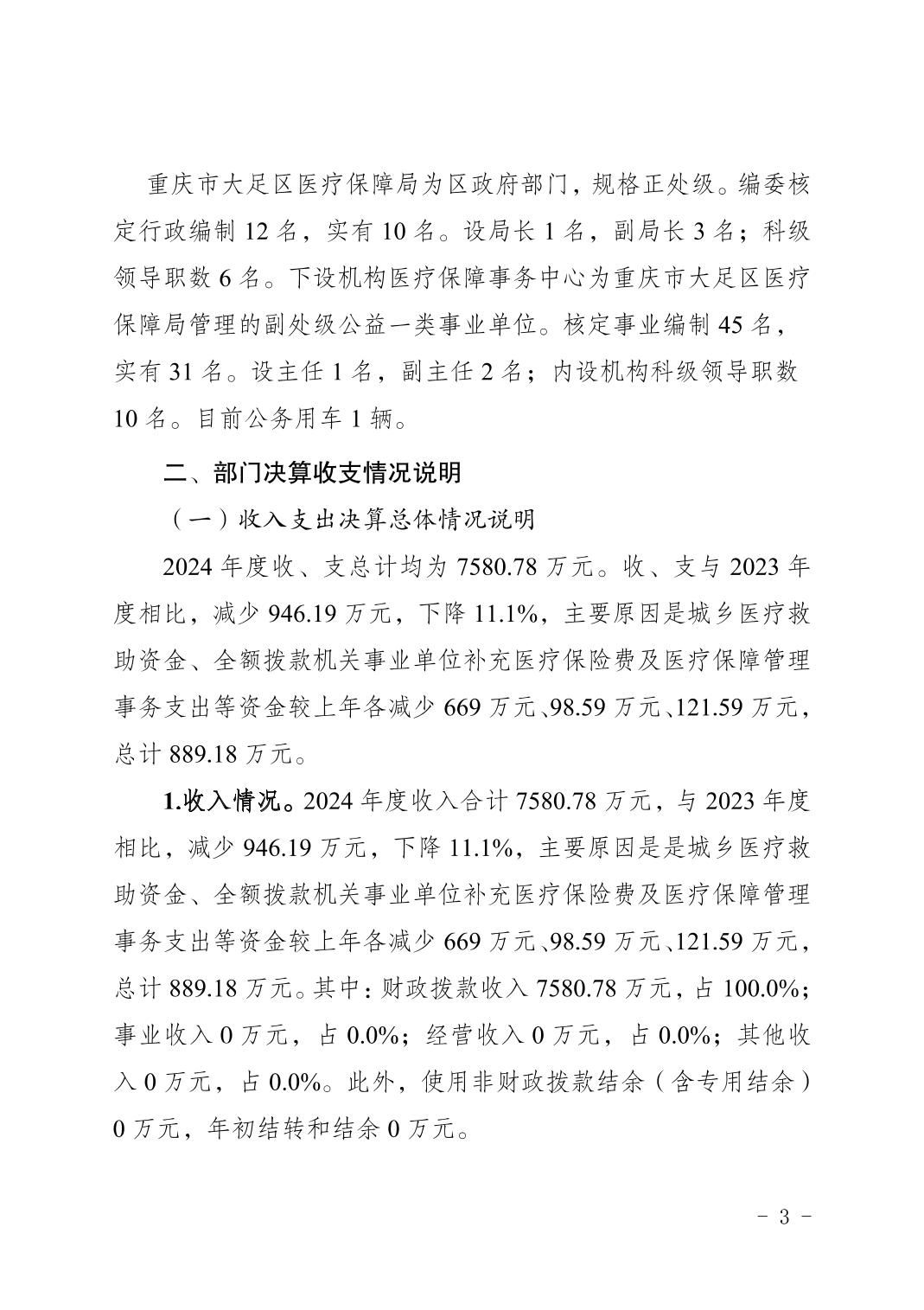 重庆市大足区医疗保障局2024 年度决算公开说明