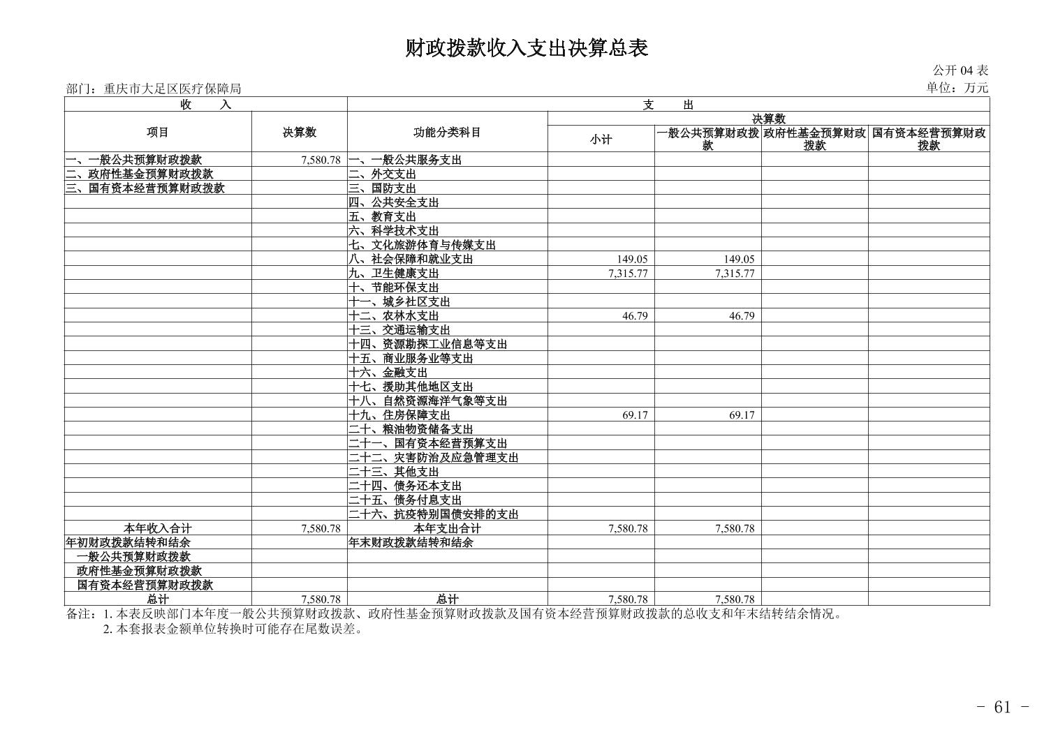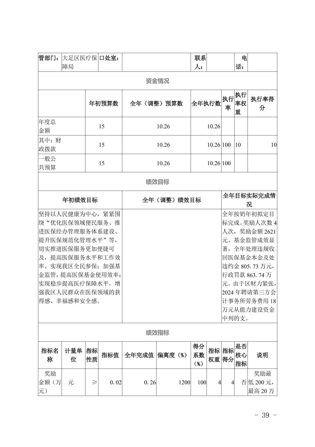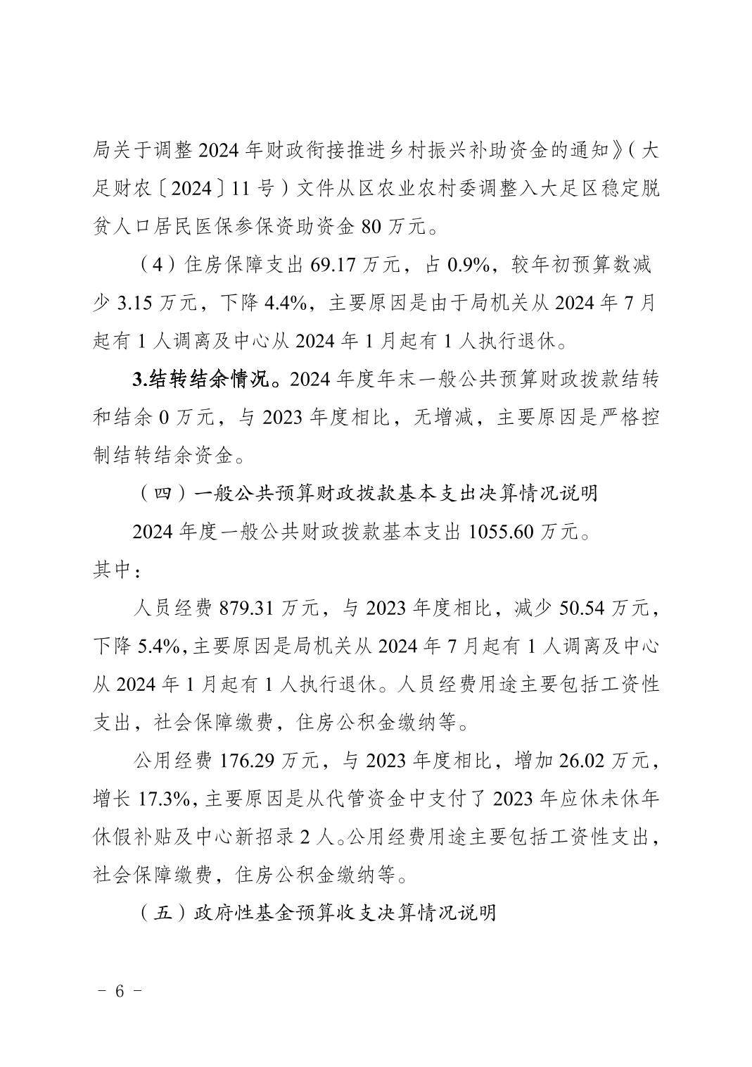 重庆市大足区医疗保障局2024 年度决算公开说明
