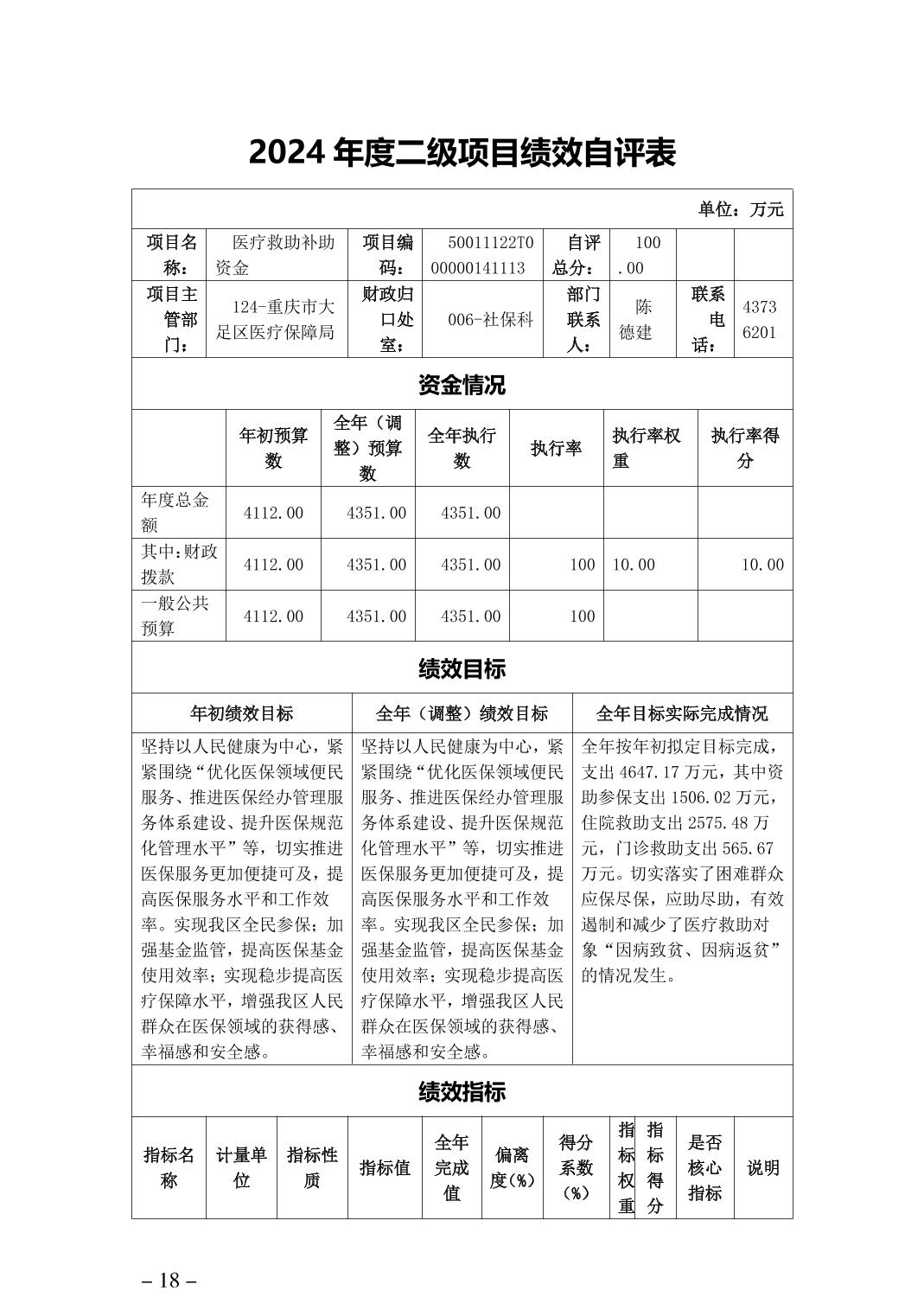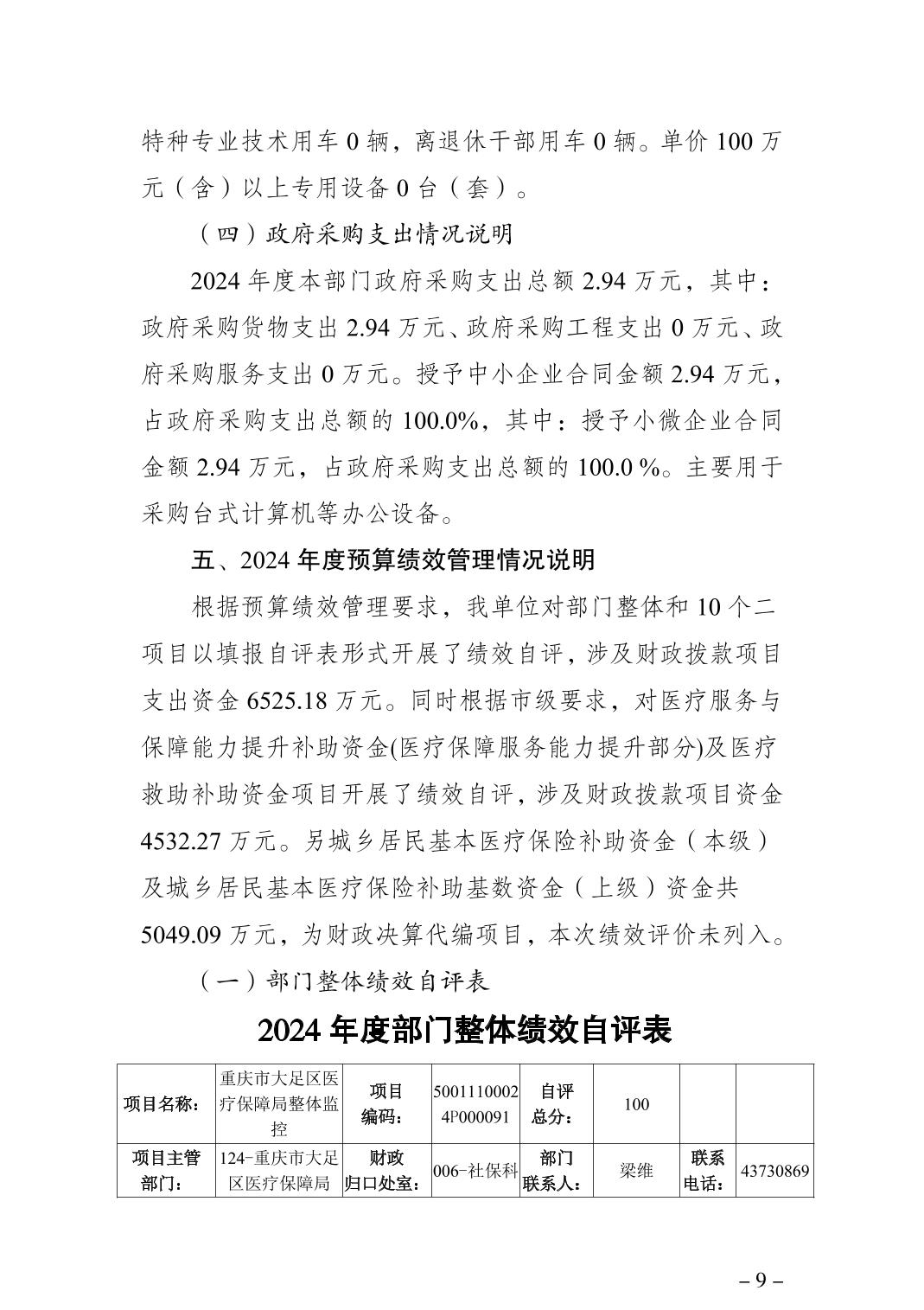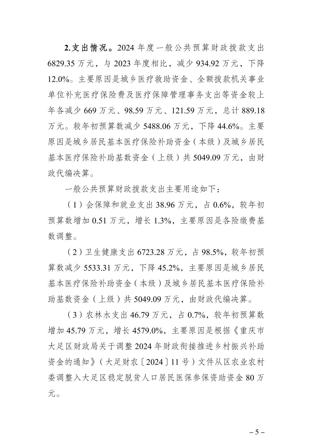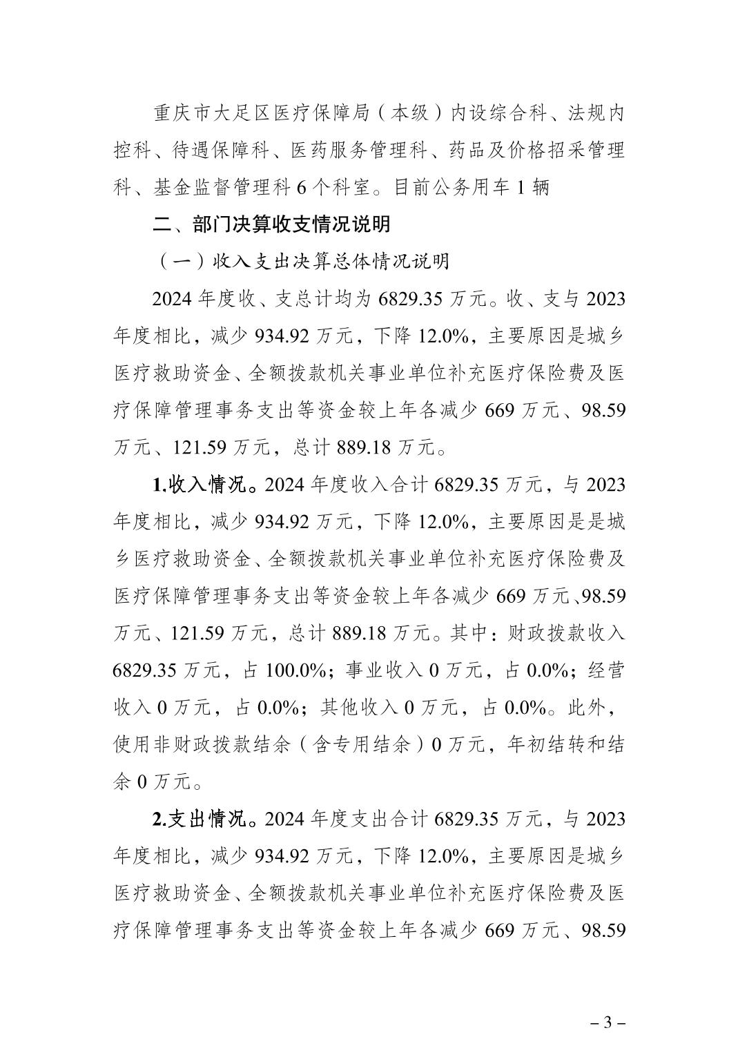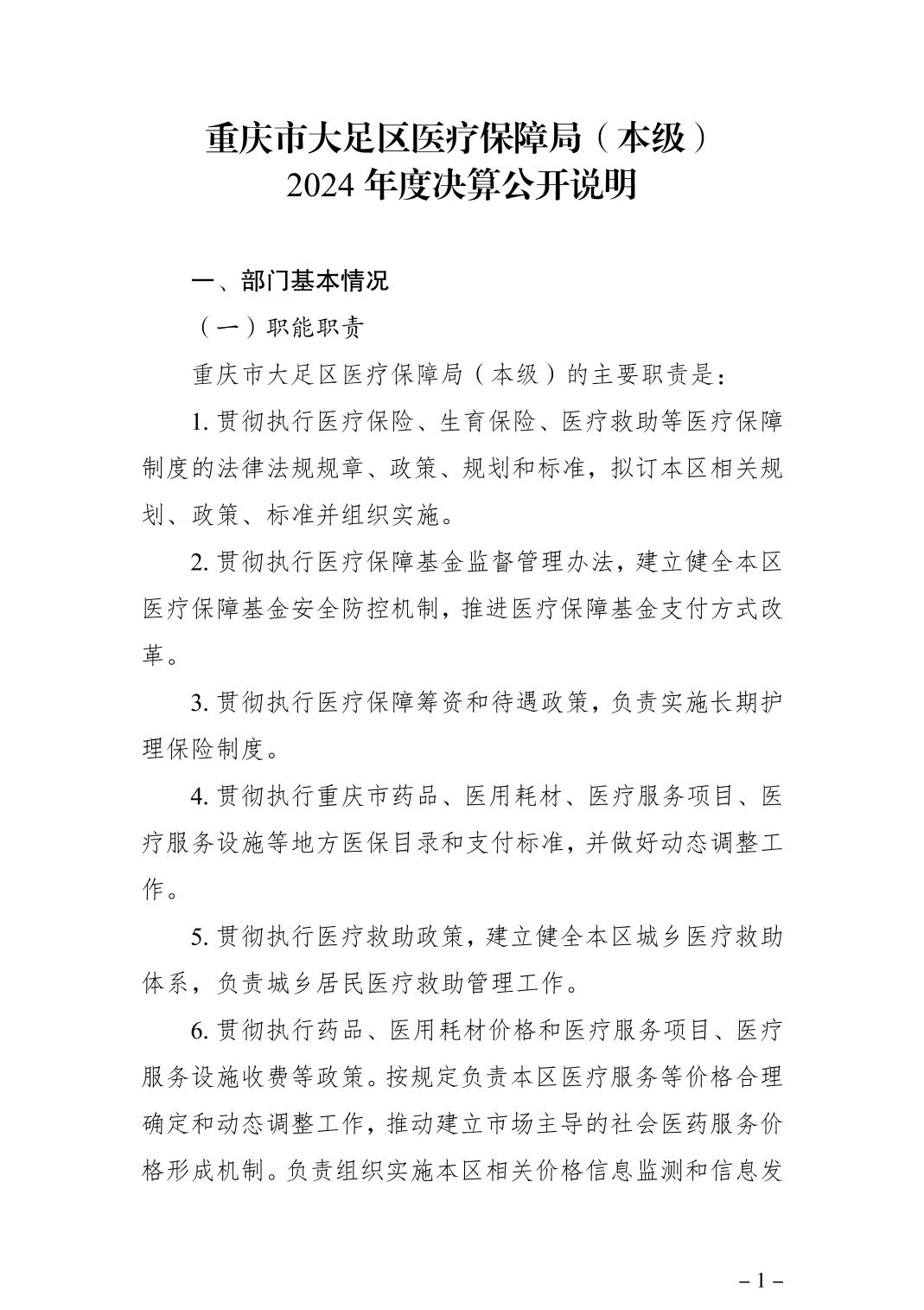 重庆市大足区医疗保障局(本级)2024 年度决算公开说明