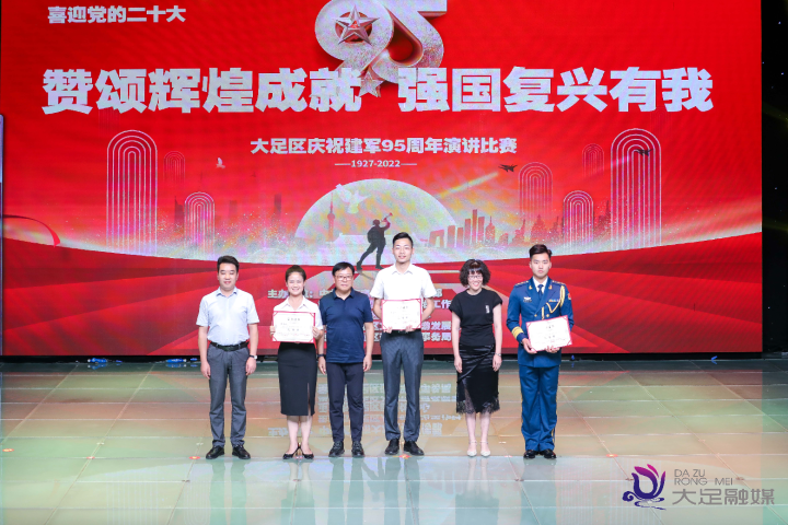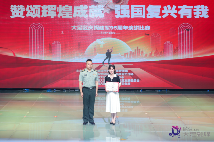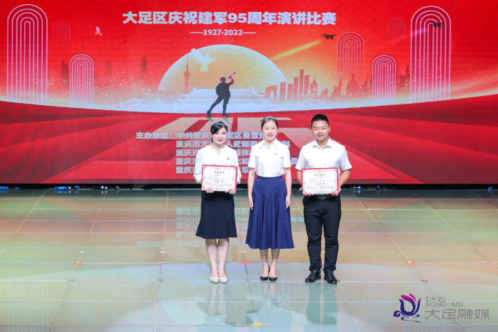 掌上大足讯(见习记者 崔晓玲 欧柚希 摄)在中国人民解放军建军95周年到来之际,7月19日,在大足区融媒体中心开展了主题为“赞颂辉煌成就、强国复兴有我”庆祝建军95周年演讲比赛决赛。大足区人武部部长田同玉、宣传部部长刘青青参加活动。