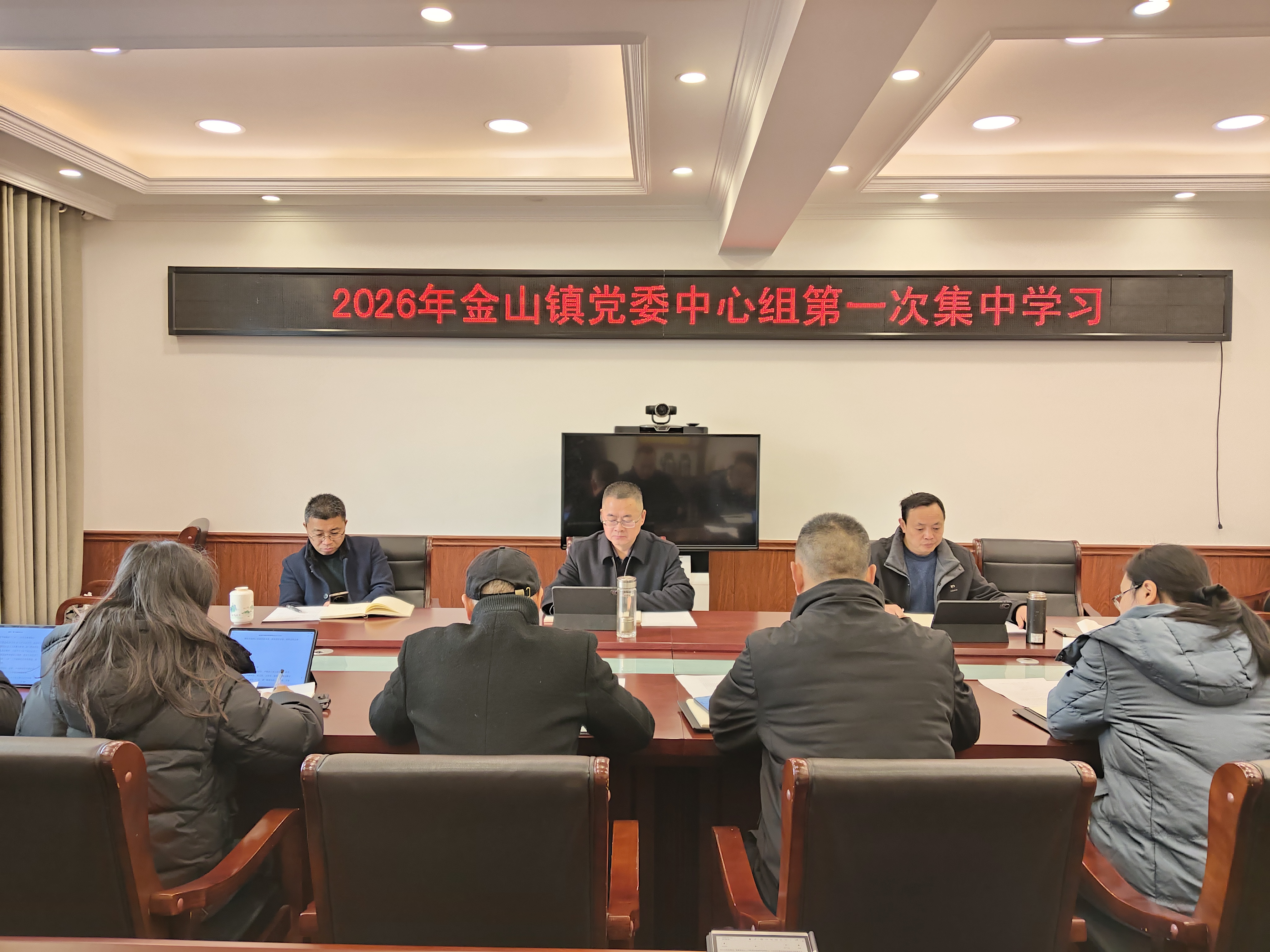 2026年1月12日,金山镇召开党委中心组第一次集中学习会议,镇党政班子在家成员参加会议,会议由镇党委书记姜从志主持。
