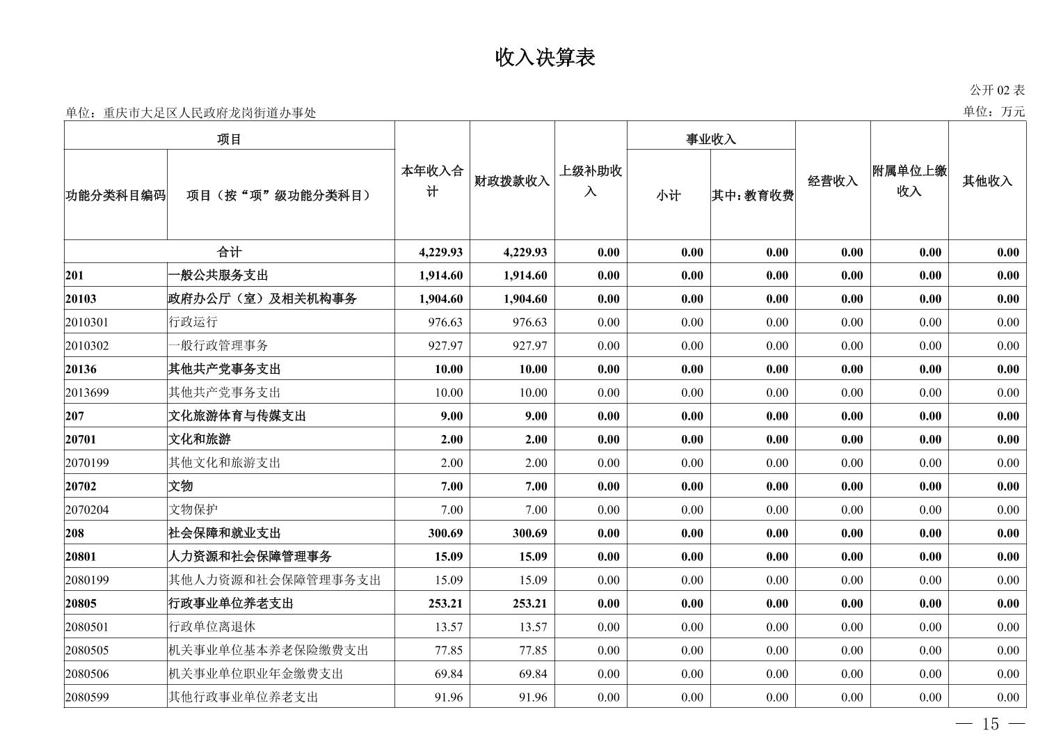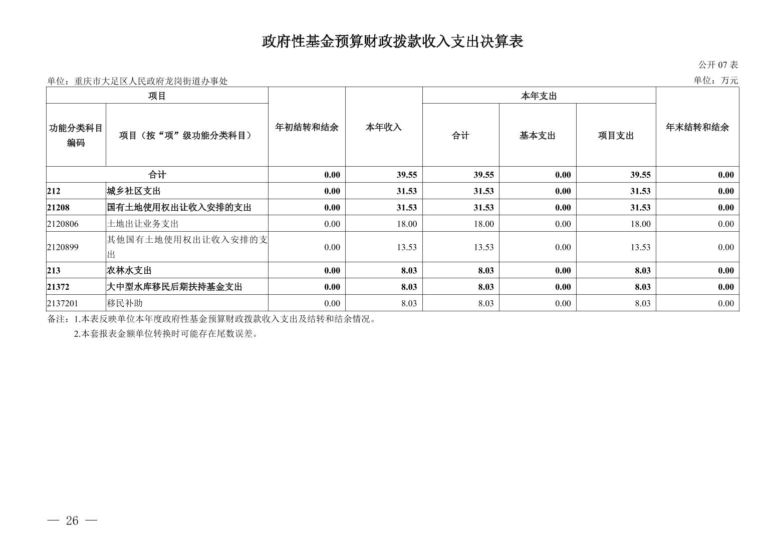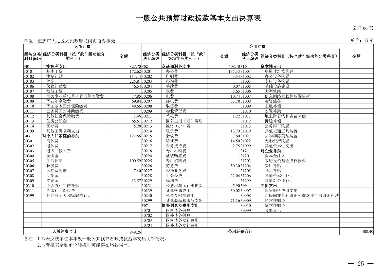 重庆市大足区人民政府龙岗街道办事处_2024年决算公开说明及公开报表(单位)