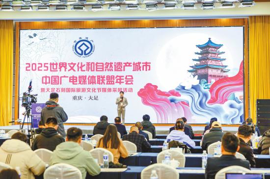 3月17日上午,2025世界文化和自然遗产城市中国广电媒体联盟年会暨大足石刻国际旅游文化节媒体采风活动,在世界文化遗产大足石刻所在地重庆市大足区开幕。根据联盟理事会大足决议,联盟正式更名为“世界文化和自然遗产城市国际媒体联盟”。在两天年会活动期间,来自甘肃敦煌、安徽黄山、河北承德、四川都江堰、重庆武隆、澳大利亚悉尼等20多个国内外城市的媒体负责人、记者等60余人汇聚大足,共商联盟发展大计,共探媒体助推世界遗产文化传播“活”起来、“火”起来路径,共同讲好大足石刻保护、研究、利用和城市高质量发展故事。