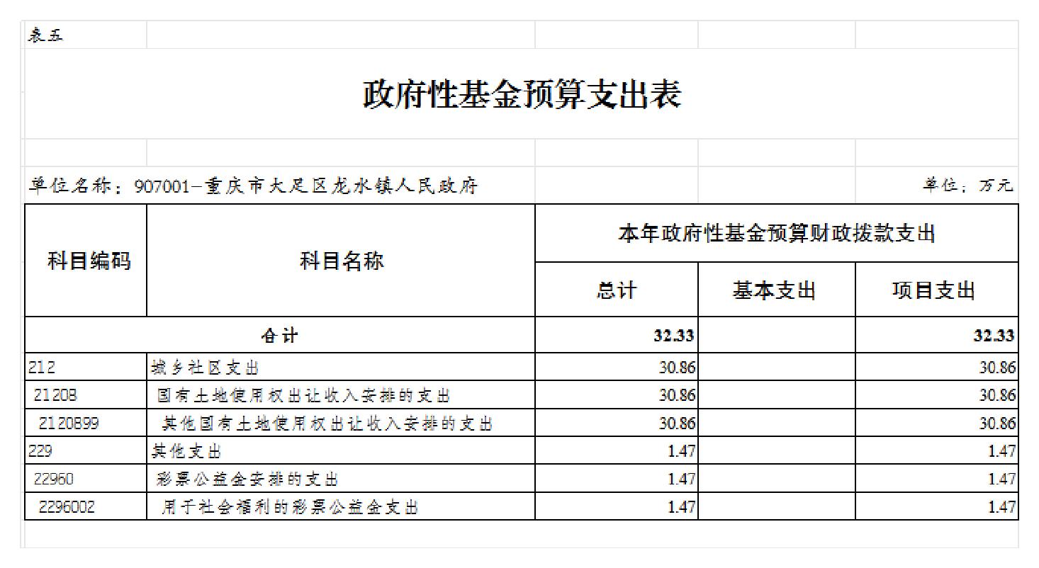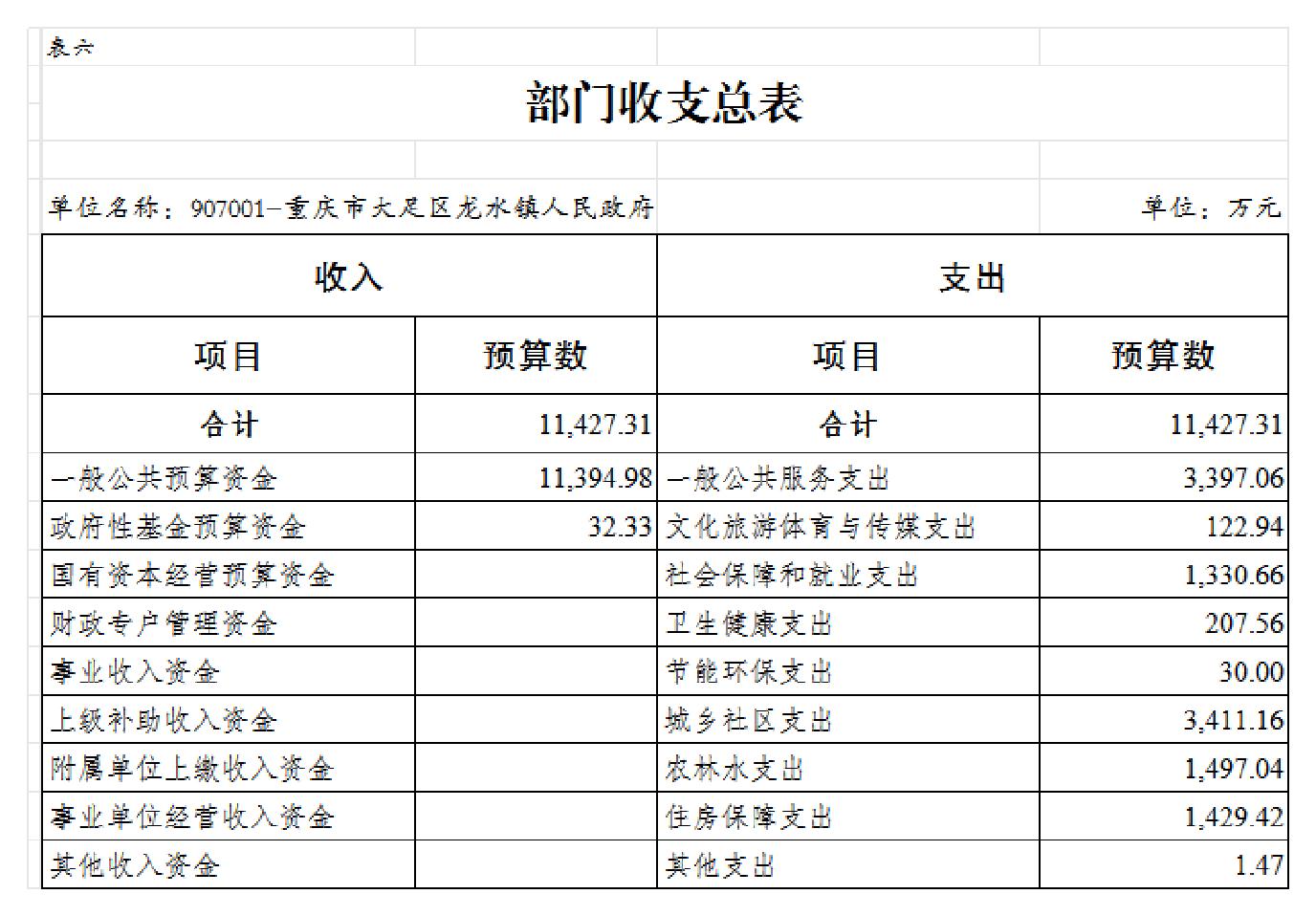 重庆市大足区龙水镇人民政府 2026年部门预算情况说明及预算公开表