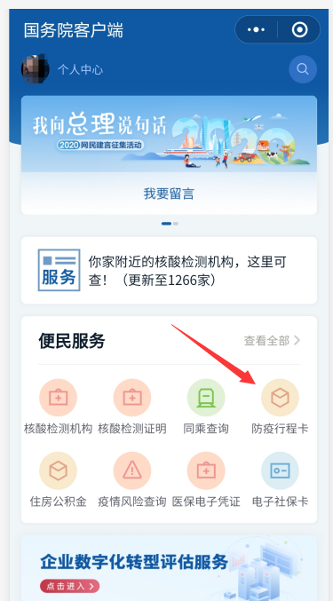 方法二:使用微信小程序国务院客户端,进入“防疫行程卡”,即可追溯活动轨迹。