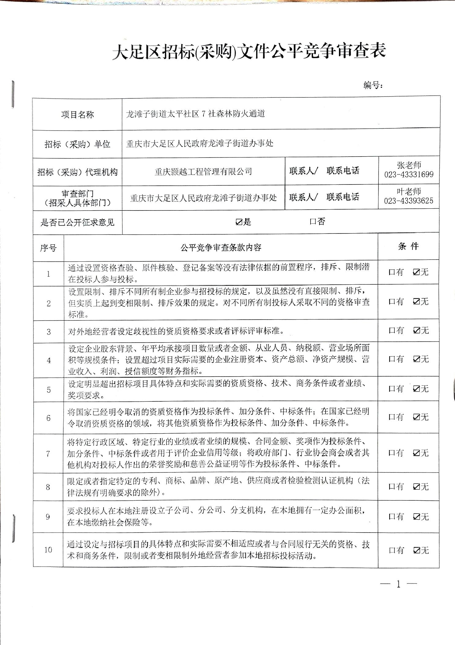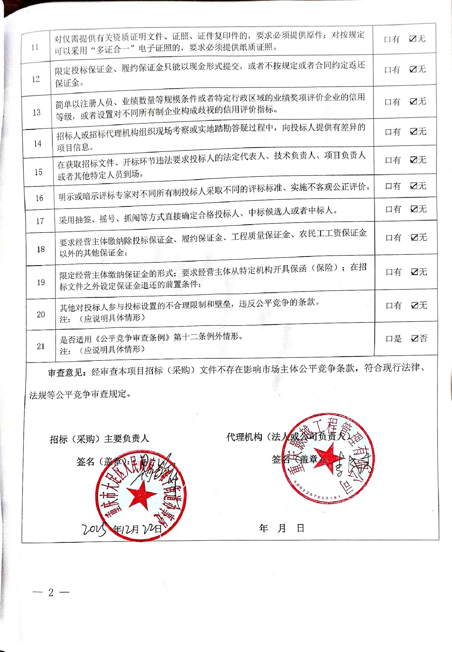 大足区招标(采购)文件公平竞争审查表