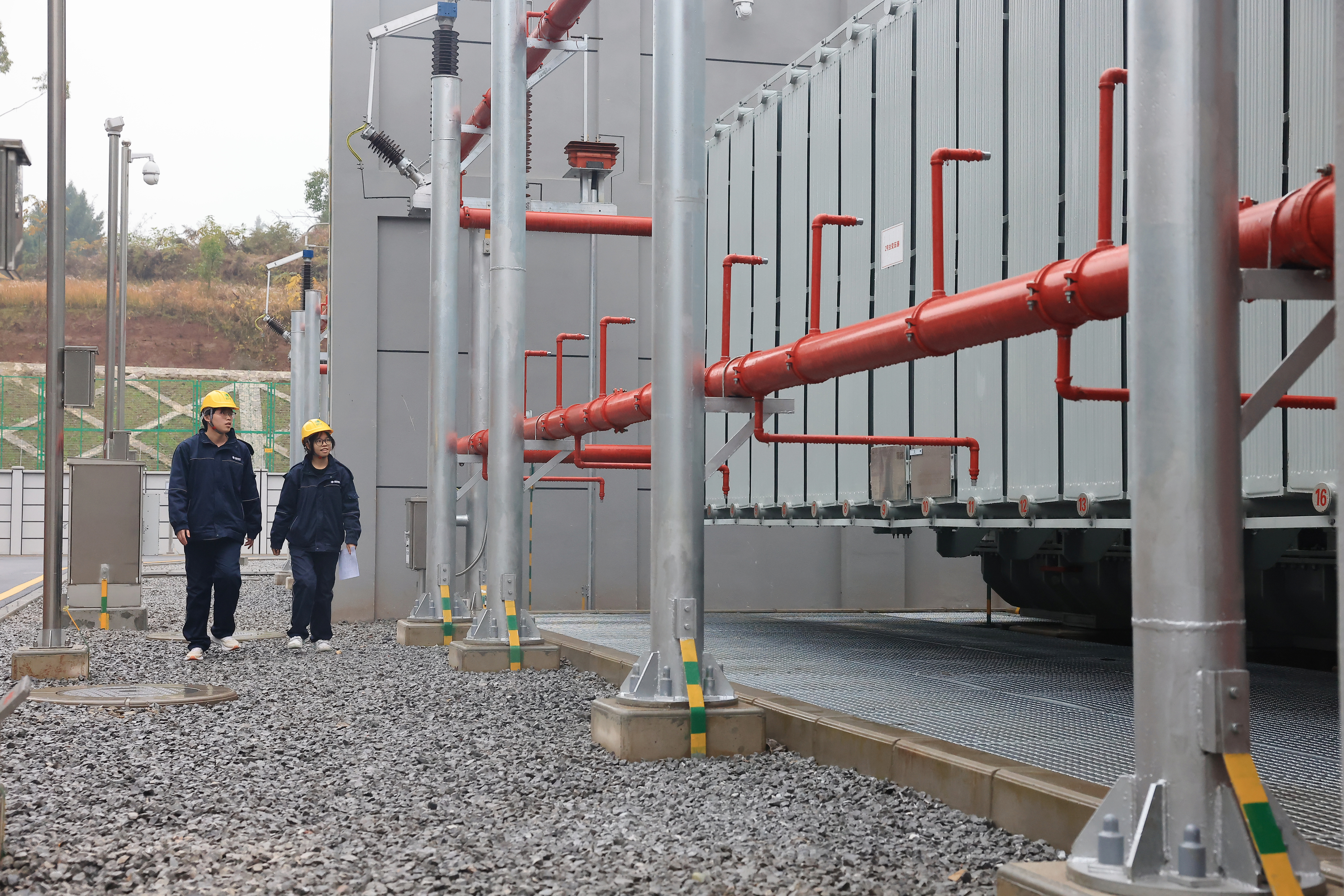 220千伏智凤变电站是该工程的“重头戏”。变电站是大足区境内的第一座半户内变电站,与户外变电站相比环境更加友好。此外,将GIS等配电装置布置在室内,能够有效抵御雨水侵蚀、盐雾腐蚀等外部因素对设备的影响,减少设备故障风险。变电站还支持远程实时监测设备状态、快速进行故障分析诊断,有效提高日常运维效率。