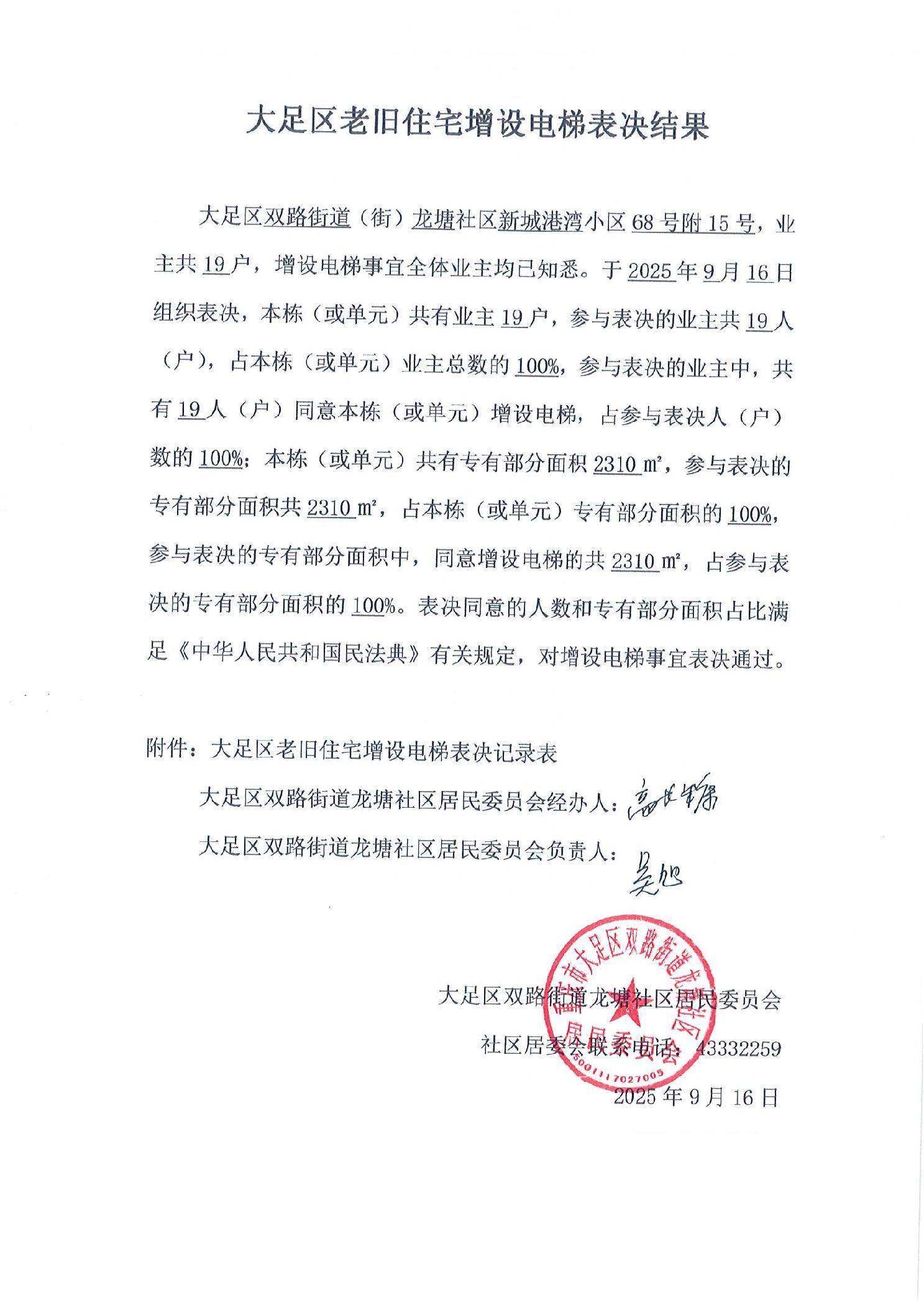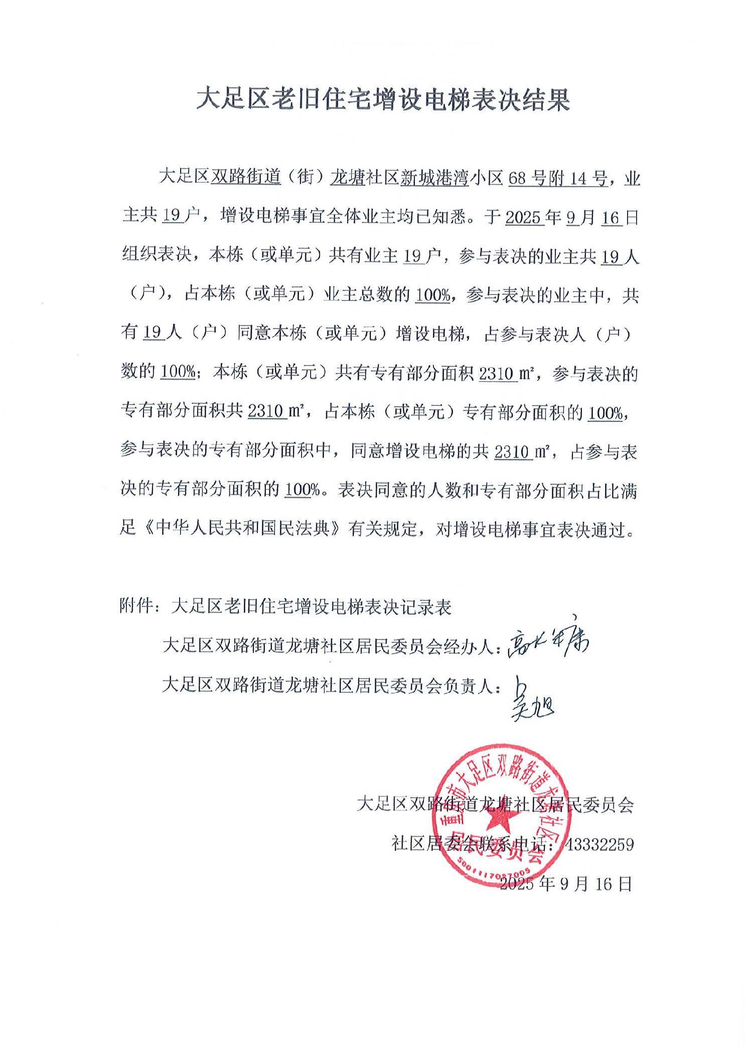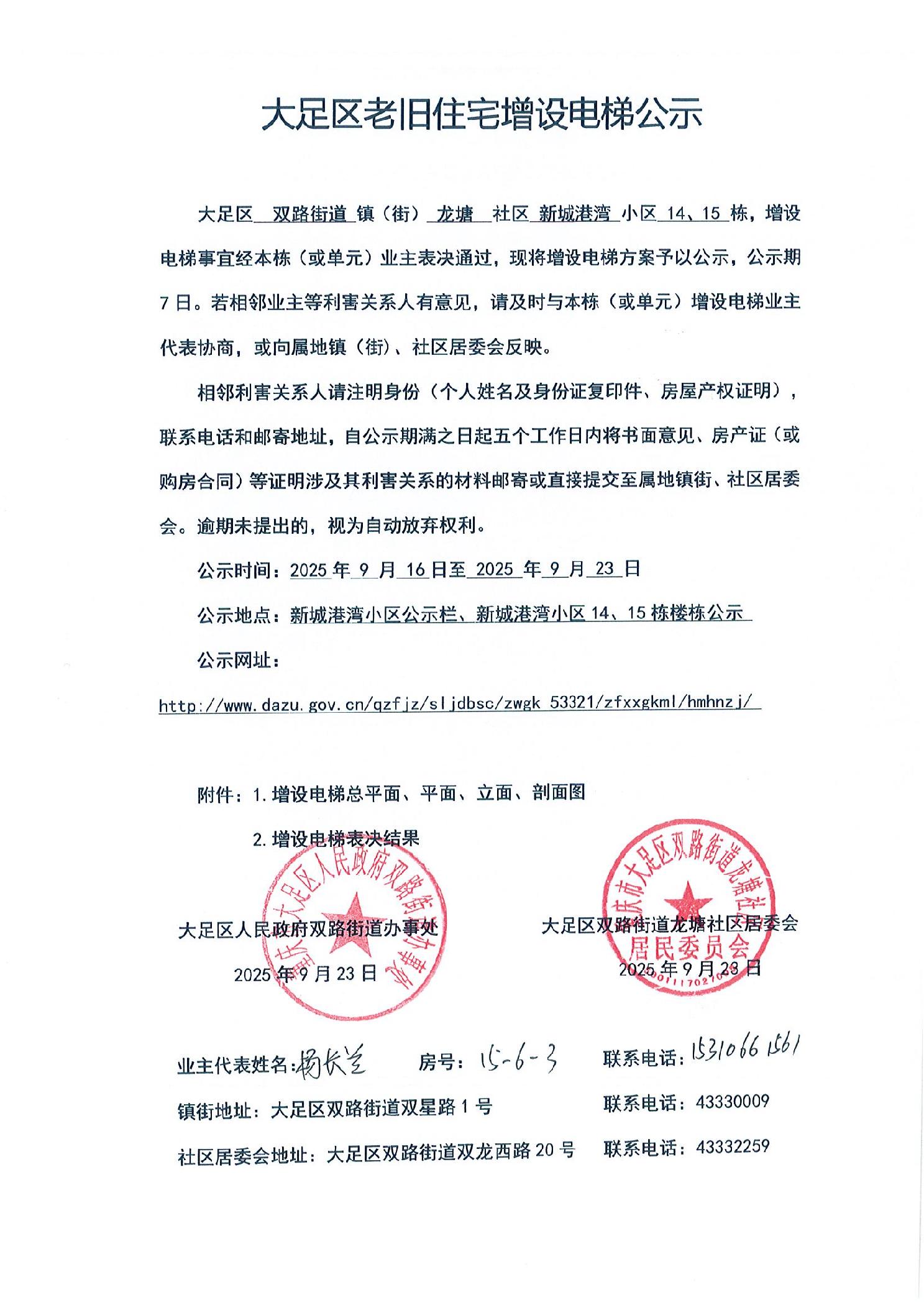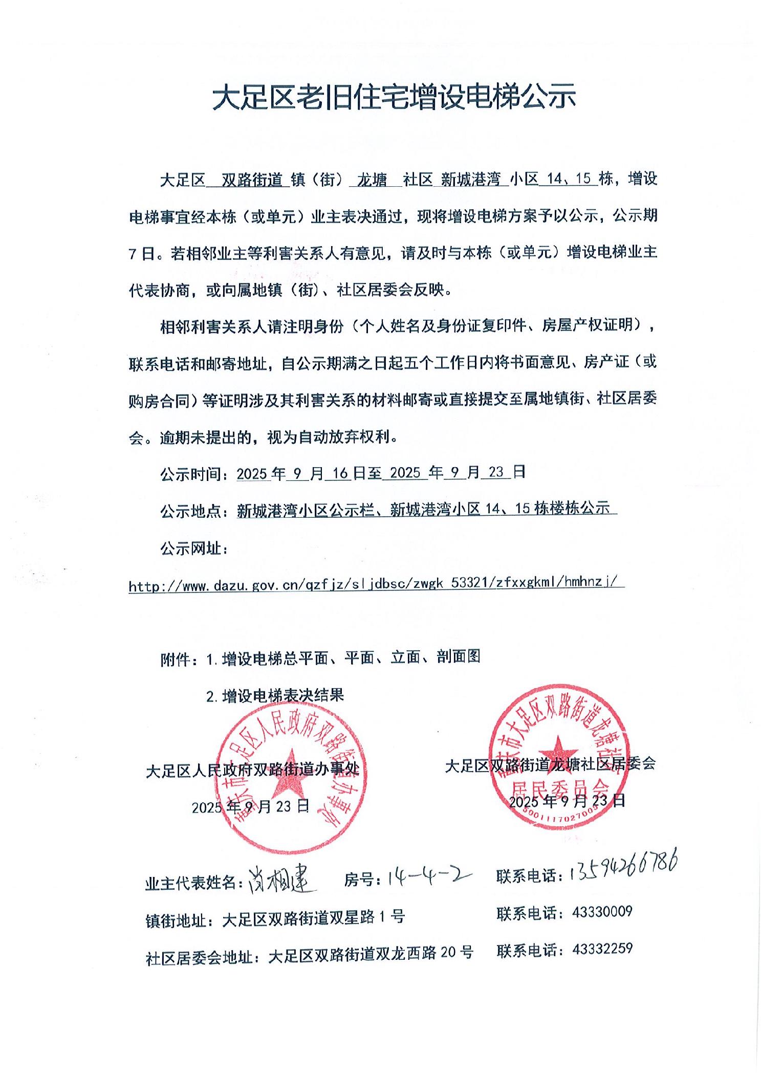 大足区老旧住宅增设电梯公示(新城港湾小区14、15栋)