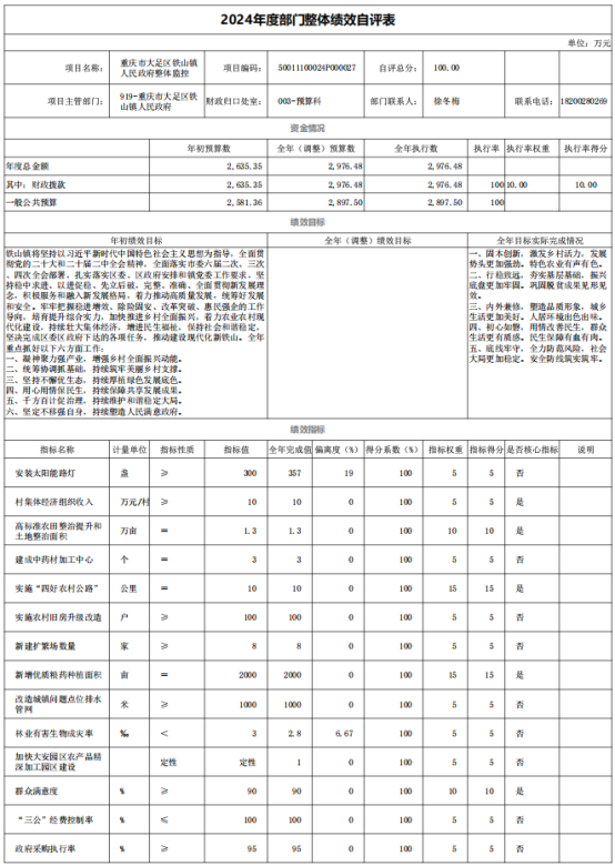 重庆市大足区铁山镇人民政府_2024年决算公开说明及公开报表(部门)