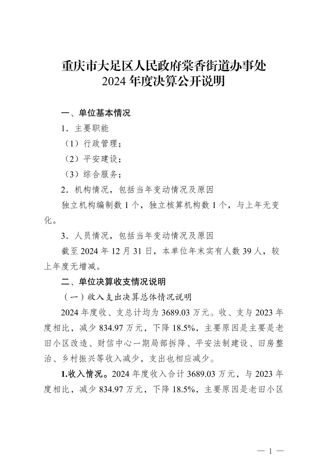 重庆市大足区人民政府棠香街道办事处_2024年决算公开说明及公开报表(单位)