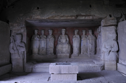 位于今三驱镇佛会村境内的石篆山石窟,是我国石窟寺中儒释道三教合一早期的代表作。