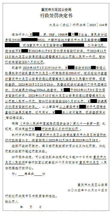 大足公(交巡)行罚决字〔2025〕134号