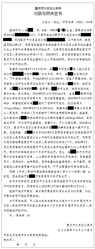 大足公(交巡)行罚决字〔2025〕135号