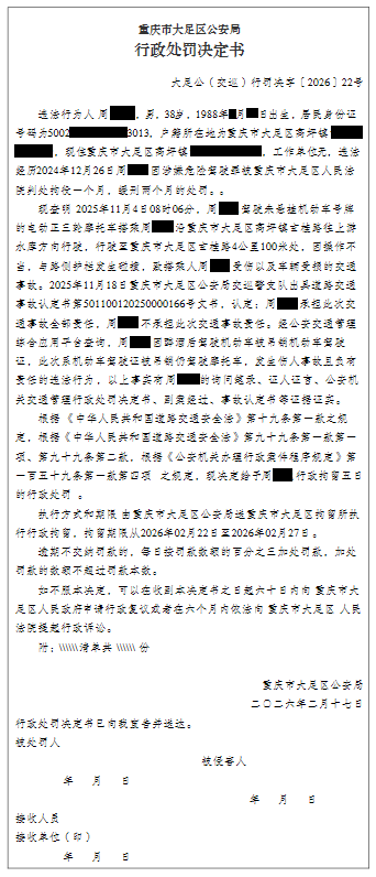 大足公(交巡)行罚决字〔2026〕22号