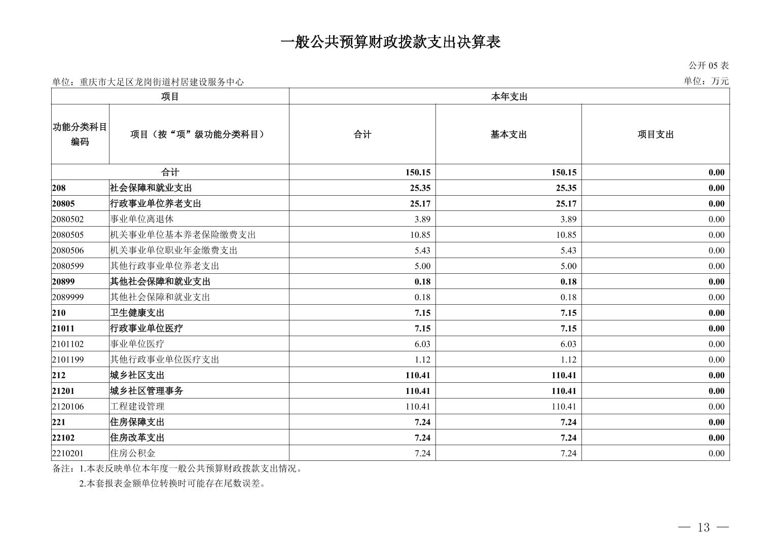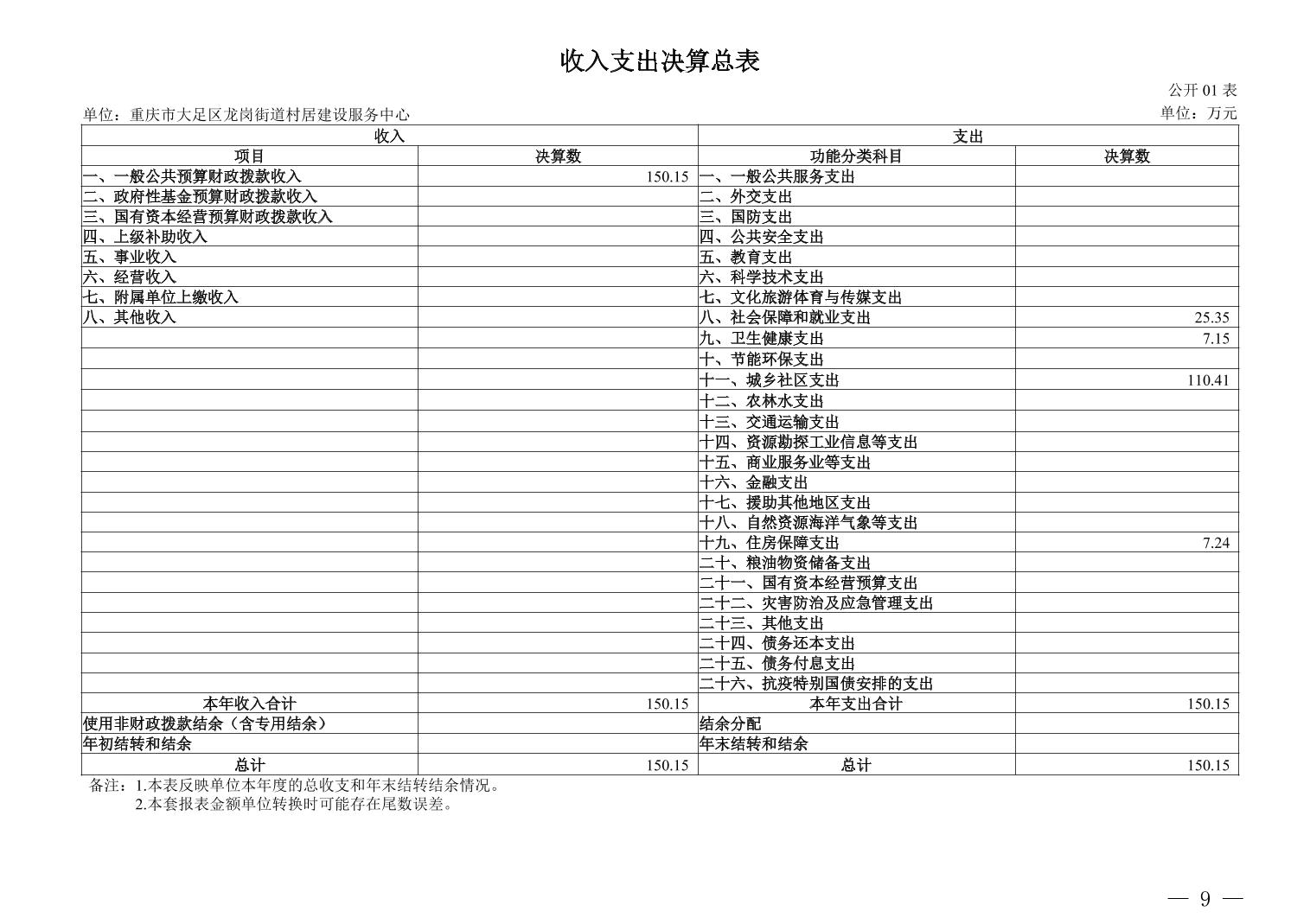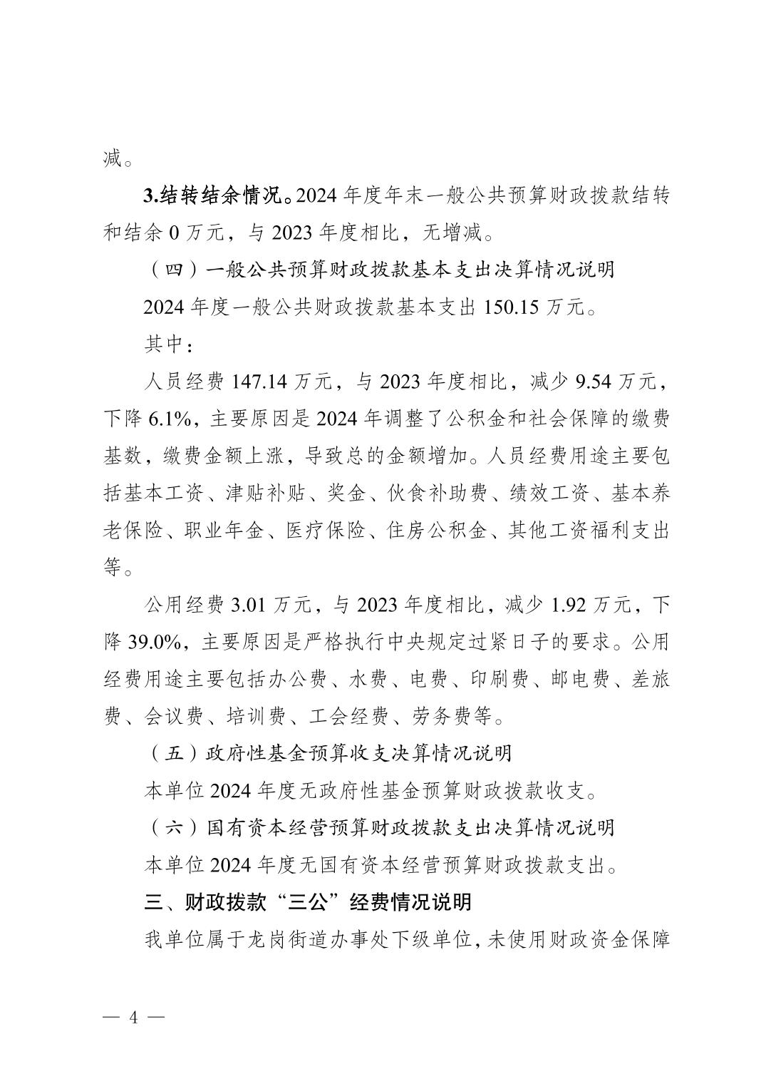 重庆市大足区龙岗街道村居建设服务中心_2024年决算公开说明及公开报表(单位)