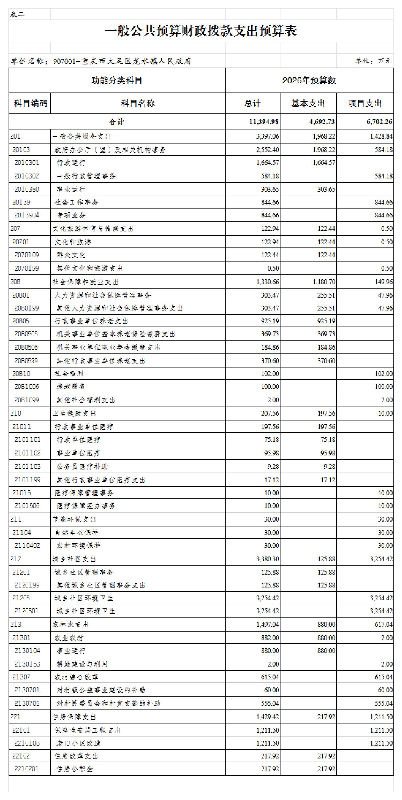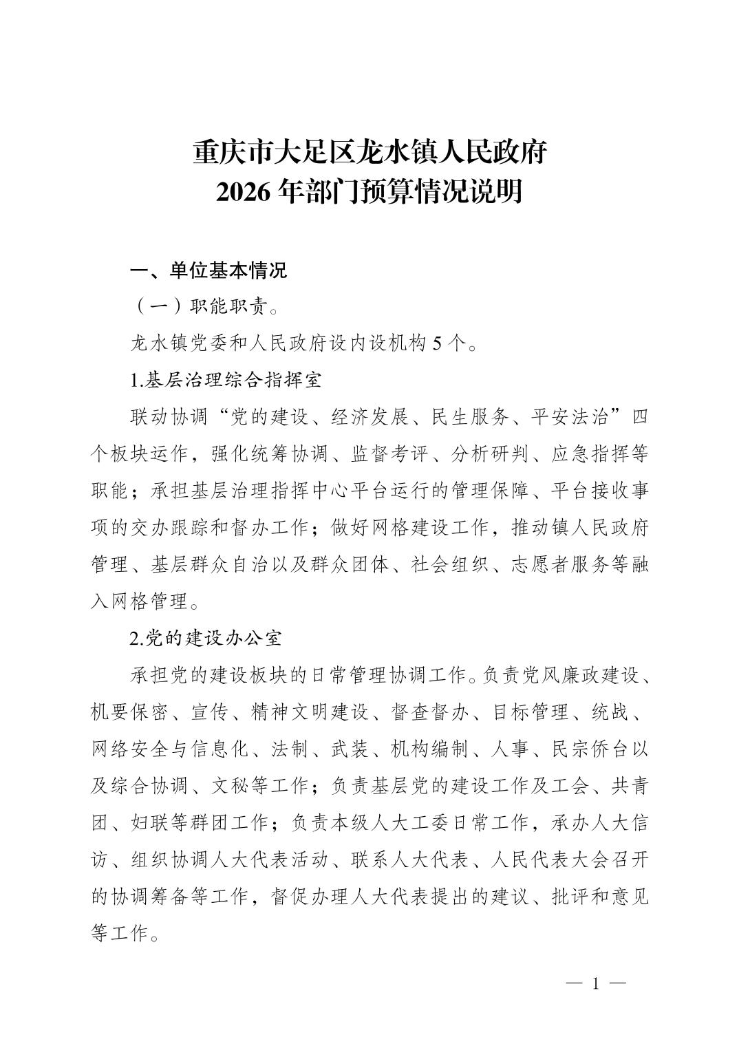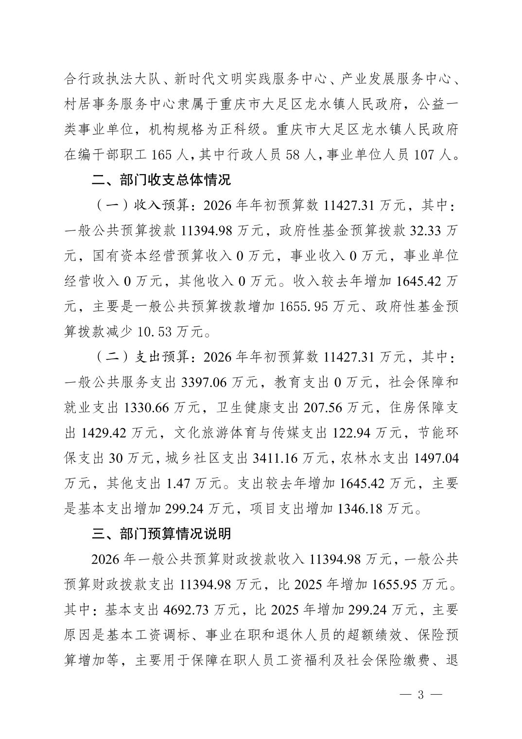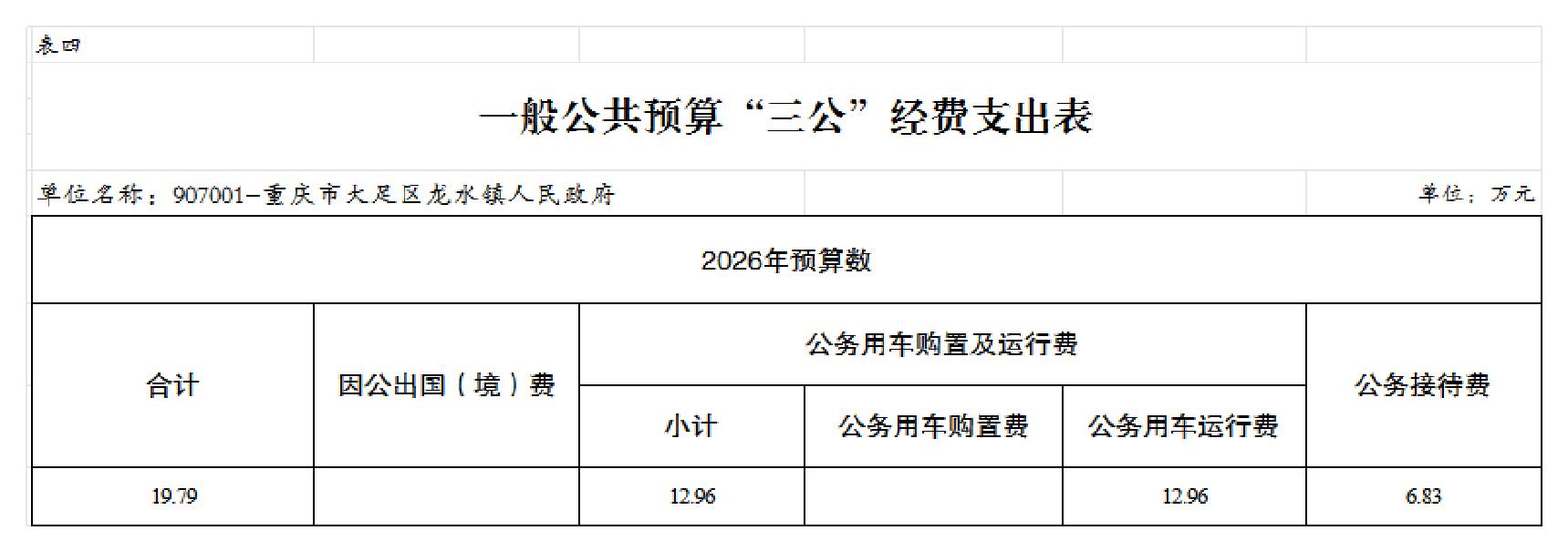 重庆市大足区龙水镇人民政府 2026年部门预算情况说明及预算公开表