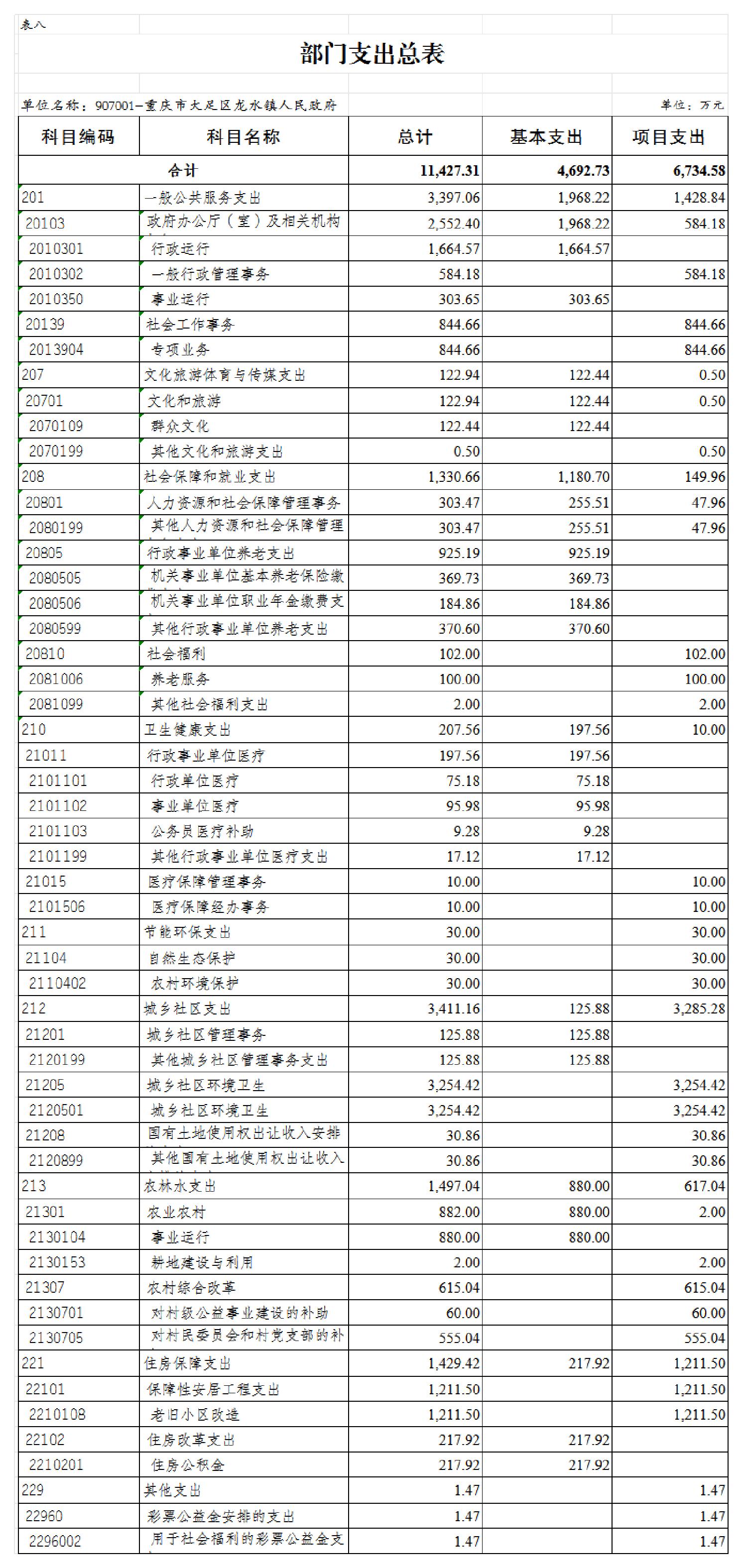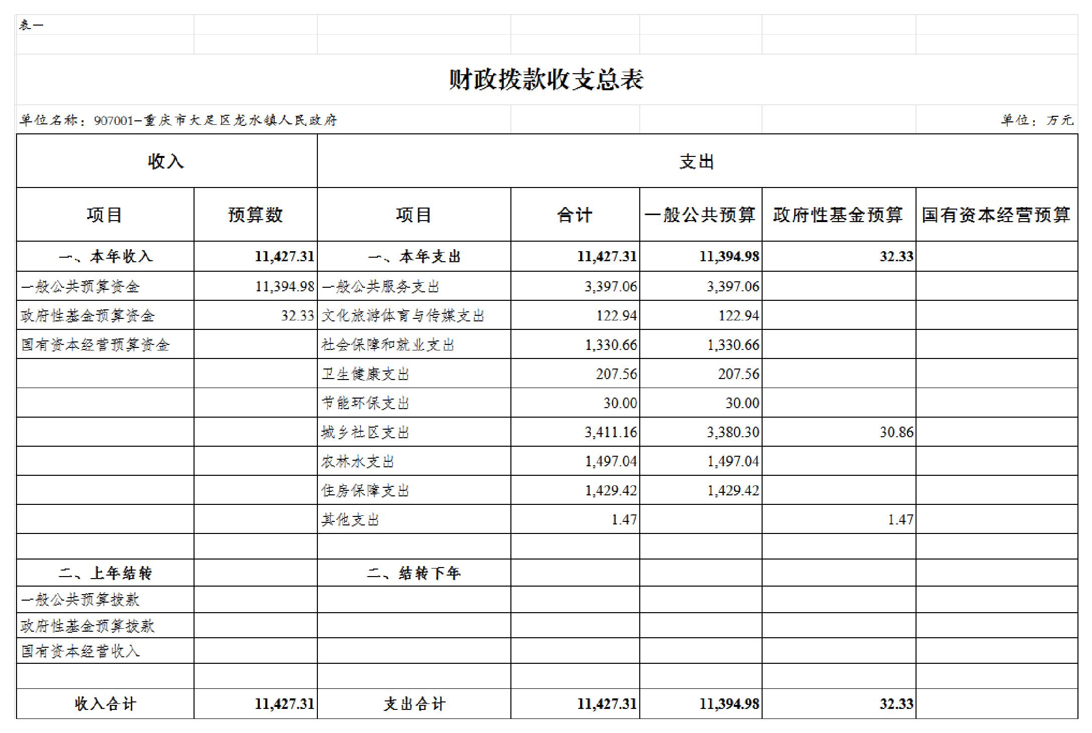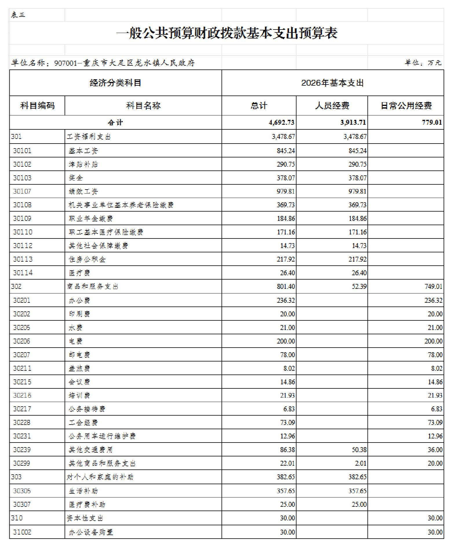 重庆市大足区龙水镇人民政府 2026年部门预算情况说明及预算公开表
