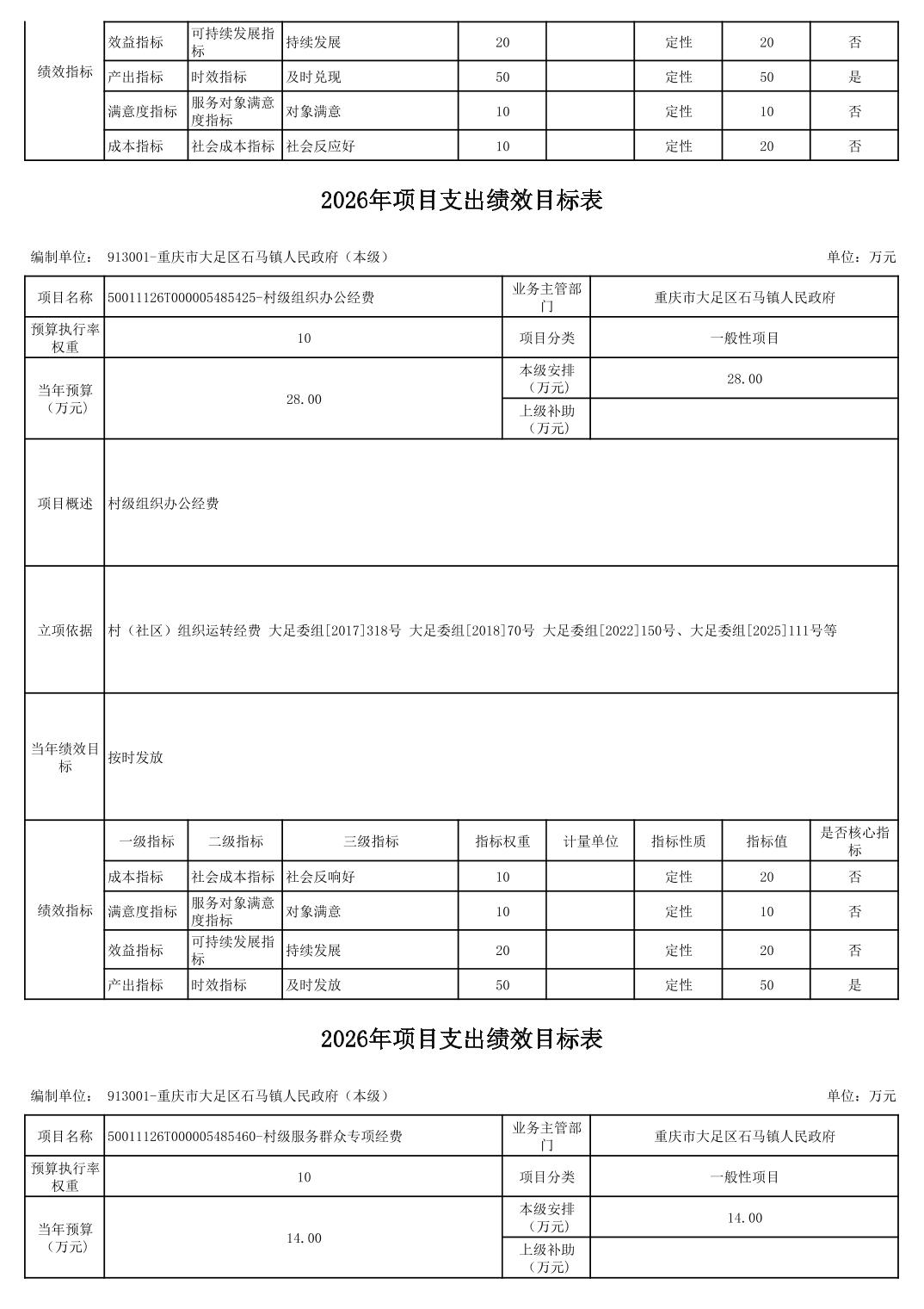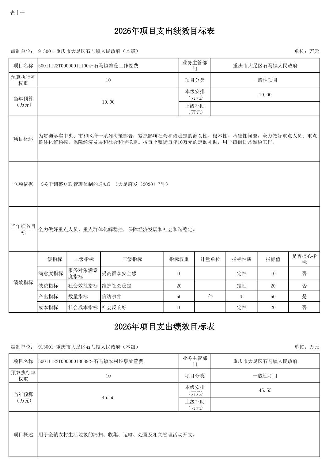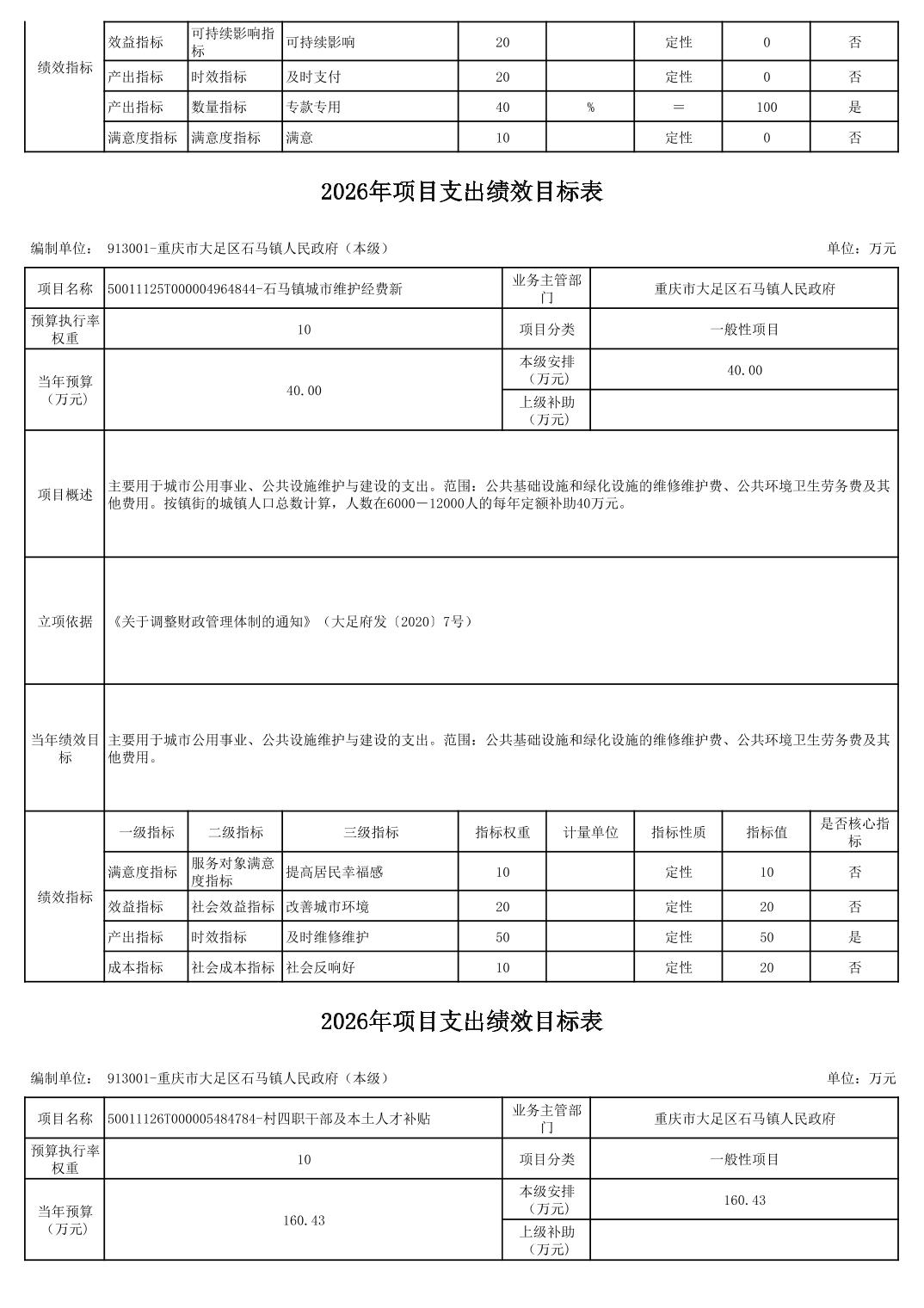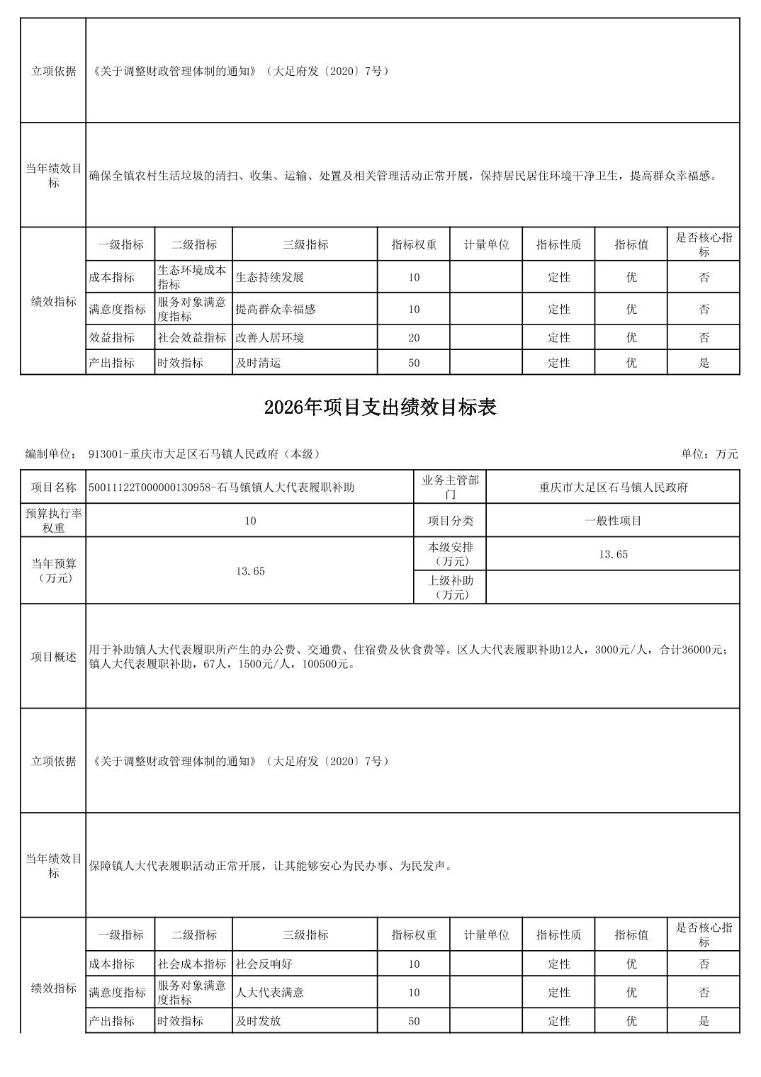 重庆市大足区石马镇人民政府2026年部门预算情况说明