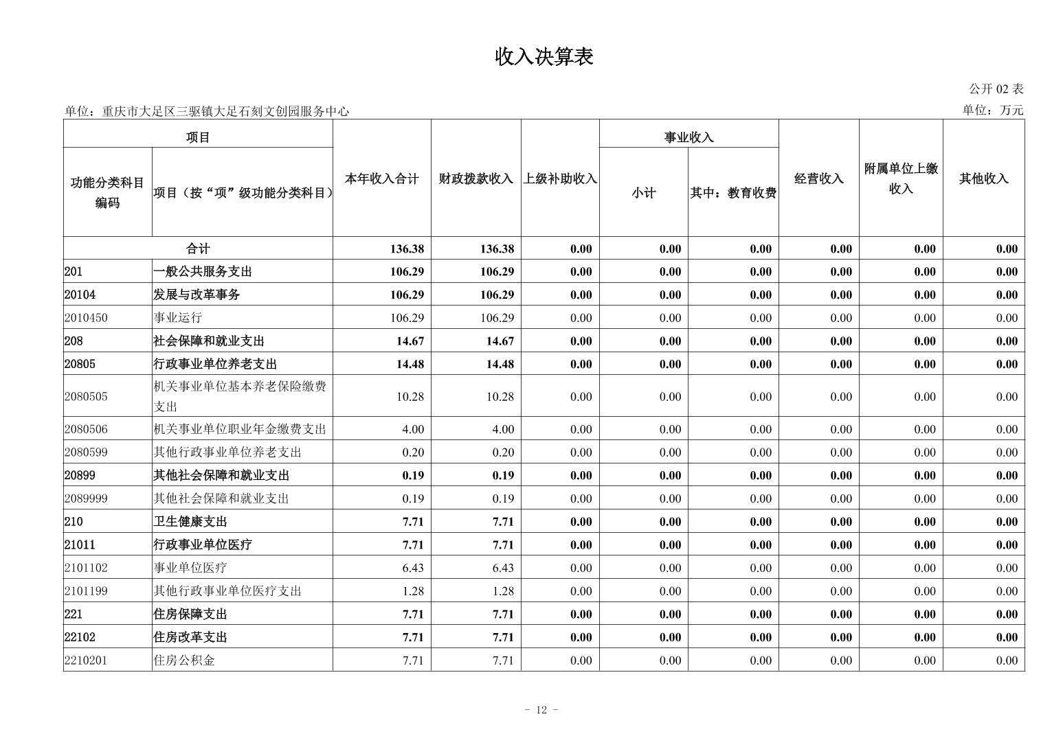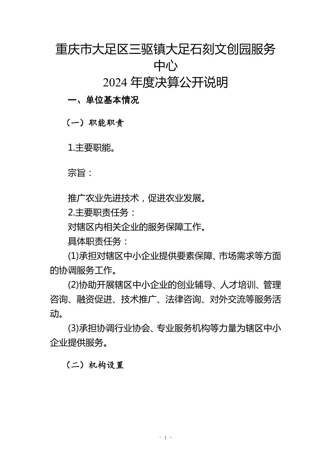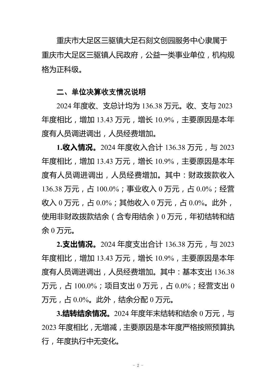 重庆市大足区三驱镇大足石刻文创园服务中心2024年度决算公开说明