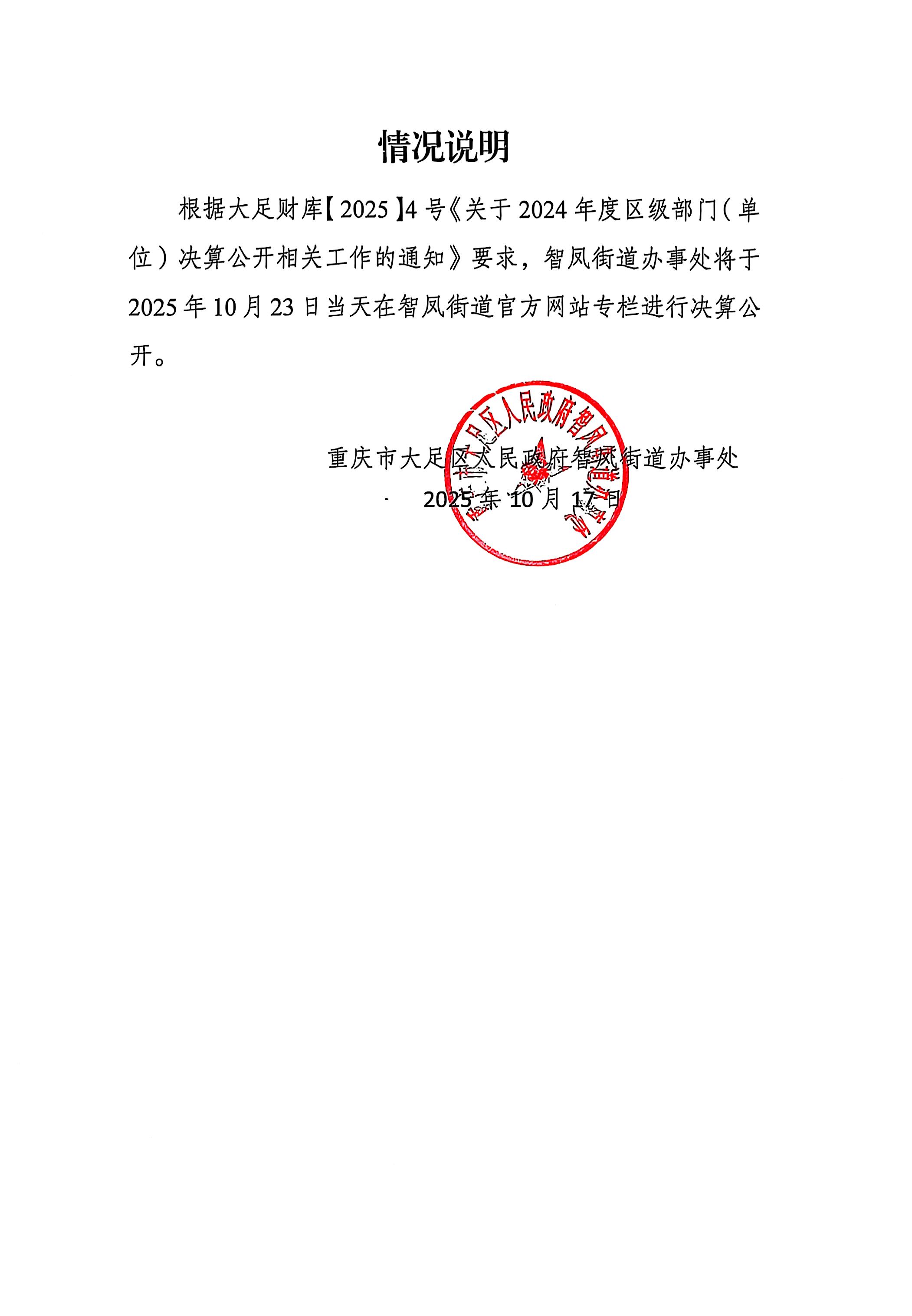 根据大足财库【2025】4号《关于2024年度区级部门(单位)决算公开相关工作的通知》要求,智凤街道办事处将于2025年10月23日当天在智凤街道官方网站专栏进行决算公开。