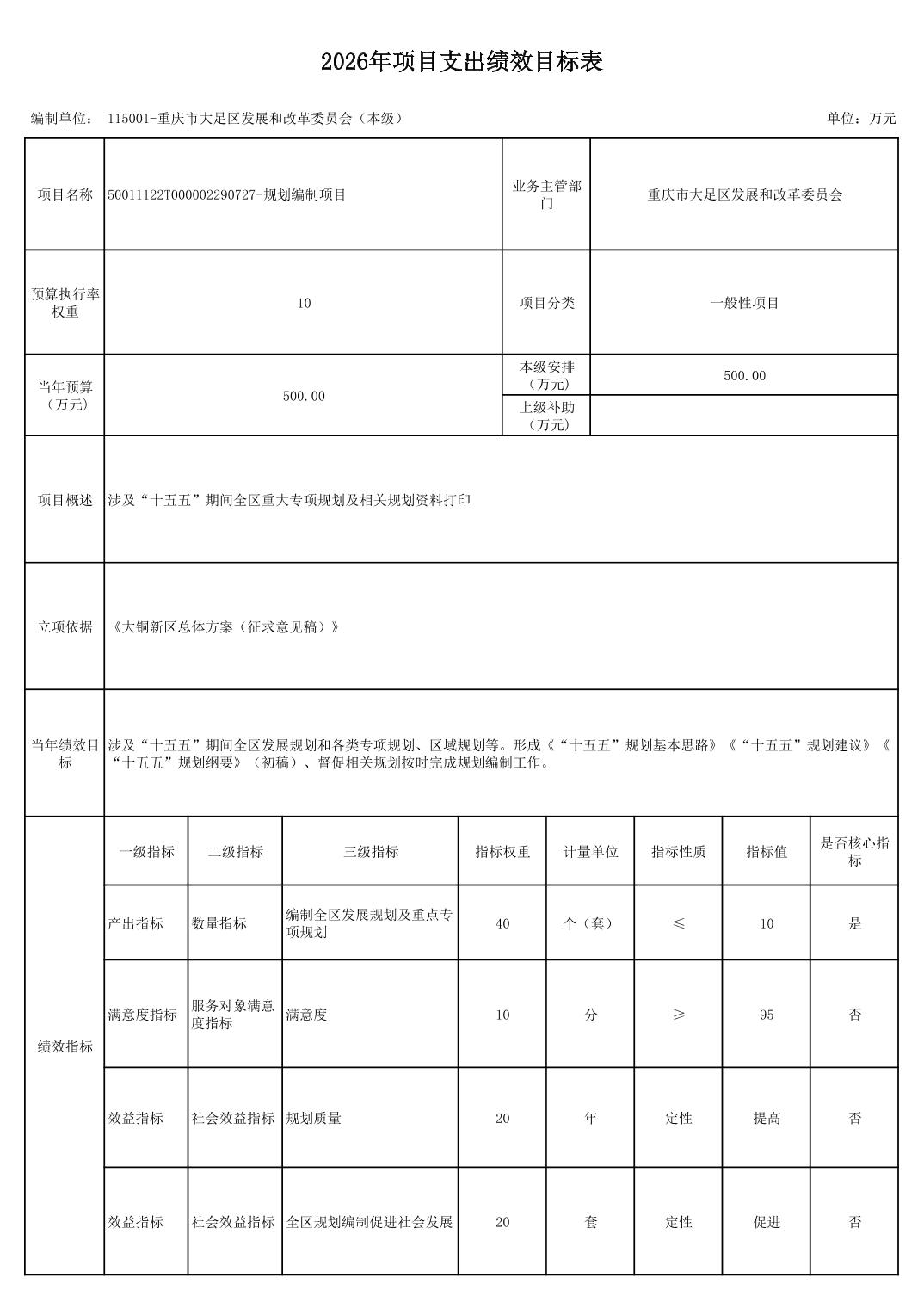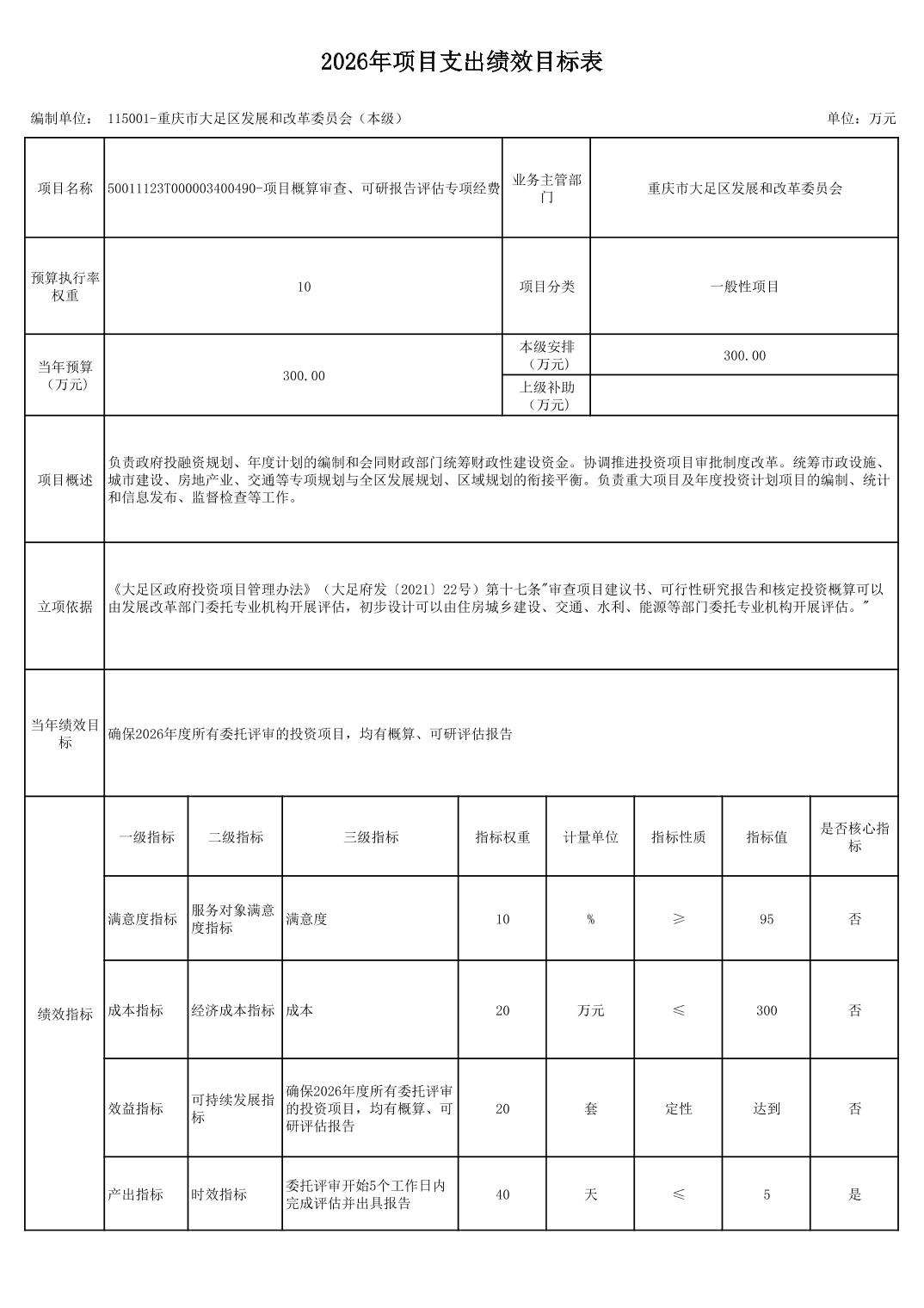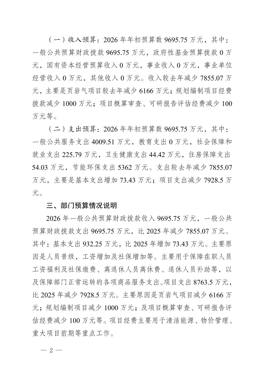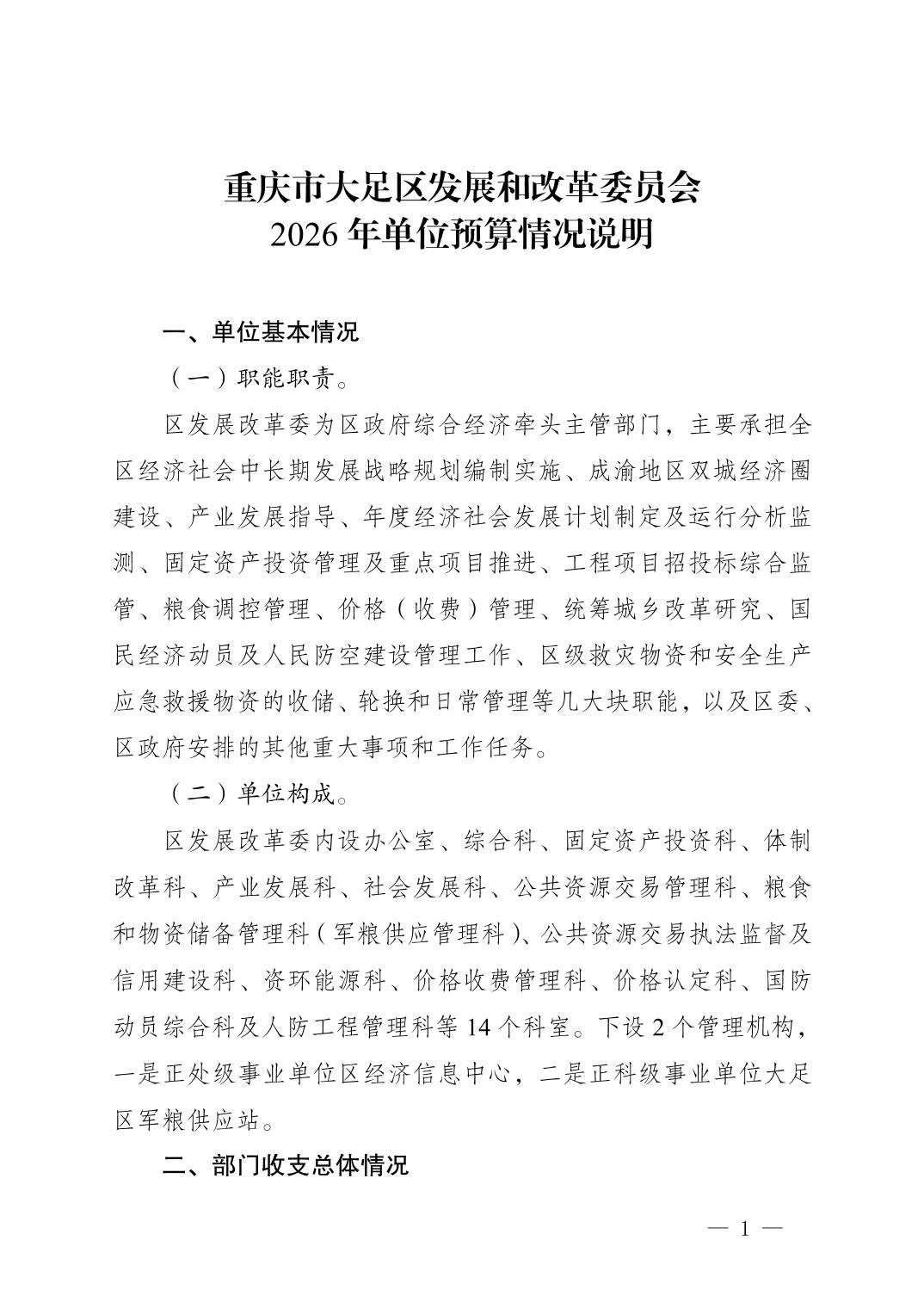 重庆市大足区发展和改革委员会2026年单位预算情况说明
