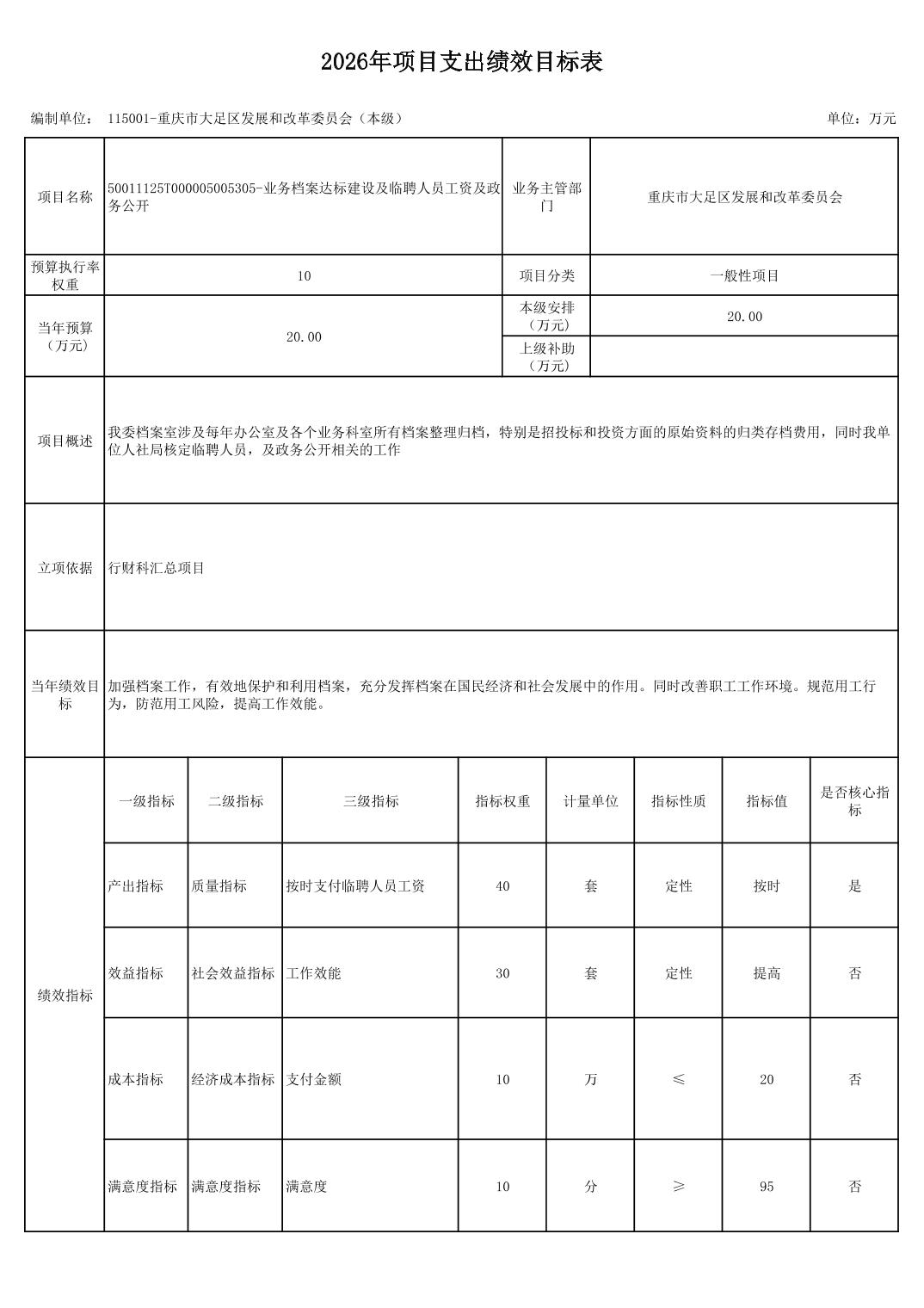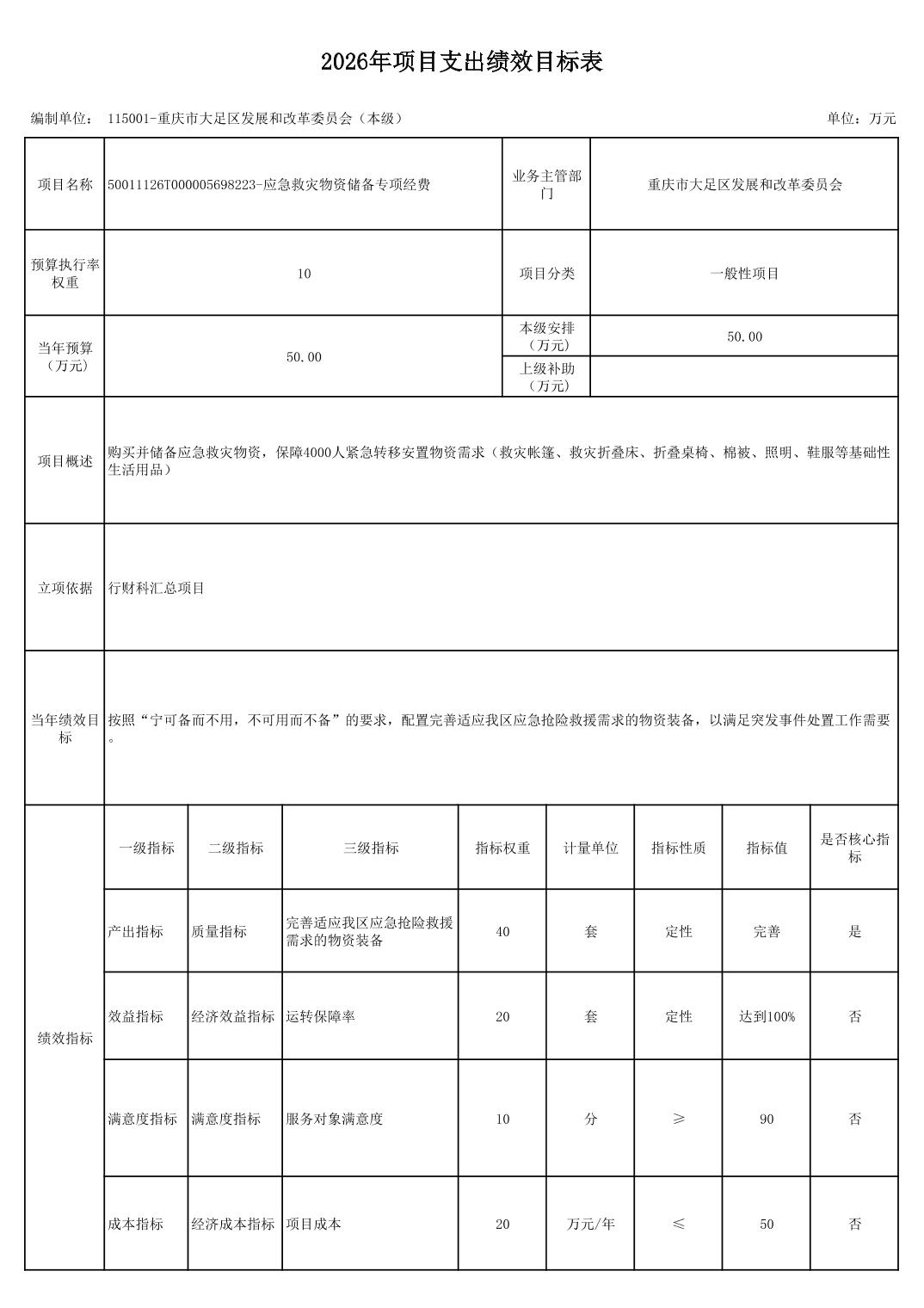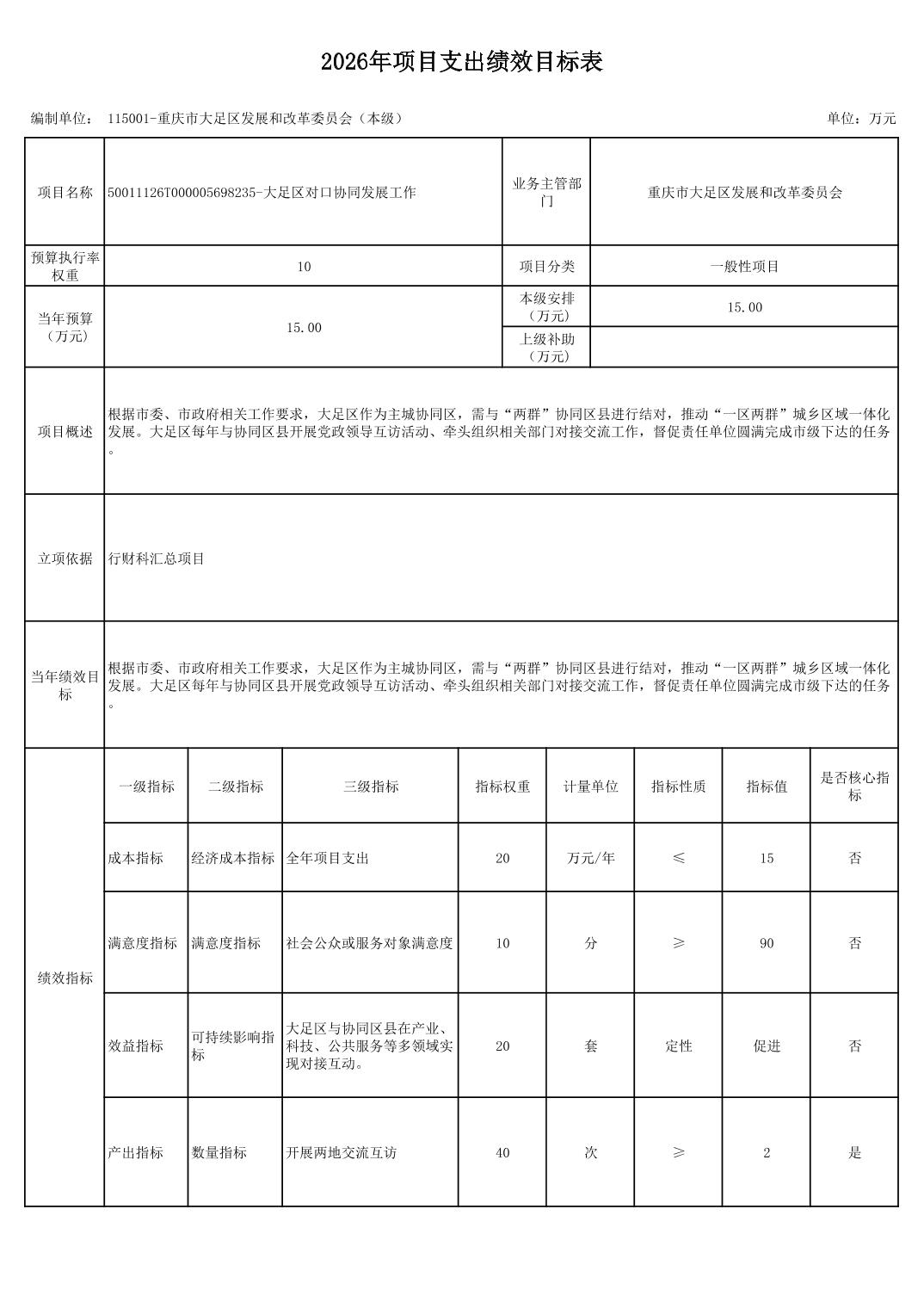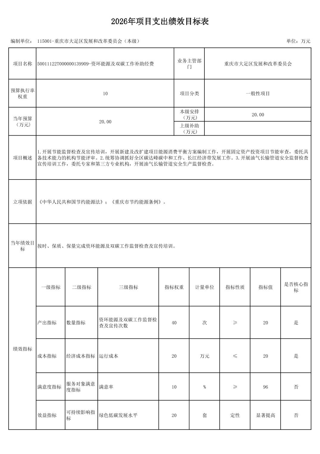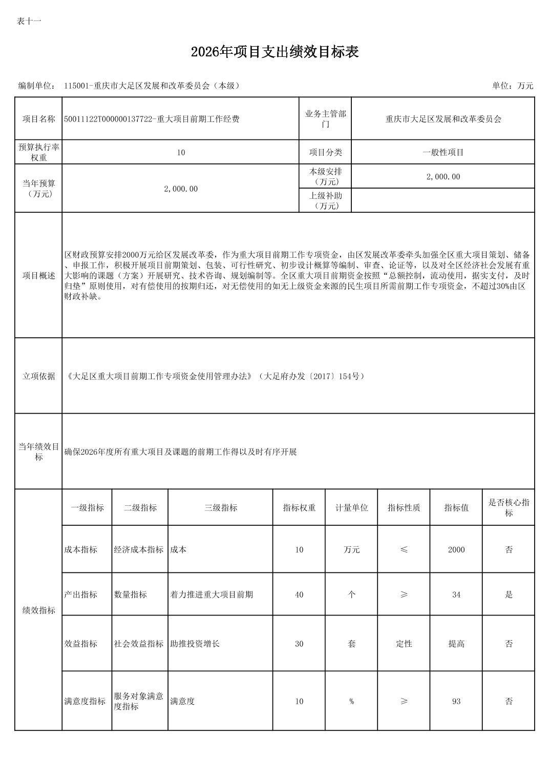 重庆市大足区发展和改革委员会2026年单位预算情况说明