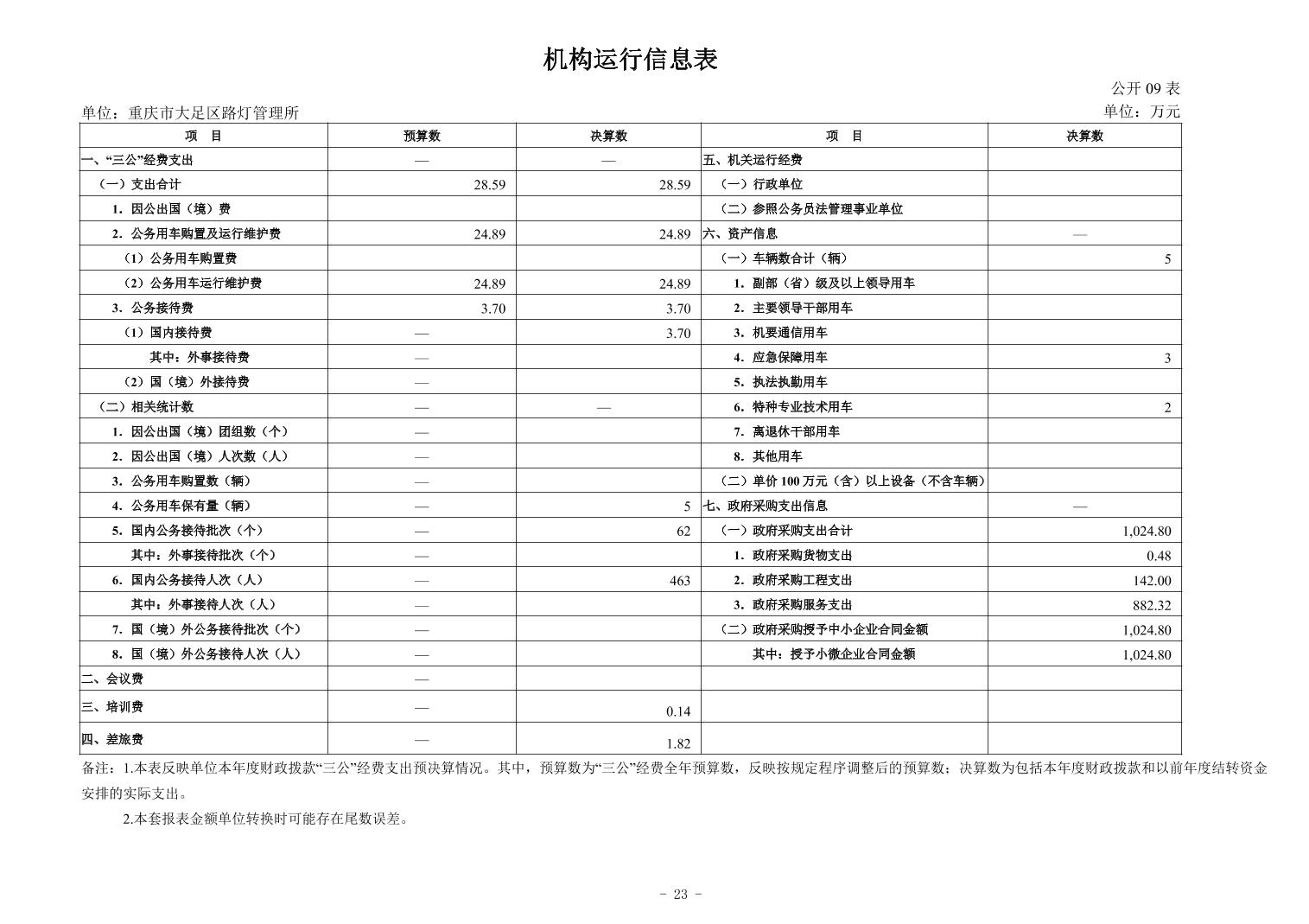 重庆市大足区路灯管理所2024年度决算公开说明