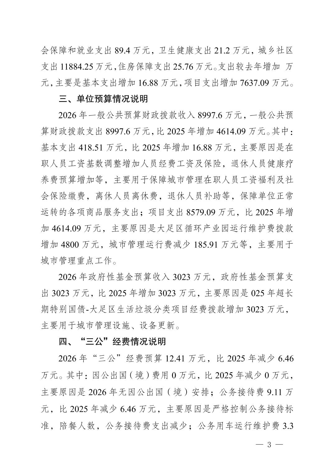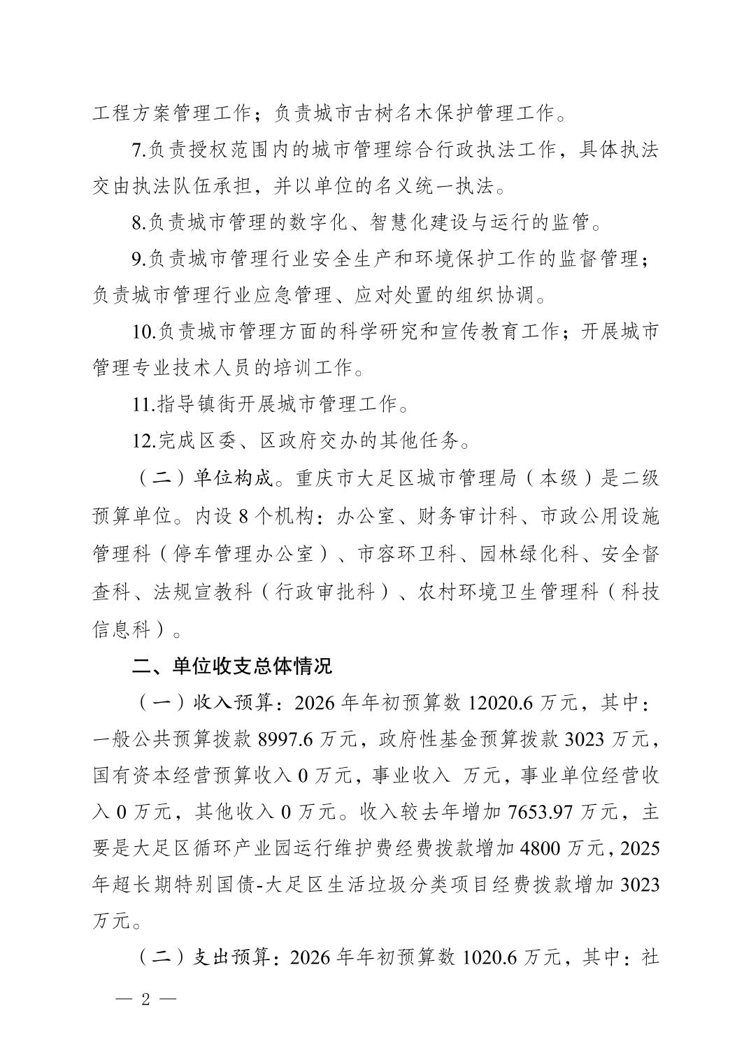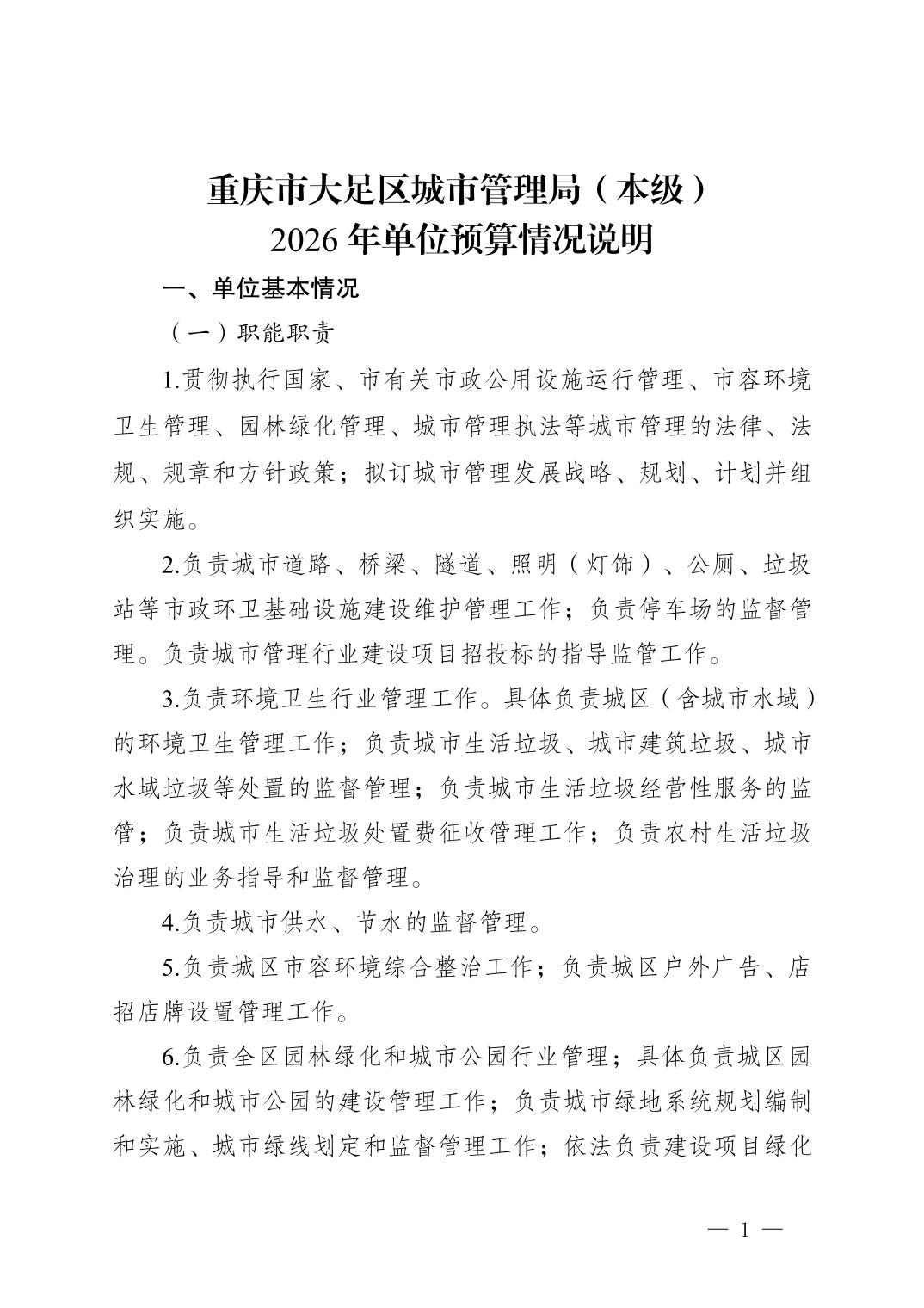 重庆市大足区城市管理局(本级) 2026 年单位预算情况说明