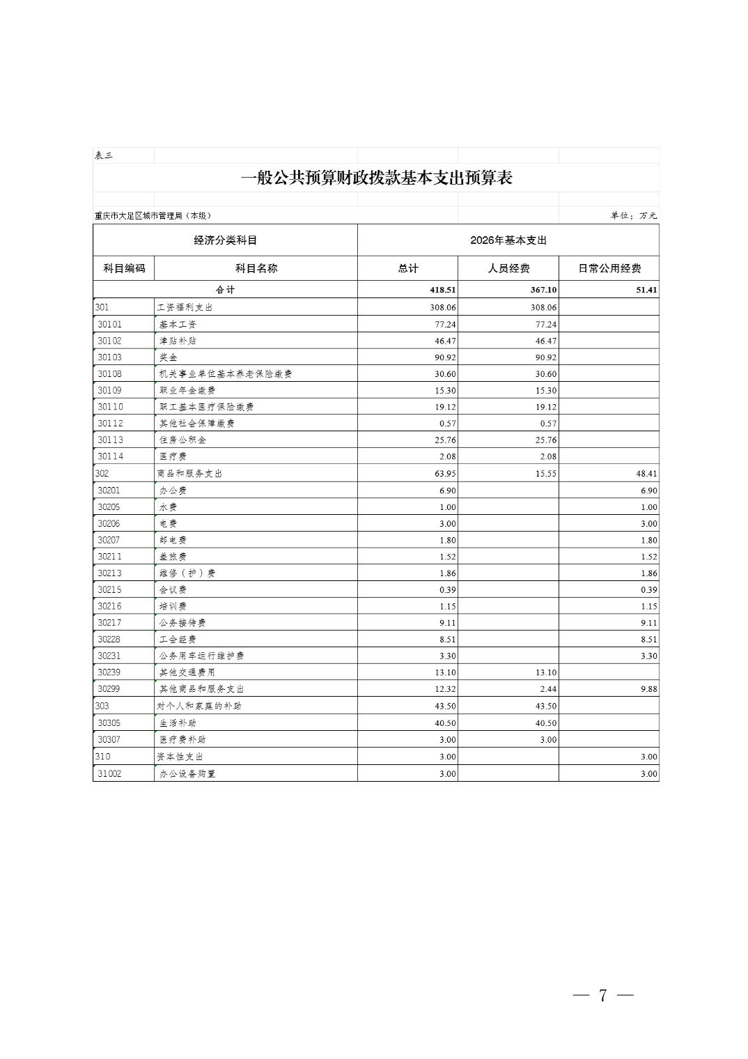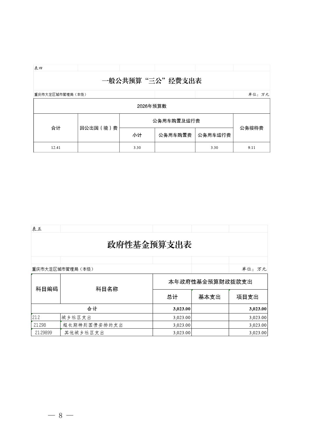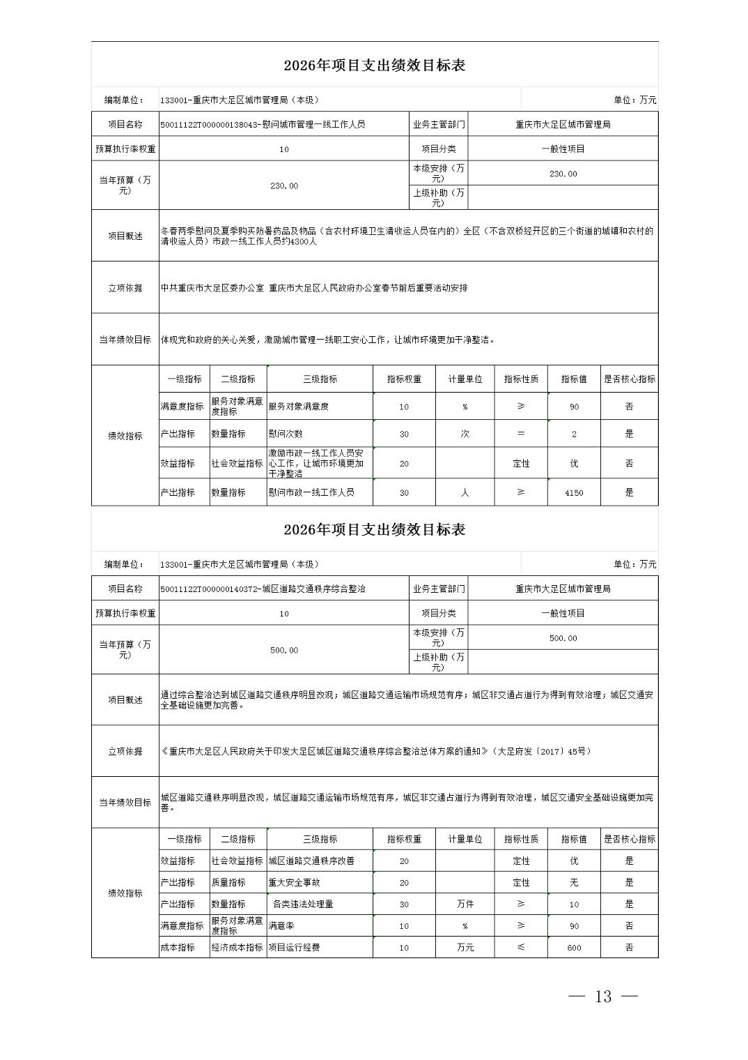 重庆市大足区城市管理局(本级) 2026 年单位预算情况说明