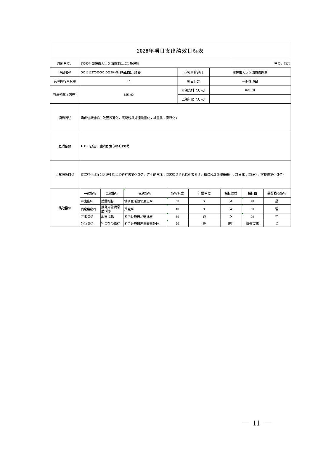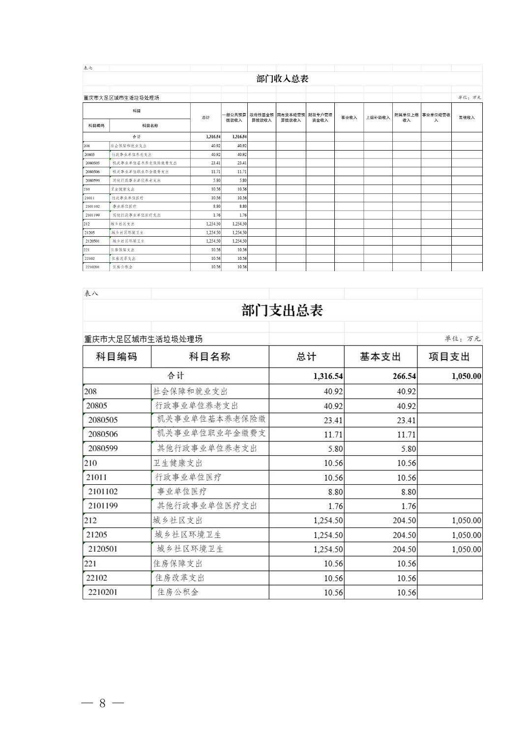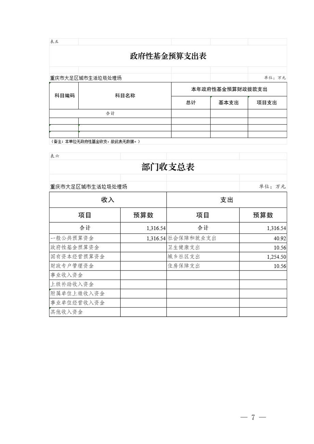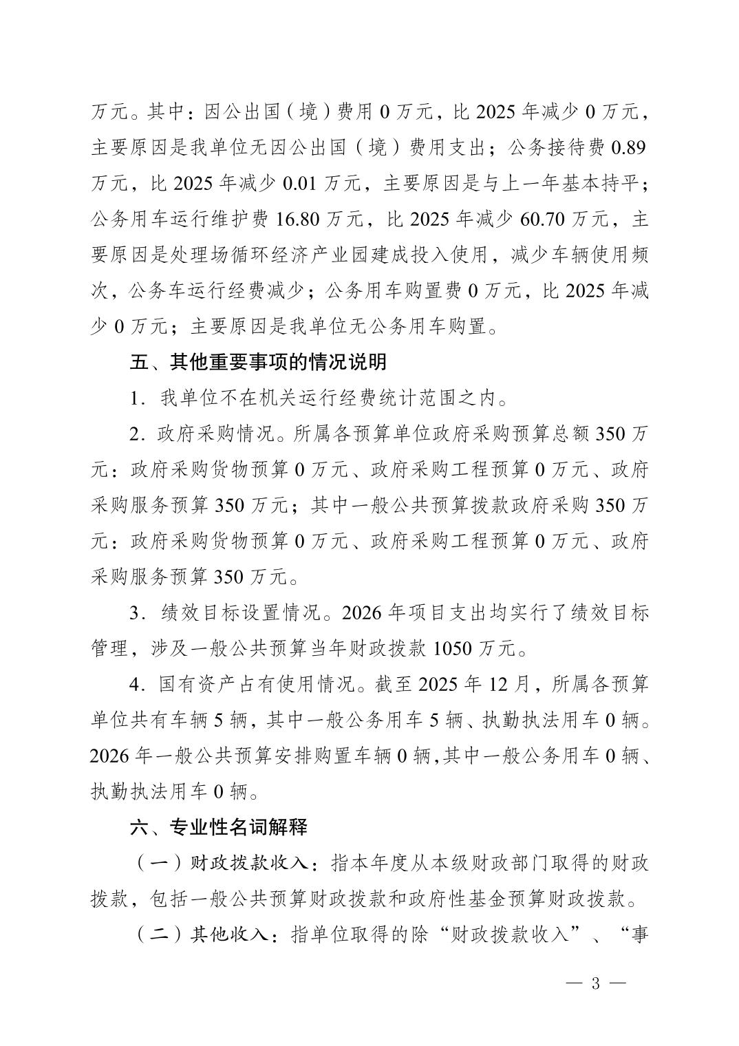重庆市大足区城市生活垃圾处理场 2026 年单位预算情况说明